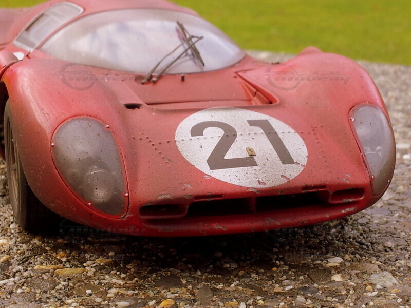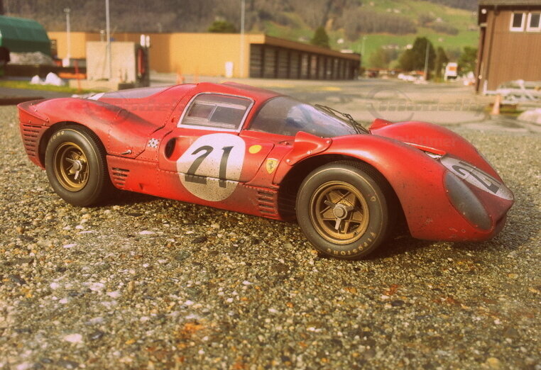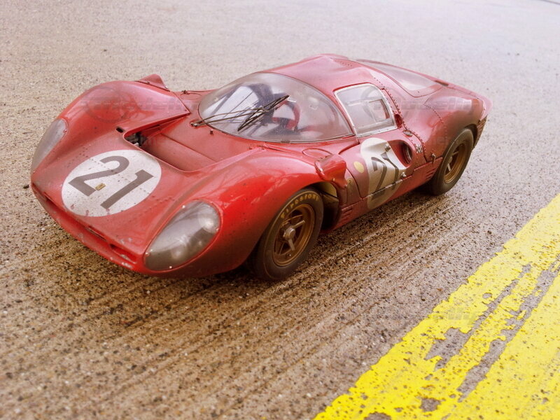 Dieses Modell des Ferrari 330 P4 ist eine detailgetreue Nachbildung im 1:18 Maßstab, hergestellt von GMP, und findet sich in der Sammlung von Modelly-Mitglied "Oldtimer". Gefertigt aus hochwertigem Diecast-Material sorgt das Modell für ein authentisches Erscheinungsbild und exzellente Haltbarkeit. Das Modell besticht durch eine Vielzahl von detailgenauen Nachbildungen, darunter präzise gestaltete Scheinwerfer, Türgriffe und Felgen. Auf dem Modell sind auch die Sponsorenlogos wie Dunlop und Magneti Marelli sorgfältig angebracht, was den authentischen Rennwagen-Look noch verstärkt.