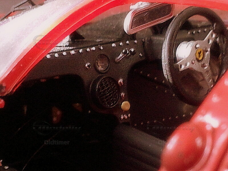Die Schönheit und Genauigkeit der Nachbildung des Ferrari 330 P4 im 1:18 Maßstab ist beeindruckend. Die feine Lackierung in Ferrari-Rot und die sorgfältige Ausarbeitung der Karosseriedetails spiegeln das Design und die Eleganz des Originals wider. Von den robusten Reifen bis hin zu den filigranen Details des Innenraums zeigt das Modell eine außergewöhnliche Liebe zum Detail. Der detailreiche Motorraum und die authentisch nachgebildeten Bremsen sind nur einige der Highlights dieses Modells. Es handelt sich hier um ein wahres Sammlerstück, das in keiner ernsthaften Modellautosammlung fehlen sollte. Der 1:18 Maßstab von GMP ermöglicht eine hohe Detailgenauigkeit, die für Sammler besonders interessant ist.