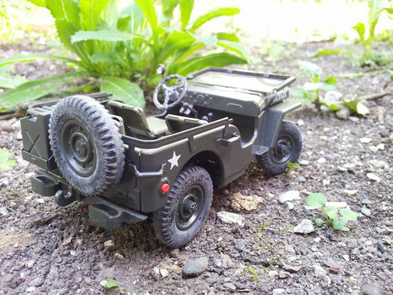 Das gesamte Modell (mit Ausnahme der Reifen...) besteht aus Blech. Trotzdem ist die Miniatur äusserst detailreich ausgeführt. Die Motorhaube kann geöffnet werden, der Beifahrersitz nach vorne geklappt und der Reservekanister am Heck kann abgenommen werden.