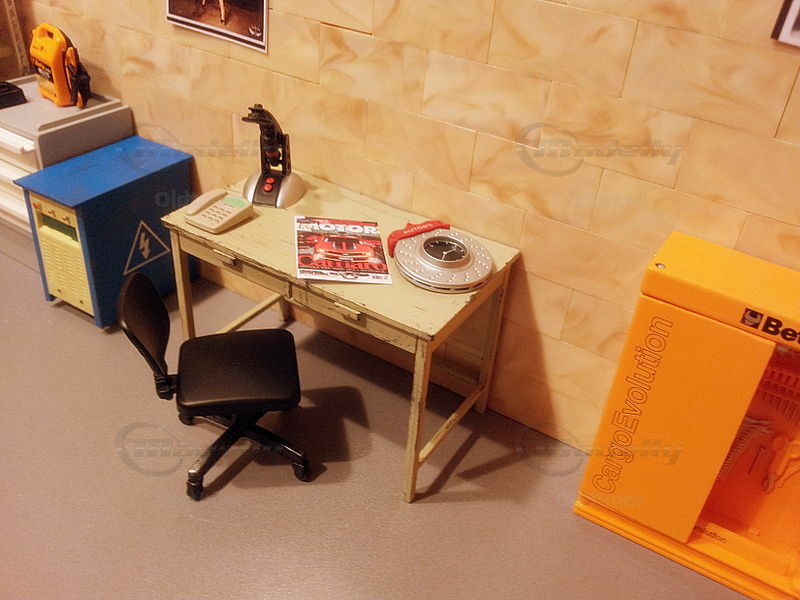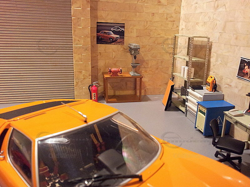 Das Zubehör der Werkstatt ist von AUTOart und Beta-Kit.