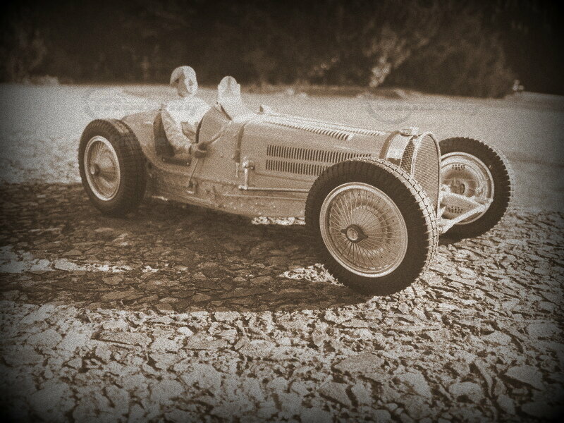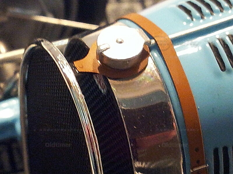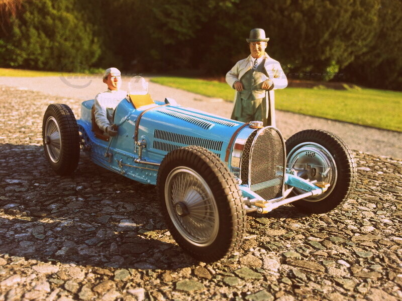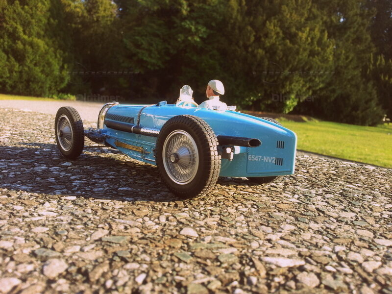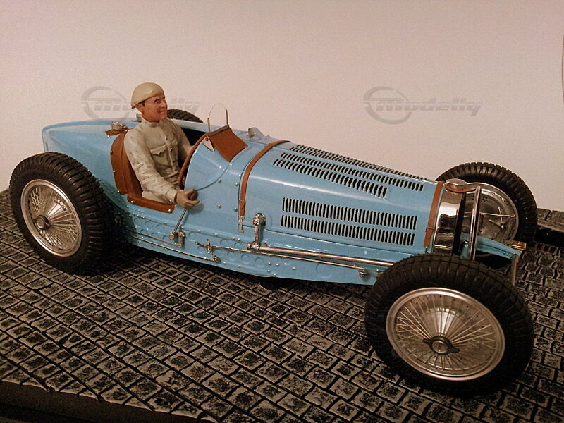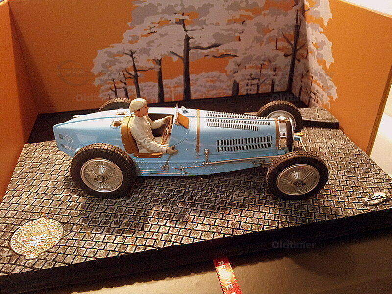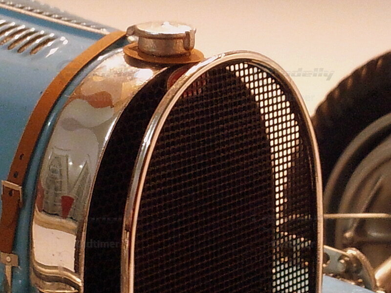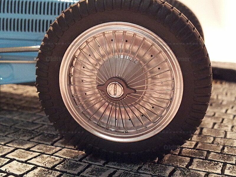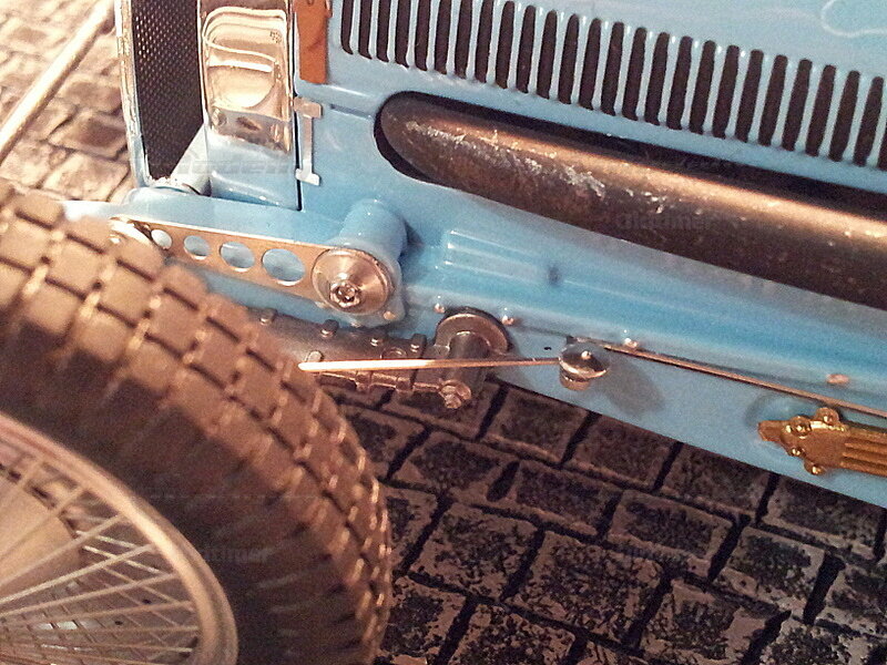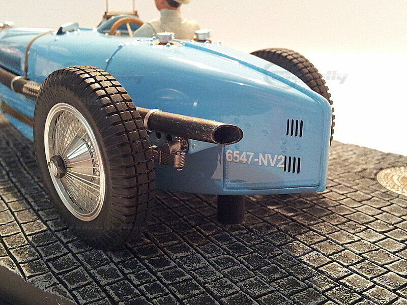 Das Modell selber ist in einer typisch Bugatti-Blauen Lackierung gehalten, Leicht glänzend und z.B. am Auspuff etwas verwittert, so wie damals die Autos eben untewegs waren.