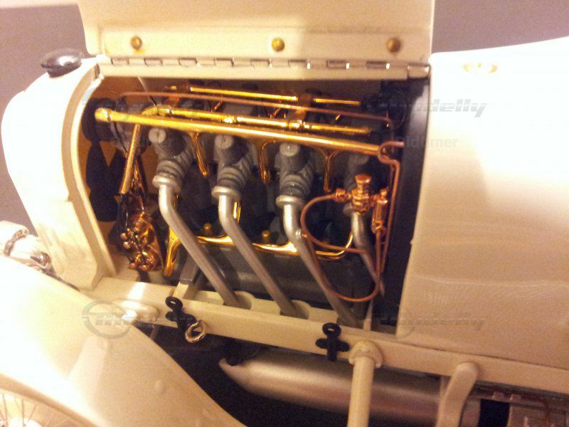 Zum Vorbild: Der 4 Zylindermotor mit 5698ccm Hubraum leistete ca. 95PS und trieb über zwei Ketten (später dann Kardanwelle) die Hinterräder an.