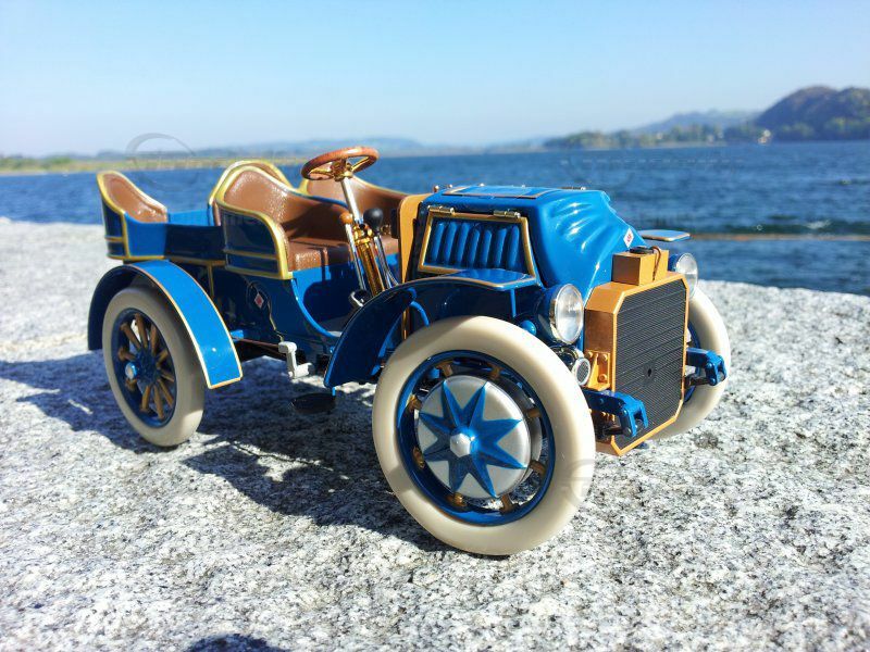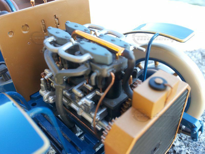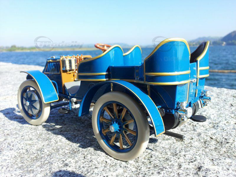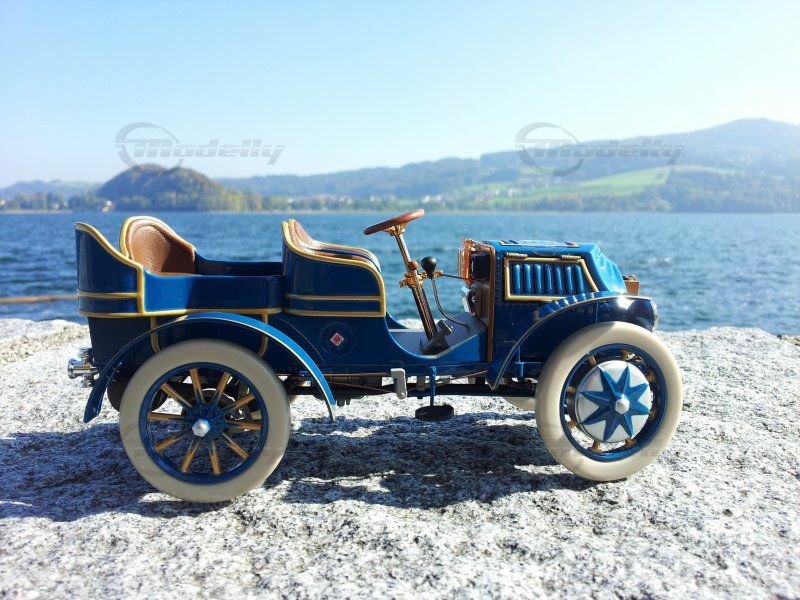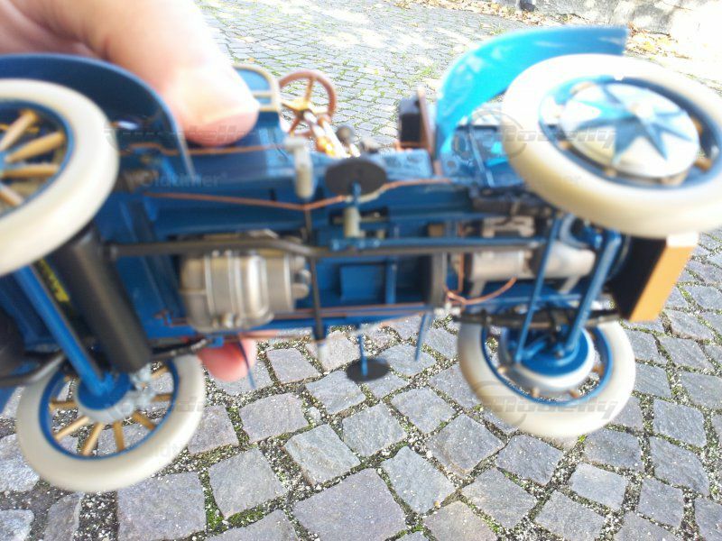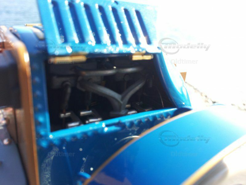 Wunderschön gearbeitetes Modell mit vielen exakt nachgebildeten Details. Die Einstiegstüre im Heck lässt sich öffnen, die Motorhaube kann ebenfalls an drei Punkten geöffnet oder sogar ganz abgenommen werden. Der Motor ist äusserst genau nachgebildet und der Unterboden filigran gestaltet.