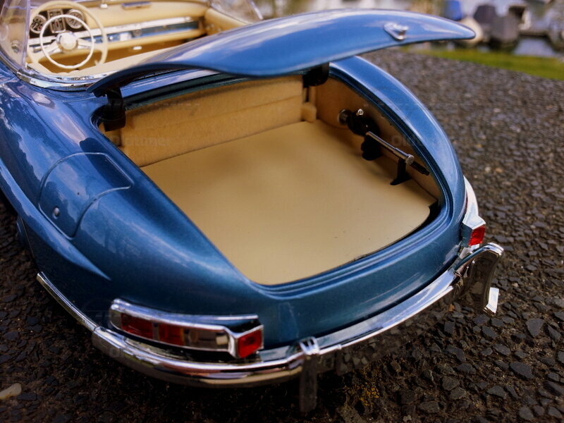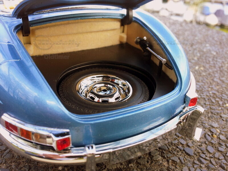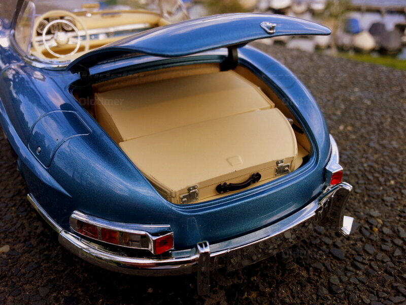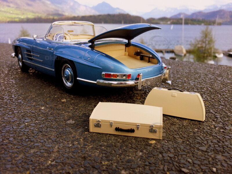 Sehr schön gearbeitetes Modell mit vielen Details. Im Kofferraum findet sich sogar ein Set aus zwei massgeschneiderten und herausnehmbaren Koffern