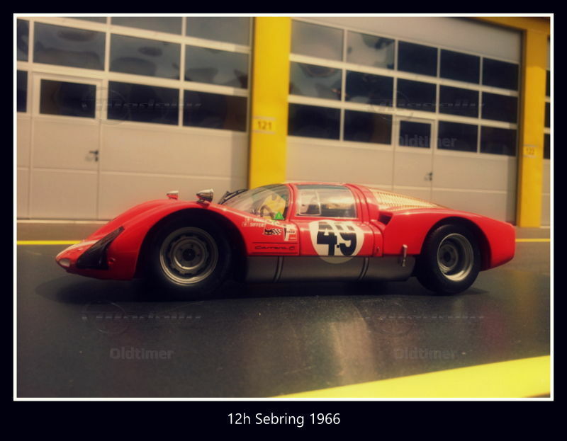 Das hier vorgestellte Modell wurde 1966 vom Werksteam Porsche eingesetzt und von den beiden Schweizern Charles Vögele und Joseph (Jo) Siffert gefahren. Im 12 Stunden Rennen von Sebring (USA) erreichten die beiden den 6ten Schlussrang.