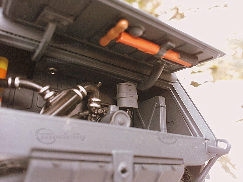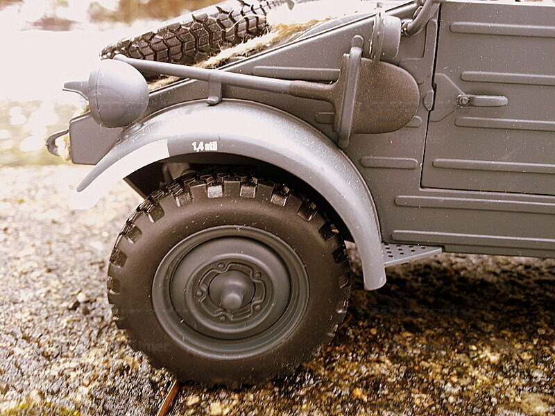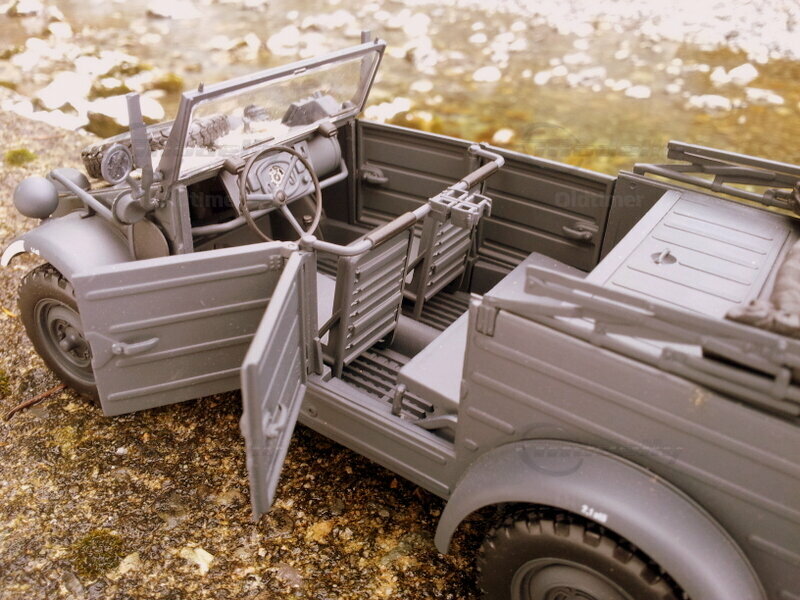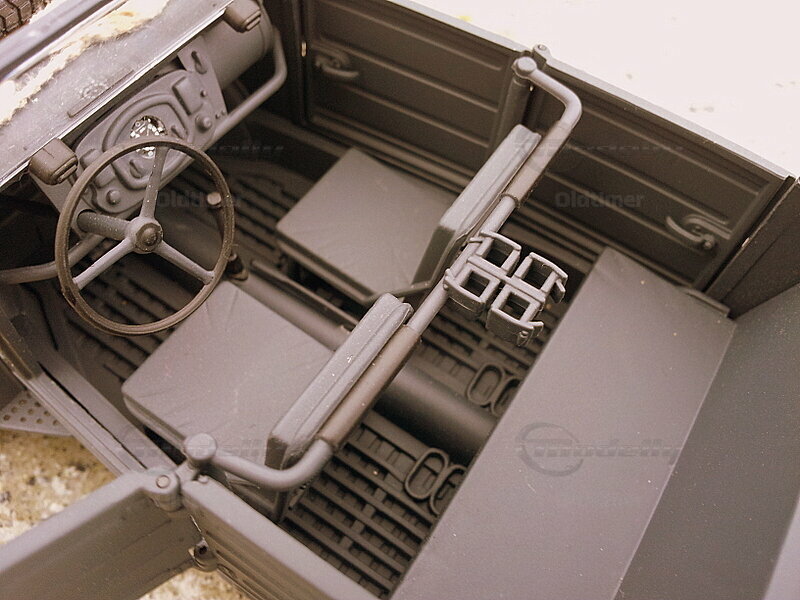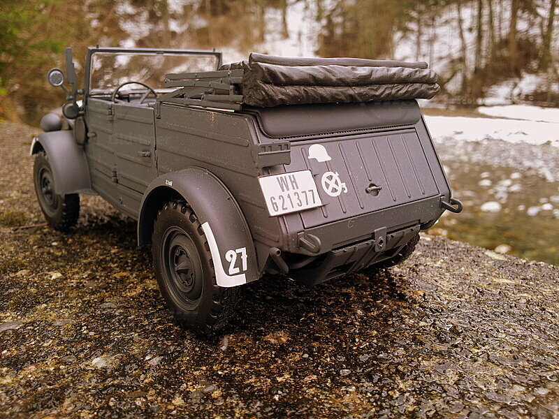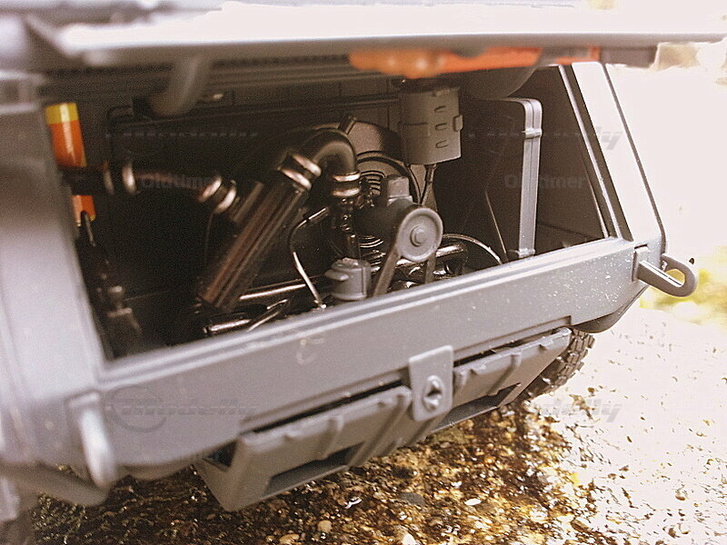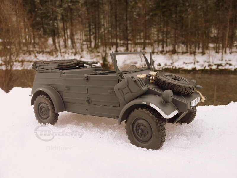 Das sehr gut umgesetzte Modell von Minichamps zeigt eine Version wie sie z.B. an der sog. Ostfront eingesetzt wurde. Grauer Anstrich und entsprechende Signaturen am Fahrzeug. Die wenigen Details sind sehr gut umgesetzt und auch Kleinigkeiten wie z.B. eine Luftpumpe an der Innenseite der Motorheckklappe wurden nicht vergessen.