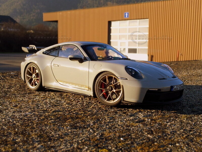 Das in 1:18 maßstabsgetreu hergestellte Modell des Porsche 911 GT3 Touring Package, gefertigt von Norev, ist eine beeindruckende Miniatur, die selbst kleinste Details des Originals einfängt. Das Modell besteht aus hochwertigem Kunststoff und zeigt eine akribische Nachbildung der Karosseriestruktur, inklusive der spezifischen Formen und Linien. Die Farbe des Modells ist akkurat nachgebildet, mit einem glänzenden Finish, das die realistische Erscheinung des Autos noch verstärkt. Die Felgen, Reifen und Bremsen sind detailgetreu gestaltet und spiegeln die echten Elemente des Porsche 911 GT3 Touring wider. Dieses Modell ist Teil der Sammlung von Modelly-Mitglied "Oldtimer" und bietet Sammlern weltweit eine Möglichkeit, ein Stück dieser automobilen Ikone in verkleinertem Maßstab zu besitzen.