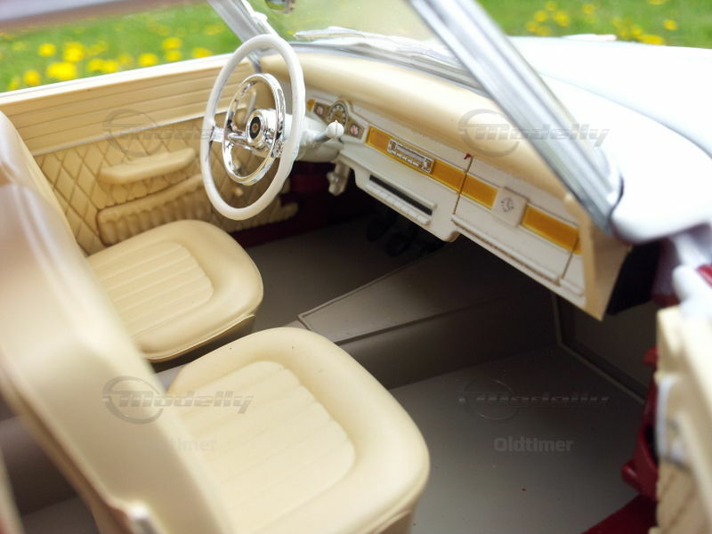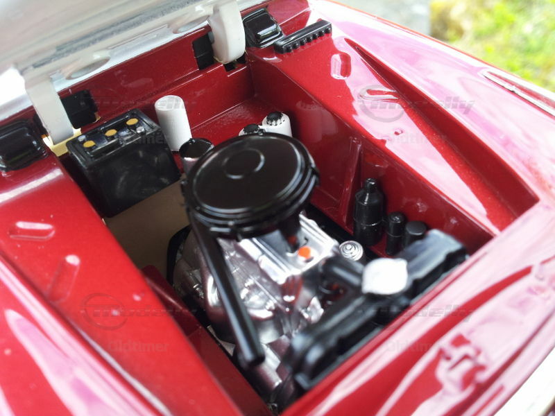 Einfach gehalten aber wunderbar gefertigt von Revell. Mit Ausnahme des Kofferraumes lassen sich sämtliche Türen öffnen. Der Motorraum ist relativ einfach gehalten, aber der Innenraum ist wirklich gut gemacht. Die Zweifarbenlackierung ist exzellent und der Gesamteindruck ist sehr gut.