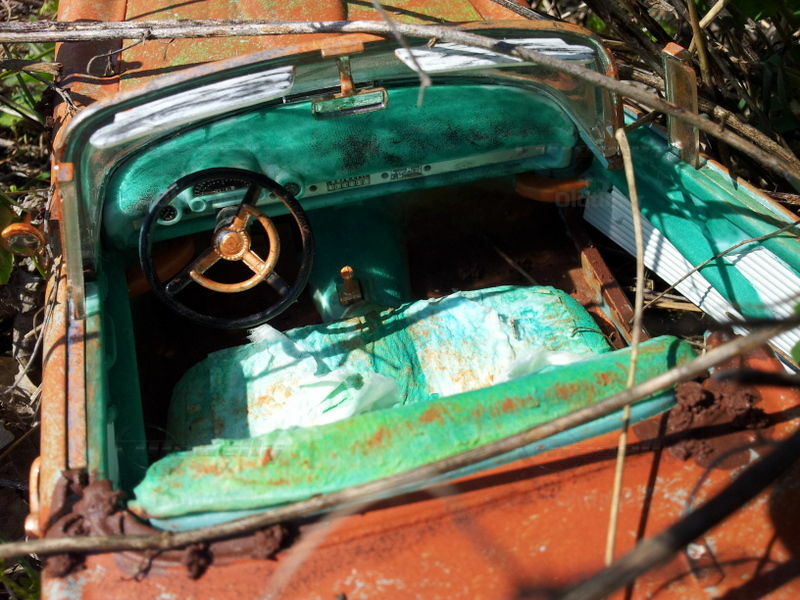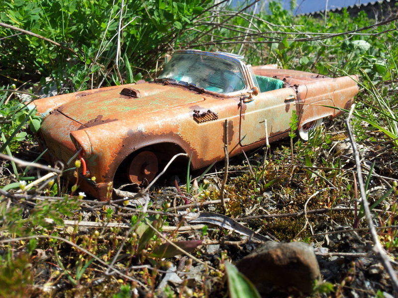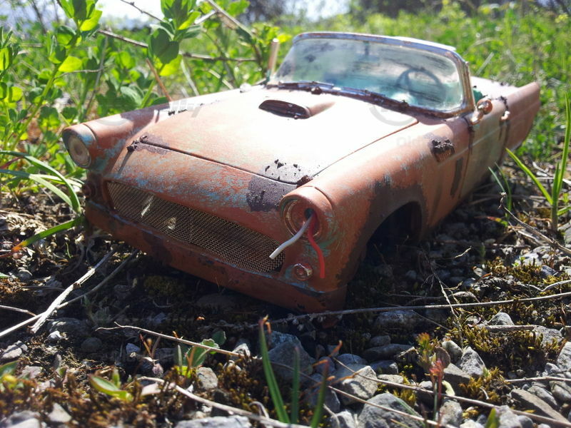Das auf den Fotos sichtbare Modell zeigt deutliche Zeichen einer Rostpatina, was darauf hinweist, dass es absichtlich so gestaltet wurde, um den Eindruck eines gealterten oder vernachlässigten Fahrzeugs zu erwecken. Die markante orange-braune Färbung und die realistisch wirkenden Roststellen verleihen der Miniatur einen besonderen Charme. Der detaillierte Frontgrill, die authentischen Scheinwerfer und das markante Emblem sind sorgfältig nachgeahmt. Diese Miniatur aus Druckguss zeigt das hohe Maß an Detailgenauigkeit, das oft in handgefertigten Modellen zu finden ist.
