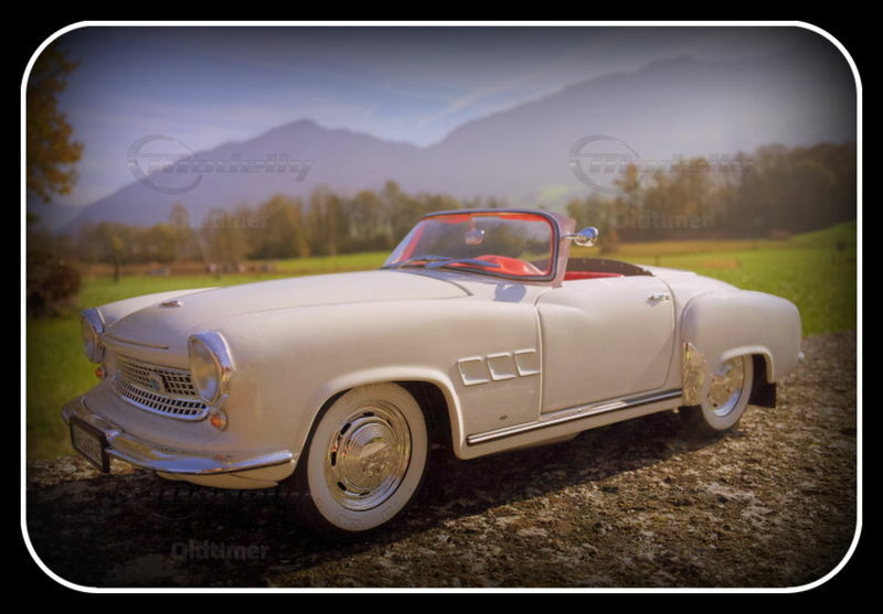 Das Automobilwerk Eisenach AWE entwickelte die sportliche Version aus dem erfolgreichen Modell Wartburg 311. Dazu wurden umfangreiche Aenderungen vorgenommen, sodass die im Grunde gleichen Abmessungen des 4 Plätzers dieses Cabriolet wesentlich schnittiger erscheinen liessen.