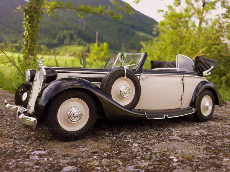 Während der Normalbürger sein Geld für einen "KdF-Wagen" (später "Volkswagen" genannt) sparte um den Preis von 990 Reichsmark zu bezahlen, leisteten sich einige wenige Grossverdiener dieses Fahrzeug für den 10fachen Preis (ca. 10'000.- Mark).