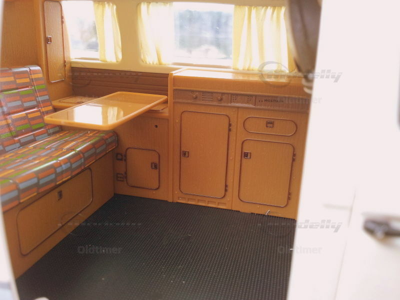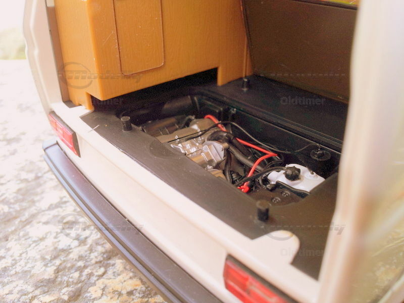 Ausgezeichnet umgesetztes Modell der Firma Schuco. Die Spaltmasse sind minimal und die Lackierung makellos. Das Modell verfügt über zu öffnende Türen, auch die Schiebetüre kann geöffnet werden. Die Innenausstattung ist extrem gut nachgebildet. Echte Stoffvorhänge und auch das Klappverdeck besteht aus feinem Stoff.