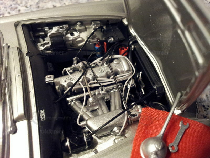 Hervorragend gearbeitetes Modell von Schuco. Kleinste Details sind sauber umgesetzt. Die nachgebildete Lederstruktur der Sitze mit ihren Belüftungslöchern ist einmalig. Das Handschuhfach kann geöffnet werden und sogar ein Schlüssel befindet sich im Zündschloss. Die Motorverkabelung ist exakt wiedergegeben und die Lackierung makellos.