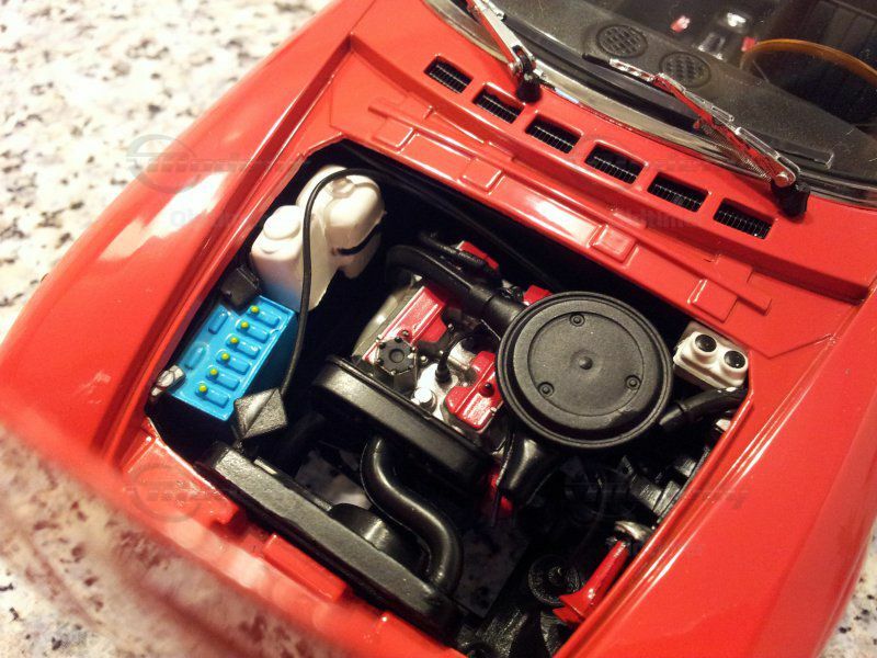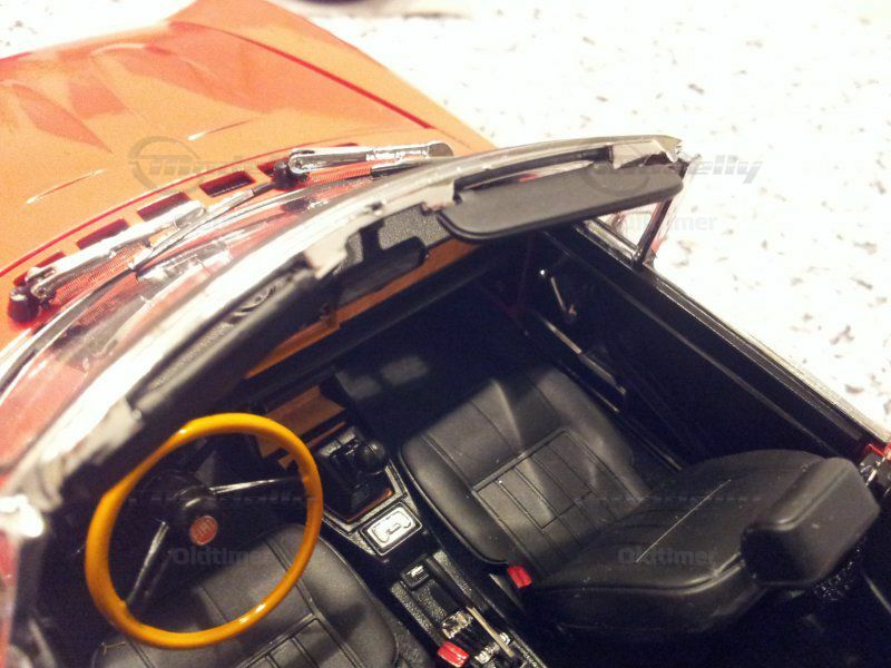 Das Modell ist sehr detailliert verarbeitet. Ein Verdeck mit echtem Kunstleder liegt bei. Die Scheibenwischer sind beweglich, ebenso die Sonnenblenden. Die Vordersitze sind natürlich klappbar und lassen sich sogar nach vorne, resp. hinten schieben.
