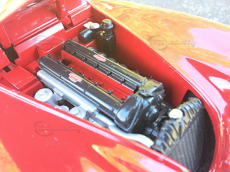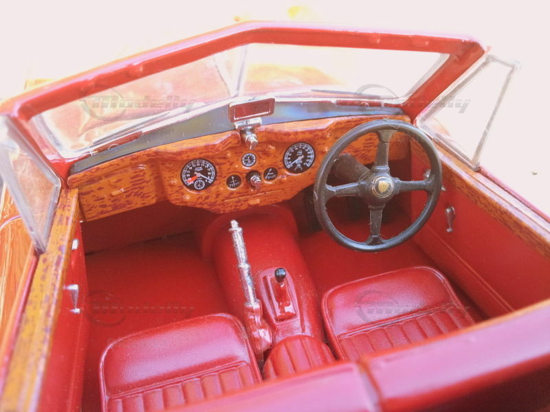 Einfach, aber sehr schön gestaltetes Modell der Firma SunStar. Der Motor kann zwar nicht mit (teureren) Modellen von z.B. AUTOart oder Minichamps mithalten, er ist jedoch gut gemacht. Der Innenraum punktet mit sehr schön nachgebildeten Sitzen und einem Armaturenbrett in edler und sehr gut gemachter Holzoptik.