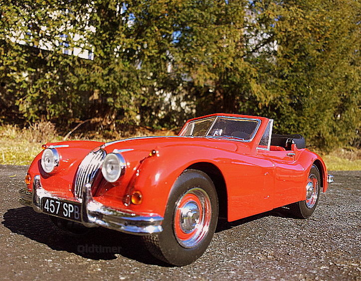Zwischen 1954 und 1957 wurde der elegante Jaguar XK140 gebaut. gegenüber seinem Vorgänger, dem Typ XK120, wurden viele Elemente übernommen, rein äusserlich sehen sich die beiden Typen sehr ähnlich.