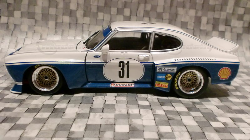 Der Modellauto-Hersteller Minichamps hat mit dem 1:18 Modell des Ford CAPRI RS 3100 ein Sammlerstück geschaffen, das nicht nur für Ford-Enthusiasten, sondern für alle Modellauto-Sammler von Interesse ist. Die Detailliertheit ist bemerkenswert. Feine Details wie die Glaswischer, Scheinwerfer, Felgen und auch das realistische Fahrerhaus machen dieses Modell zu einem außergewöhnlichen Replikat. Die akkurat nachgebildete Lackierung, mitsamt der Logos und Schriftzüge der einzelnen Sponsoren setzen diesem Modellauto im Maßstab 1:18 die Krone auf. Abschließend lässt sich sagen, dass dieses Modellauto, das auf Modelly im Besitz des Mitglieds "one18" ist, eine detailgetreue Nachbildung eines der aufregendsten Rennwagen der Vergangenheit darstellt.