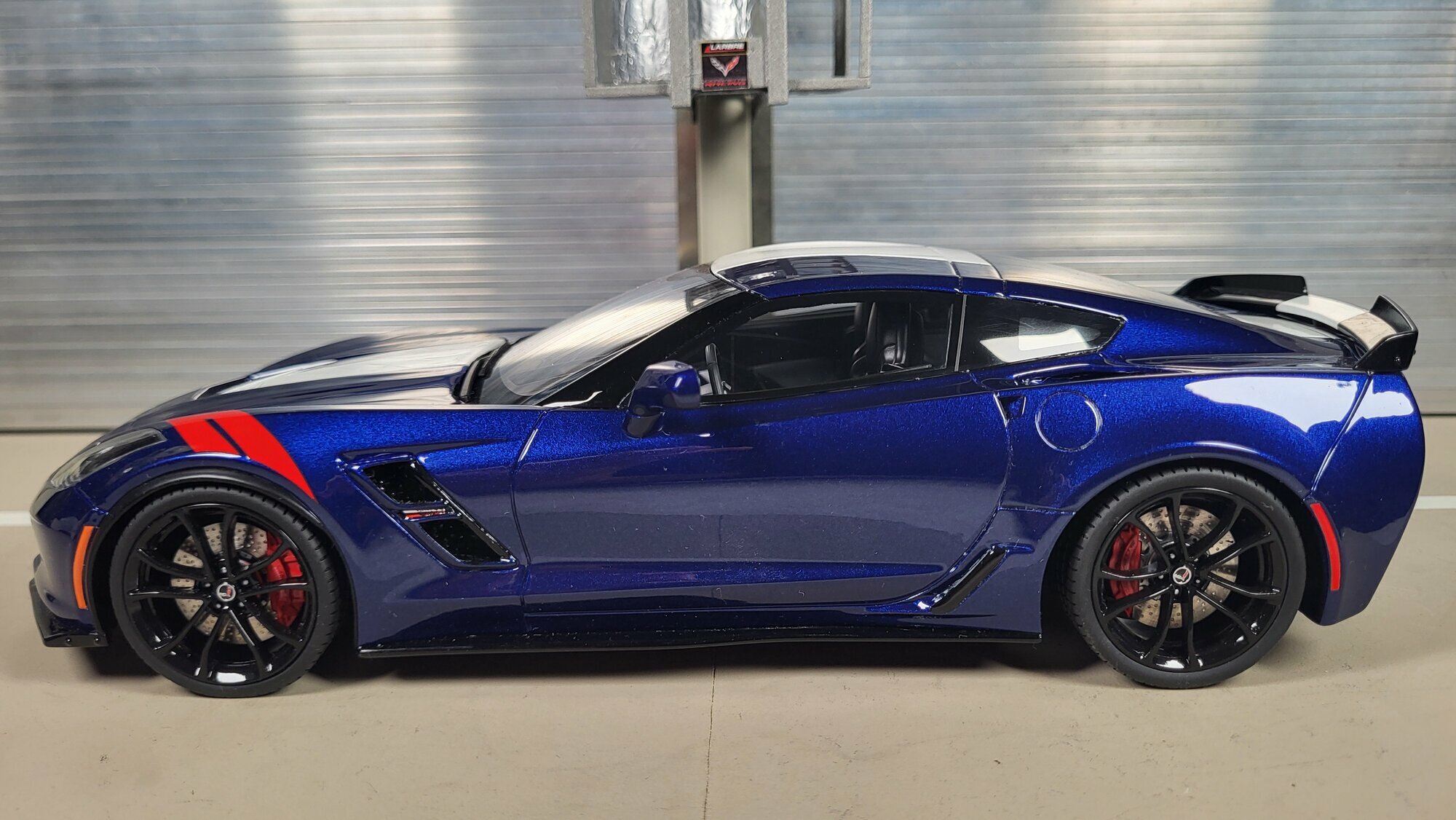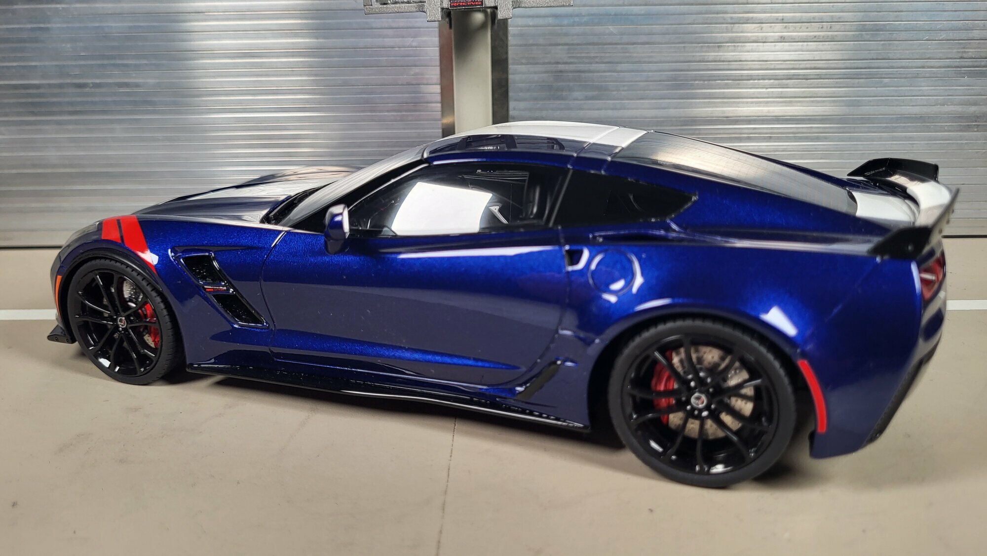 Das Modellfahrzeug, das auf dem berühmten Chevrolet Corvette C7 Grand Sport, der siebten Generation, basiert, die von 2014-2019 produziert wurde, ist ein beeindruckendes Sammlerstück. Dieses Modell ist im 1:18 Maßstab gefertigt und wurde von ACME / GT Spirit hergestellt. Die Chevrolet Corvette C7 Grand Sport ist eine der ikonischsten Sportwagen Amerikas und verbindet kraftvolle Leistung mit auffälligem Design. Entwickelt von Tadge Juechter und seinem Team, wurde die C7 mit dem Ziel konstruiert, eine perfekte Balance zwischen Straße und Rennsport zu erreichen. Der Grand Sport, eine Hommage an die Modelle der 1960er Jahre, kombiniert die breite Karosserie des Z06 mit einem natürlichen Saugmotor, was ihn zu einem einzigartigen Fahrzeug macht.