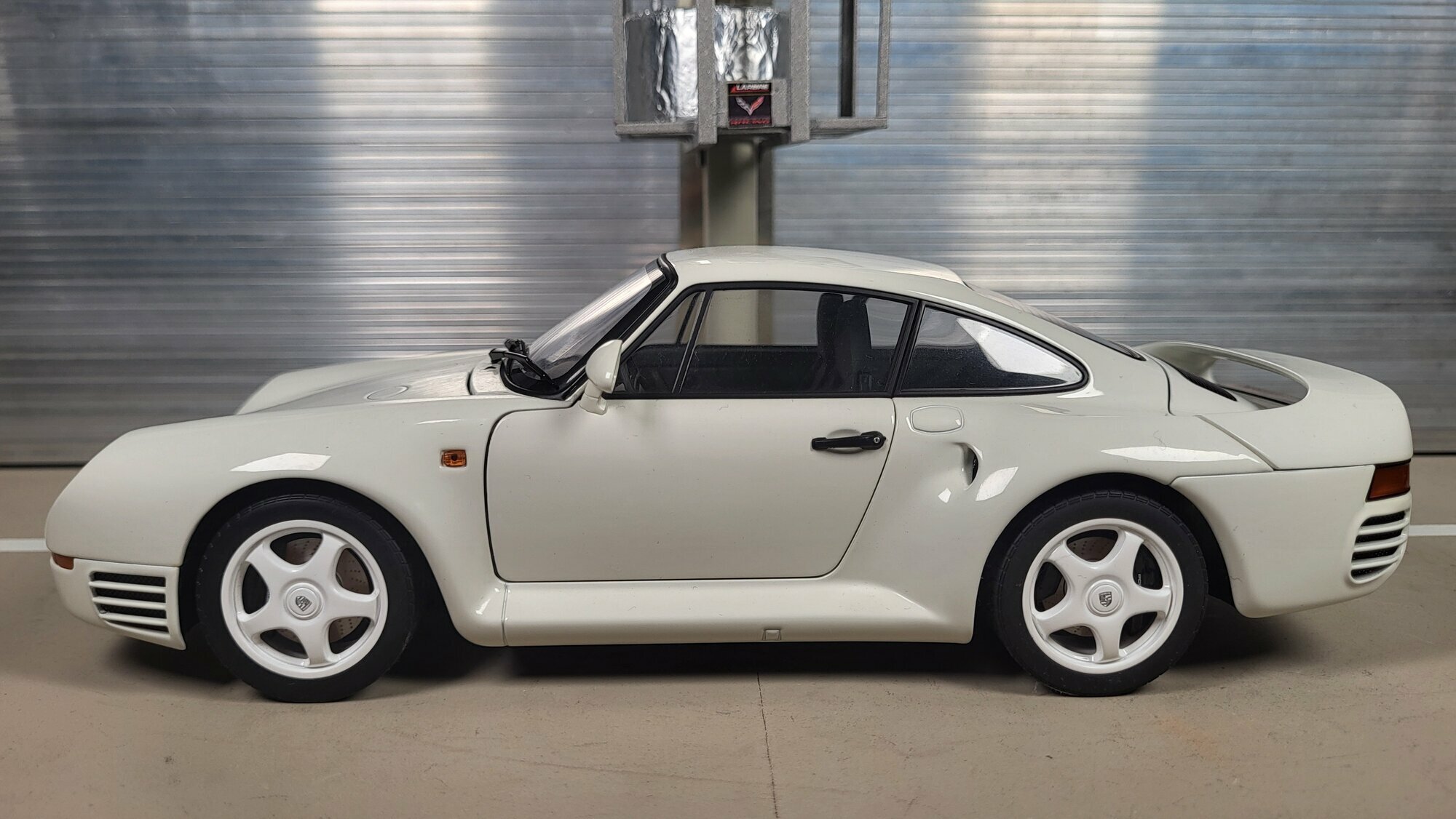 Das vorliegende Modellauto im Maßstab 1:18 wurde von AUTOart Millennium produziert und ist eine erstklassige Nachbildung des originalen Porsche 959. Dieses Modell ist aus Diecast-Material gefertigt, was eine hervorragende Detailtreue und Langlebigkeit gewährleistet. Die Miniatur zeigt die charakteristische aerodynamische Form des Porsche 959 mit seinen breiten, muskulösen Radhäusern und dem markanten Heckspoiler. Die Räder, die in der Miniatur zu sehen sind, spiegeln die originalen Felgen des Porsche 959 wider, die speziell für dieses Fahrzeug entwickelt wurden. Das Modellauto enthält auch die typischen Lüftungsgitter an den Seiten und an der Heckpartie, die für eine optimale Kühlung des Motors sorgen.