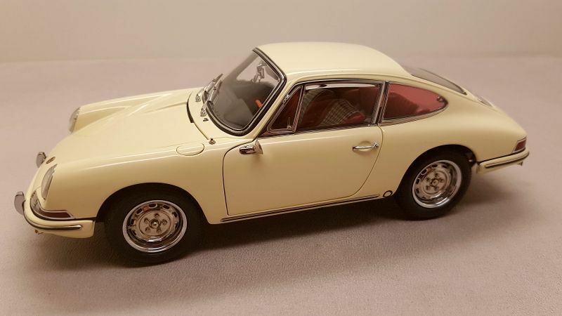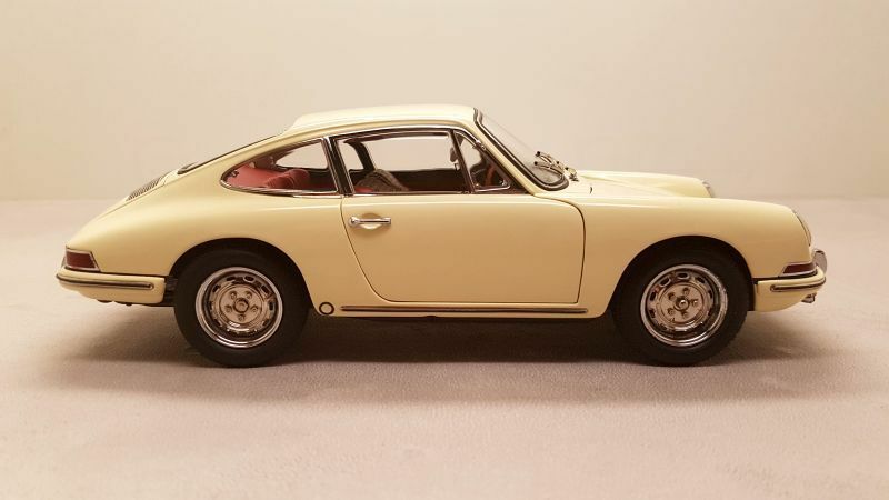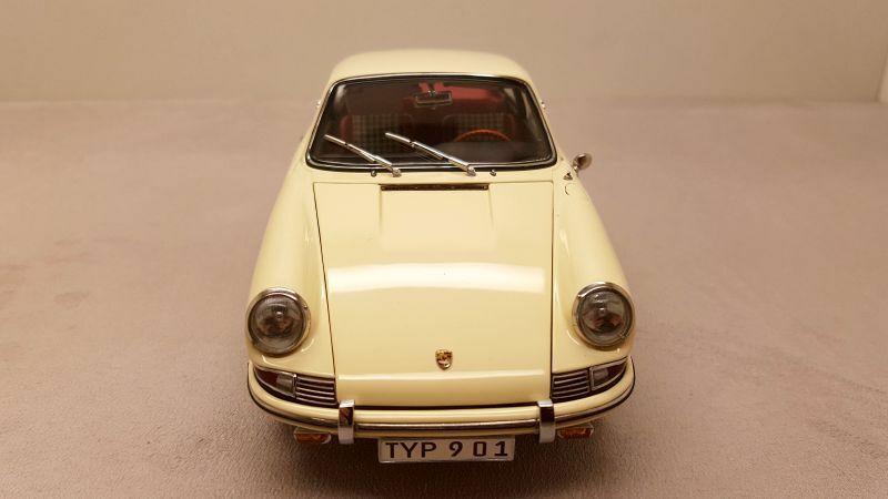 Das hier gezeigte Modellauto ist ein 1:18-Maßstab-Nachbau des Porsche 901, hergestellt von CMC und gefertigt aus hochwertigem Diecast-Material. CMC ist bekannt für seine Präzision und Detailgenauigkeit, was auch bei dieser Miniatur deutlich sichtbar ist. Beim Betrachten des Modellautos fällt besonders die authentische Lackierung auf. Die Farbe ist ein elegantes Elfenbein, das den Charme und die Klasse des Originals perfekt wiedergibt. Die Karosserieformen und -linien sind makellos nachgebildet, was das Modell zu einem ansprechenden Sammlerstück macht.