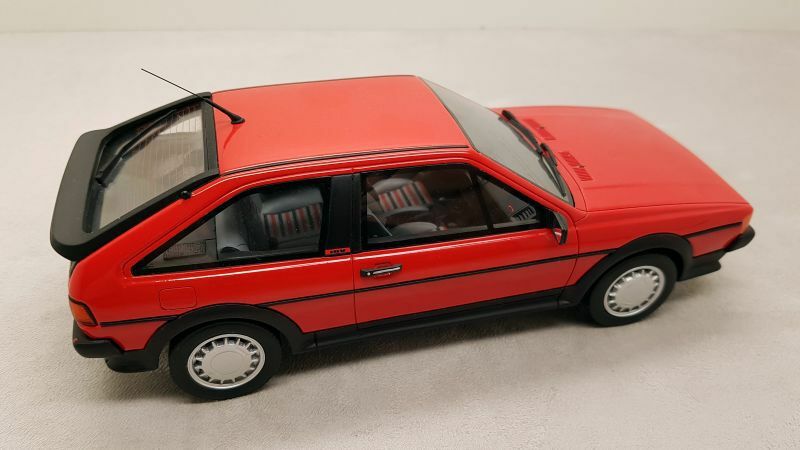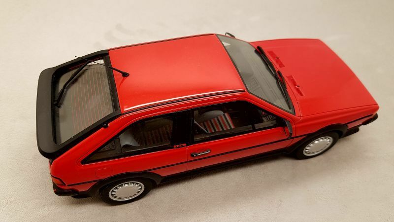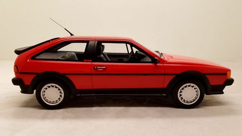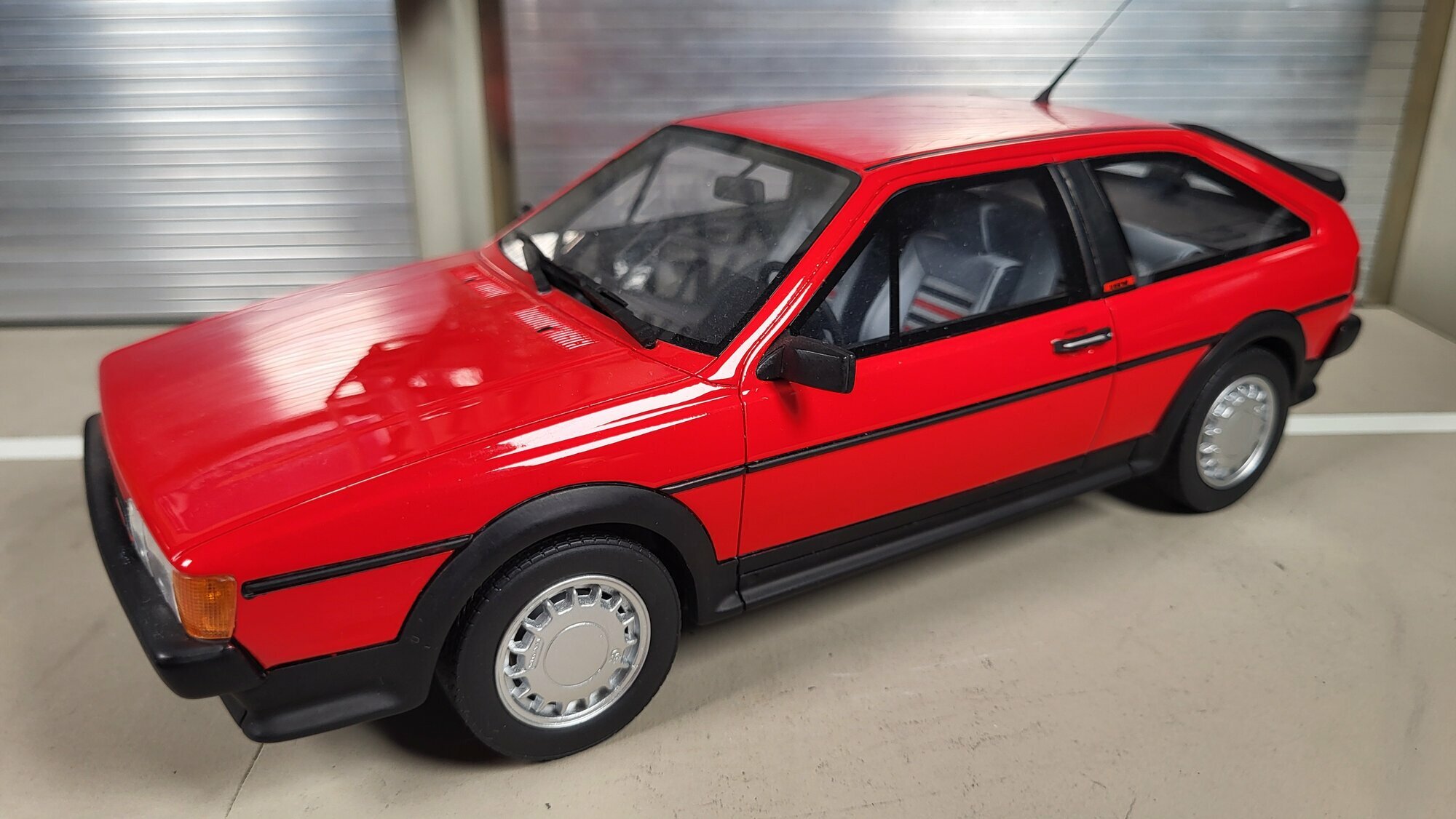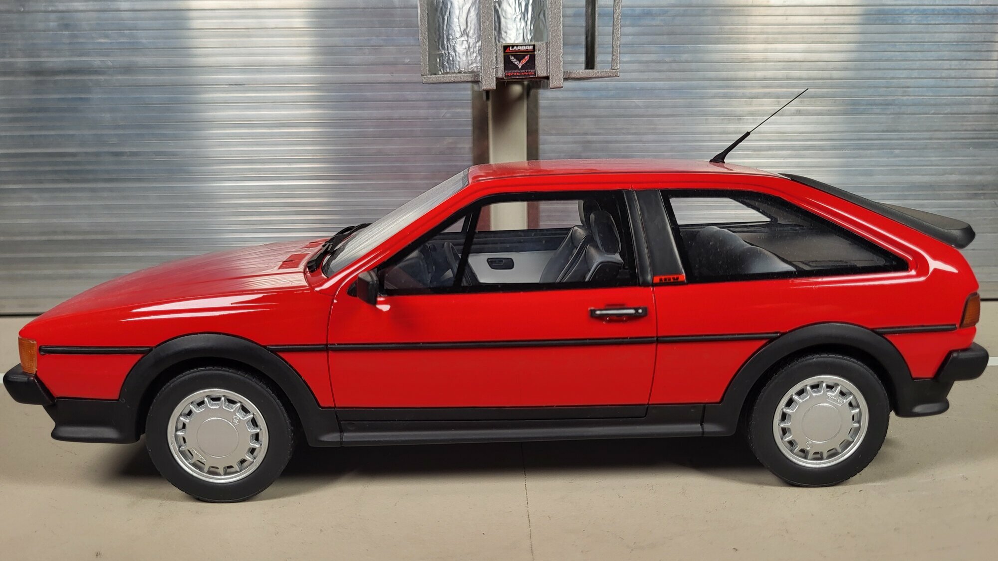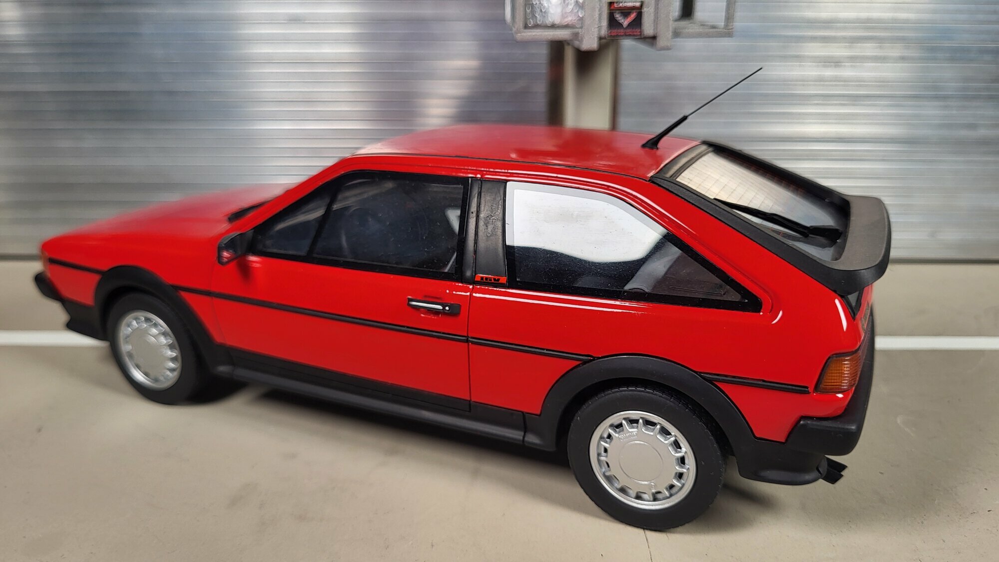 Das Modellauto im Maßstab 1:18 von Otto Models spiegelt das charakteristische Design des originalen Volkswagen Scirocco 2 GTX 16V perfekt wider. Auffallend ist die authentisch nachgebildete rote Lackierung und die detailgetreue Nachbildung der Karosserieformen. Die Innenausstattung ist ebenfalls detailreich gestaltet, mit den passenden Sitzen und Armaturen, die an das Original erinnern. Die schwarzen Akzente und der Heckspoiler sind präzise wiedergegeben und unterstreichen das sportliche Erscheinungsbild. Jeder Aspekt dieses Modells wurde sorgfältig entworfen, um Sammler und Enthusiasten gleichermaßen zu begeistern. Dies ist ein Modellauto, das die Sammlung von Modelly-Mitglied "Phat-T" bereichert und einen echten Blickfang darstellt.