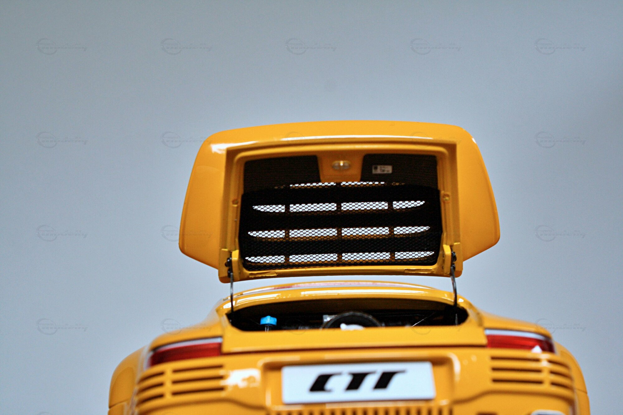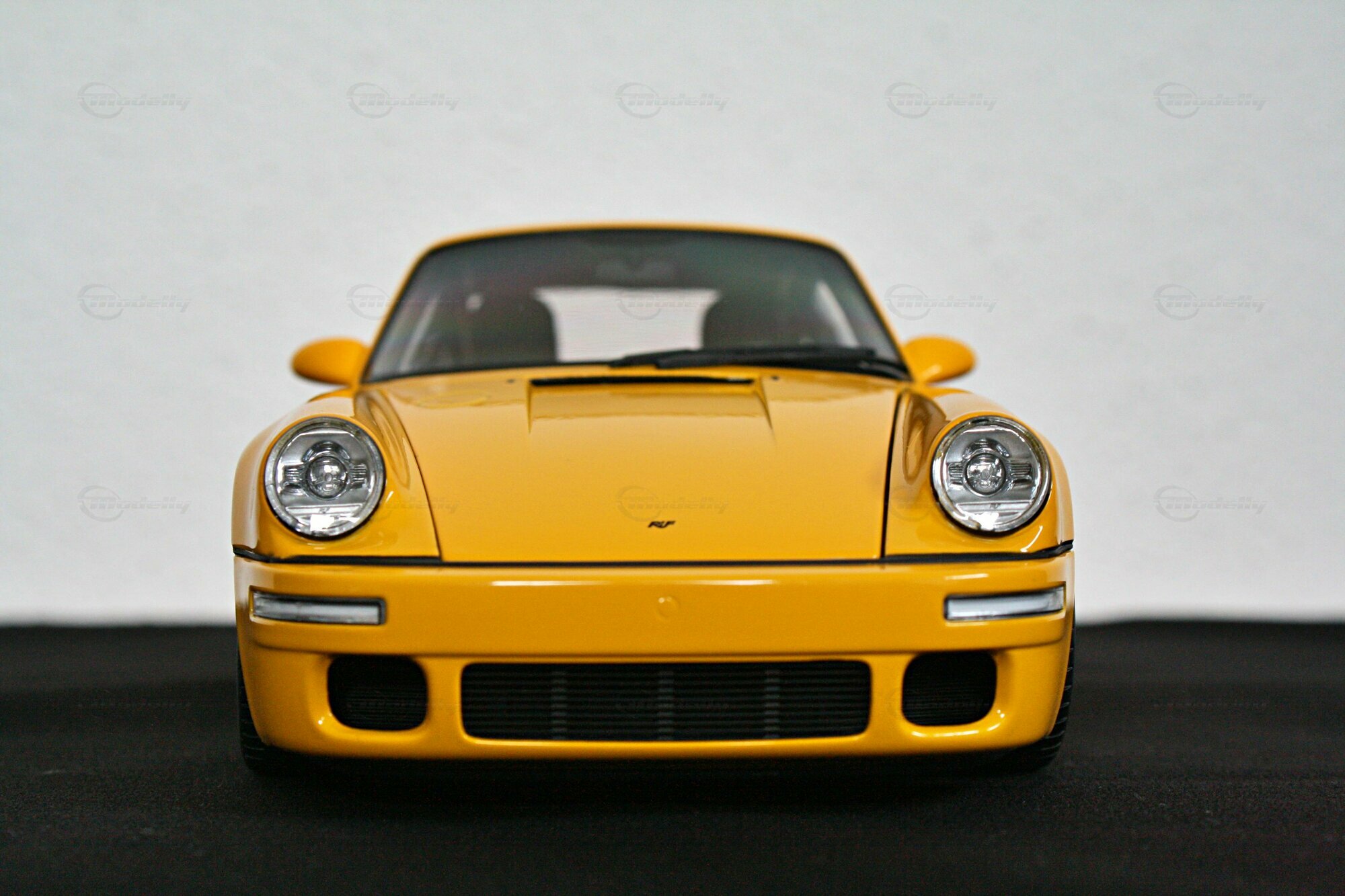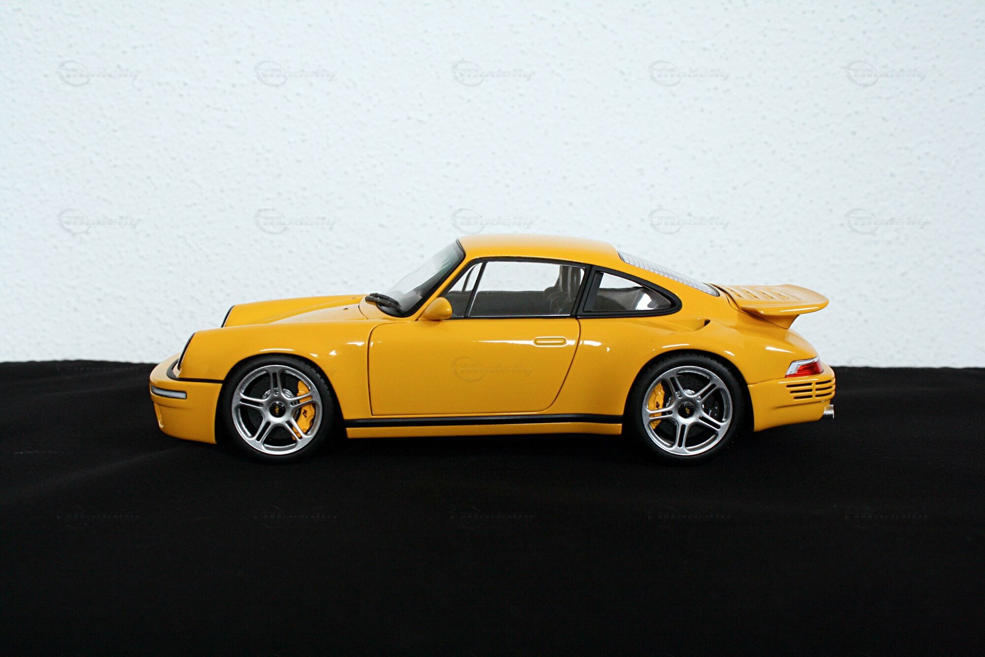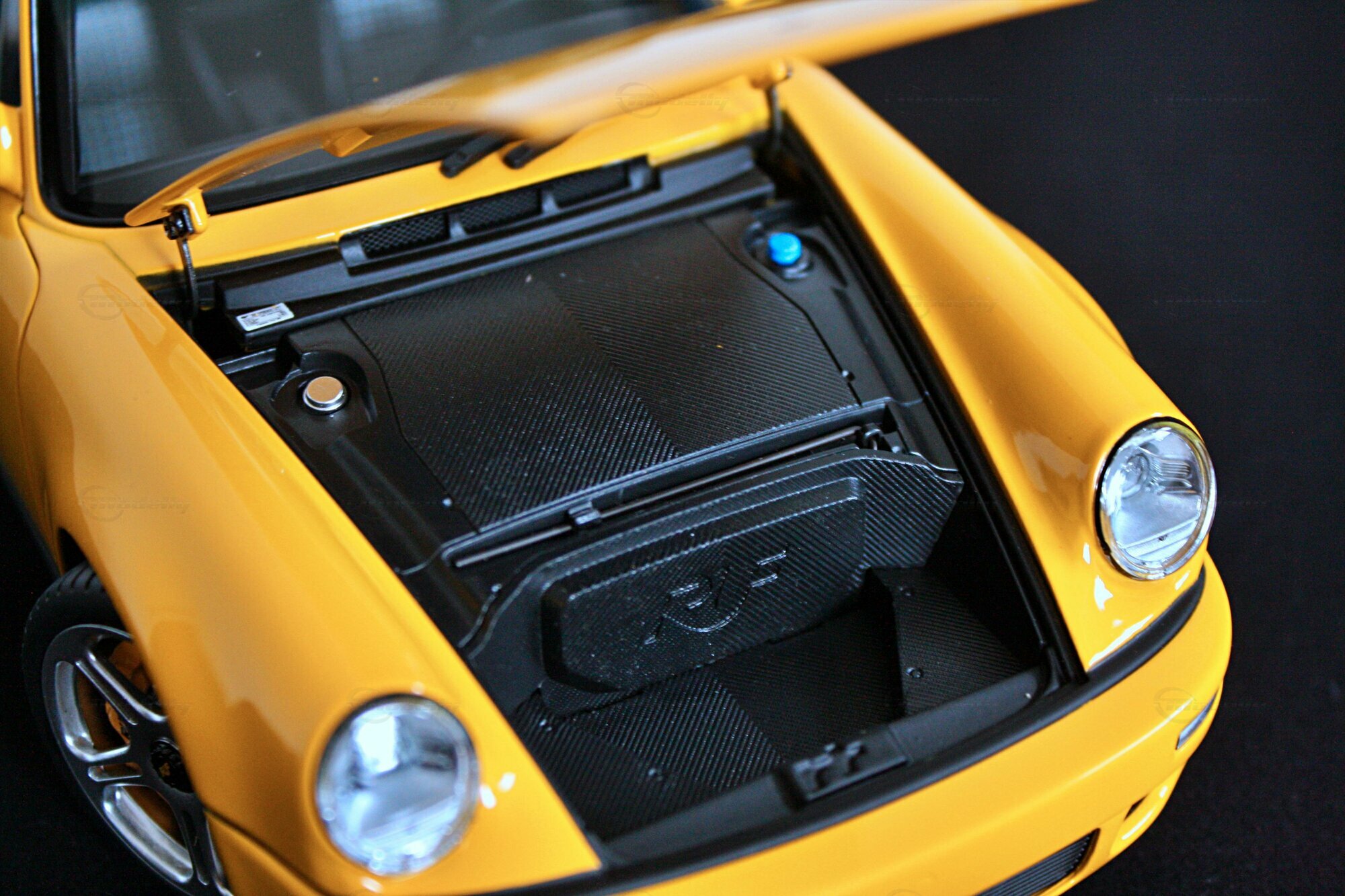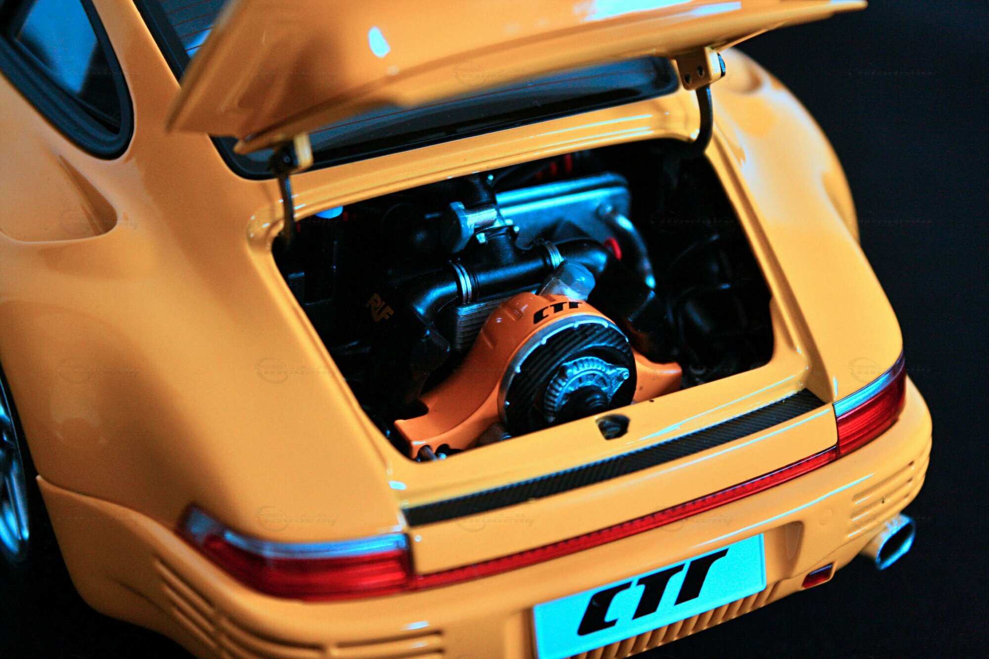 Das Originalfahrzeug, das als Grundlage für dieses 1:18-Modell diente, ist der berühmte Ruf CTR Anniversary. Der Ruf CTR Anniversary wurde anlässlich des 30-jährigen Jubiläums des Ruf CTR, besser bekannt als „Yellowbird“, entwickelt. Der Ruf CTR Anniversary stammt aus dem Jahr 2016 und ist Teil der dritten Generation des CTR. Der Ursprung des Fahrzeuges basiert auf intensiven Modifikationen und Verbesserungen des ursprünglichen Porsche 911, wobei Alois Ruf Jr. maßgeblich an der Entwicklung beteiligt war.Der Ruf CTR Anniversary ist bekannt für seinen leistungsstarken 3,6-Liter-Sechszylinder-Boxermotor, der eine beeindruckende Leistung von 700 PS erzeugt. Diese Leistung wird durch den Einsatz von zwei Turboladern erreicht. Erreicht wird damit eine Höchstgeschwindigkeit von über 360 km/h, was ihn zu einem der schnellsten Fahrzeuge seiner Zeit macht. Die Beschleunigung von 0 auf 100 km/h erfolgt in nur 3,5 Sekunden. Weitere bemerkenswerte technische Merkmale sind das Fahrwerk mit doppelten Querlenkern und ein vollständig aus Karbon gefertigtes Monocoque, das für zusätzliche Stabilität und geringes Gewicht sorgt.