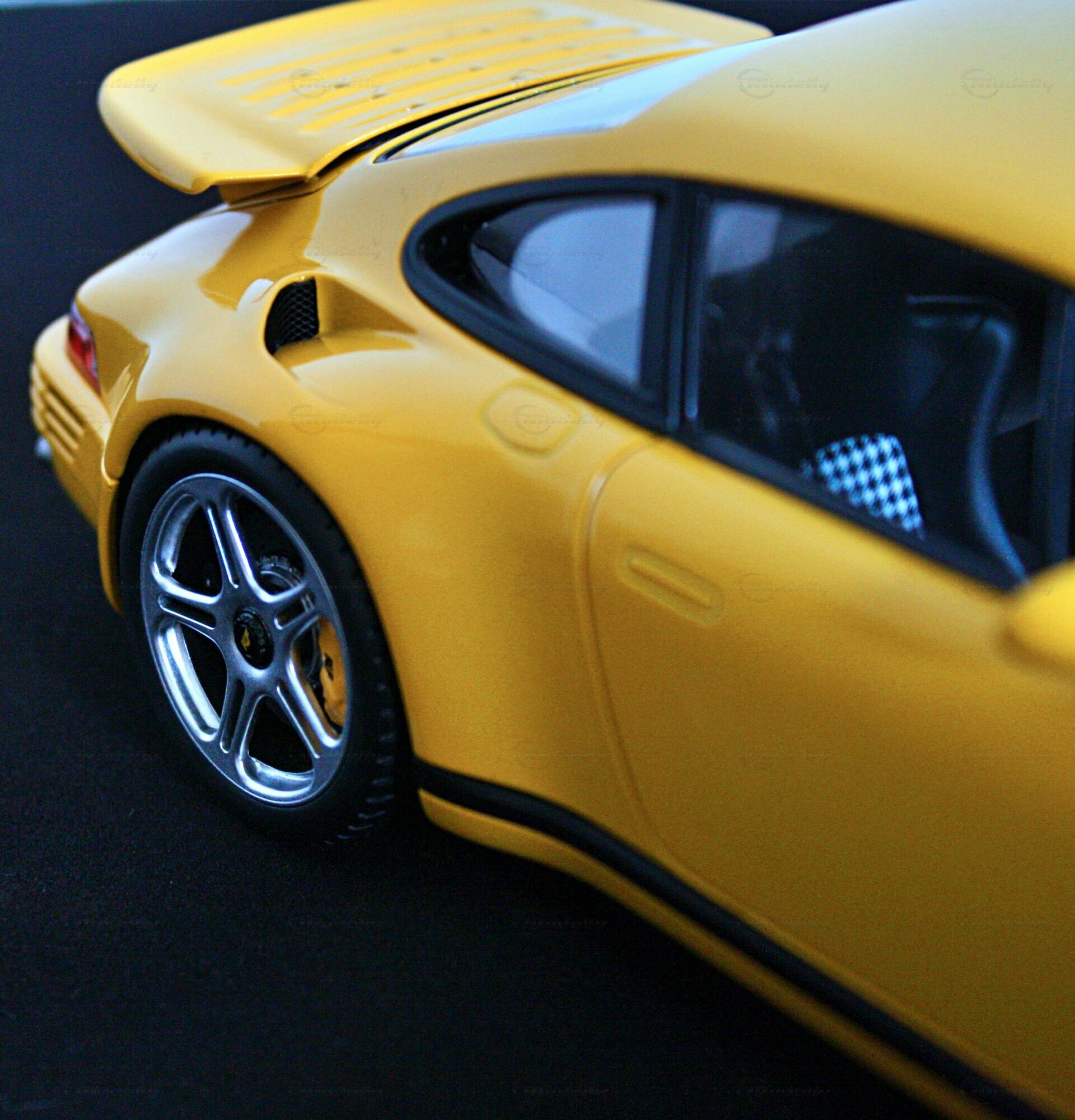 Dieses Miniaturmodell wurde von der renommierten Firma Almost Real hergestellt. Das Modellauto ist eine detailgetreue Nachbildung im Maßstab 1:18, basierend auf die Materialien aus feinstem Druckguss gefertigt. Sammler auf der ganzen Welt schätzen die Präzision und Hingabe, mit der diese Modelle hergestellt werden. Das Modell von Play-X gibt die charakteristischen Merkmale und die markante Linie des Originals exakt wieder. Jede Komponente, von den belüfteten Scheibenbremsen bis hin zu den akribisch nachgebildeten Lufteinlässen, spricht für die Qualität der Nachbildung. Besonders auffallend ist die Lackierung in dem typischen „Ruf Yellow“, die die Blicke auf sich zieht. Weitere Details wie das aerodynamisch gestaltete Heck und die detailreiche Gestaltung des Innenraums mit Rennsportsitzen und einem Überrollkäfig unterstreichen die Authentizität des Modells.