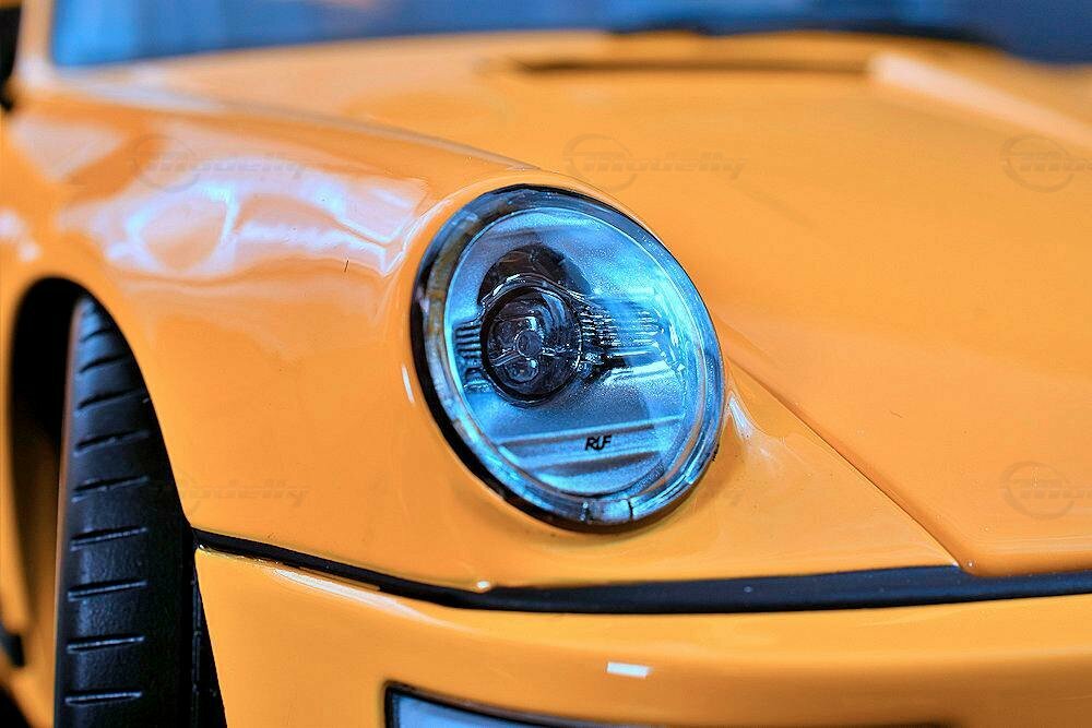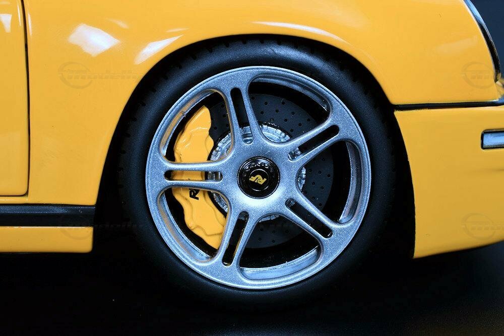Der Ruf CTR Anniversary selbst ist ein Fahrzeug, das in höchstem Maße technische Präzision und geschichtliche Bedeutung vereint. Als Erbe und Weiterentwicklung des legendären „Yellowbird“ hat Ruf viele technische Errungenschaften in dieses Fahrzeug integriert. Die Ingenieure und Designer, darunter Alois Ruf Jr., haben hierbei keine Mühen gescheut. Auffällig sind auch die Räder, die von OZ Racing stammen, einem angesehenen Hersteller von Felgen, der für seine hochwertigen Leichtmetallräder bekannt ist. Das Modell in der Sammlung von Play-X präsentiert diese außergewöhnlichen Details präzise. Die Felgen ähneln den originalen OZ Racing-Rädern. Ebenso die eleganten und aggressiven Linienführungen der Karosserie, die akribisch nachgebildet wurden und den typischen „Ruf Yellow“ Lack aufweisen.
