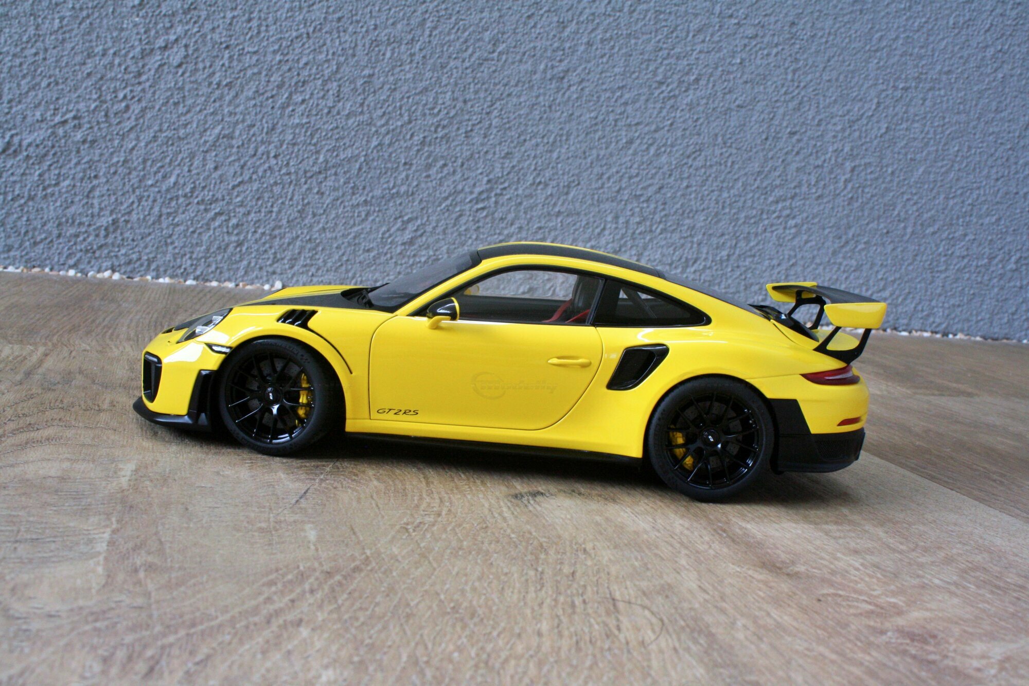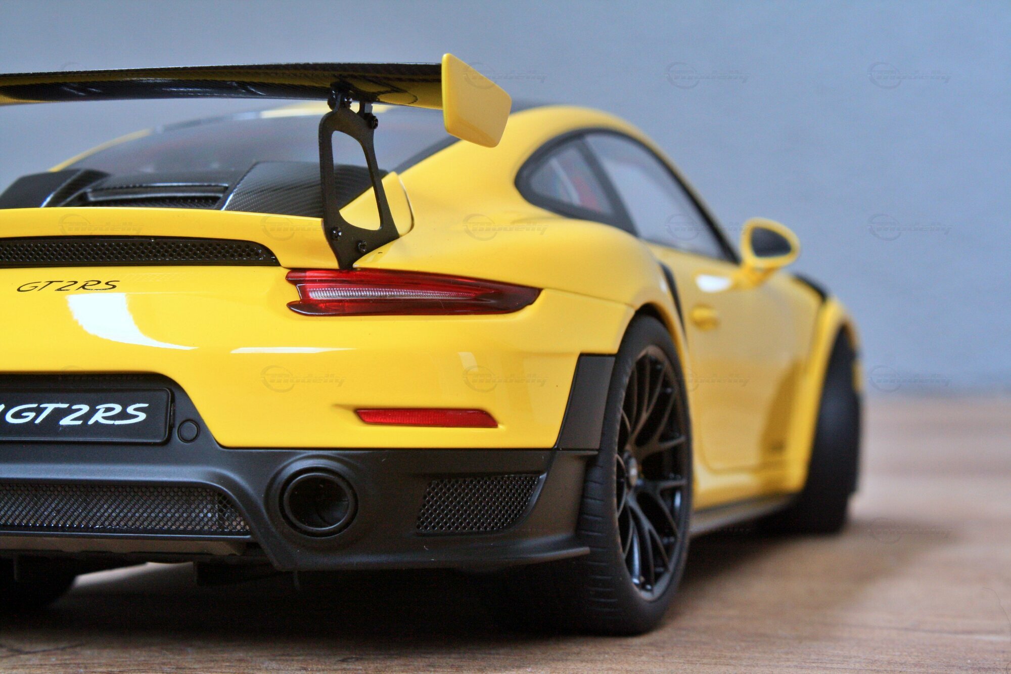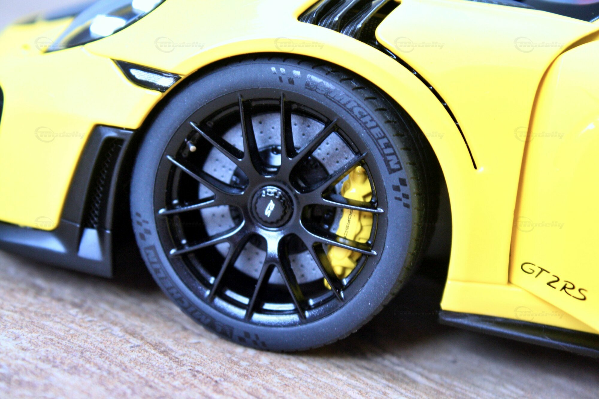 Dieses präzise gefertigte Modell ist nicht nur für Porsche-Enthusiasten, sondern auch für Modellautoliebhaber ein echtes Highlight in der Sammlung. Zu den besonderen Merkmalen zählen die feingravierten Lüftungsgitter, der detaillierte Innenraum mit roten Akzentuierungen und die exakte Nachbildung der Bremsen mit den gelben Bremssätteln. Dank der hohen Fertigungsqualität von AUTOart im Maßstab 1:18 bietet dieses Modell eine hervorragende Möglichkeit, die Schönheit und die technischen Besonderheiten des Porsche 911 (991 II) GT2 RS auch im Kleinformat zu bewundern. Zusammen mit der exzellenten Lackierung und den detailgetreuen Nachbildungen der einzelnen Komponenten ist dieses Modellauto eine wertvolle Ergänzung für jede Sammlung.