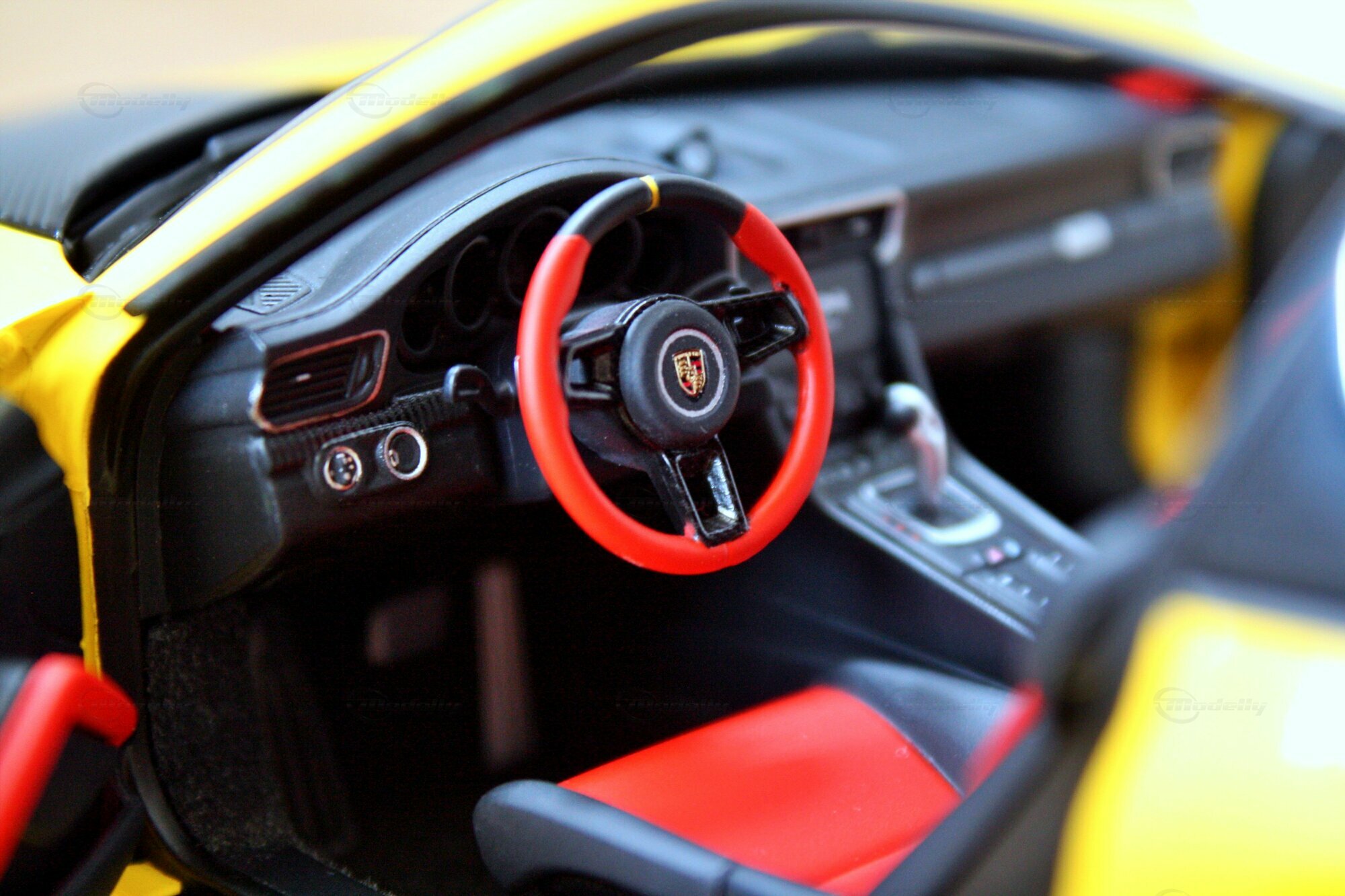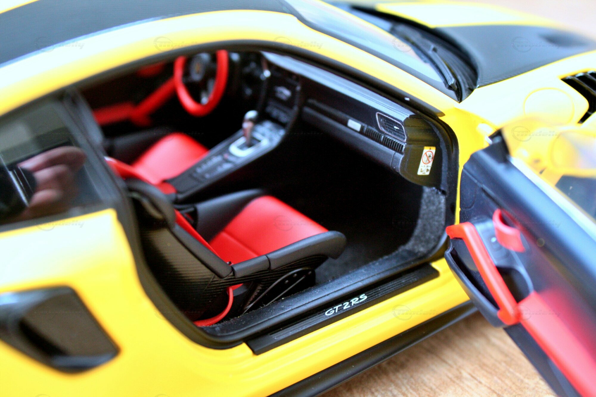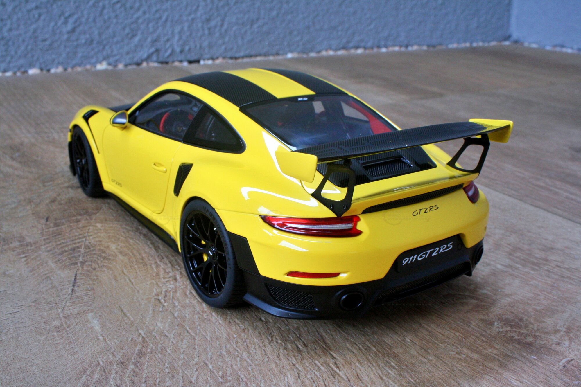 Dieses präzise gefertigte Modell ist nicht nur für Porsche-Enthusiasten, sondern auch für Modellautoliebhaber ein echtes Highlight in der Sammlung. Zu den besonderen Merkmalen zählen die feingravierten Lüftungsgitter, der detaillierte Innenraum mit roten Akzentuierungen und die exakte Nachbildung der Bremsen mit den gelben Bremssätteln. Dank der hohen Fertigungsqualität von AUTOart im Maßstab 1:18 bietet dieses Modell eine hervorragende Möglichkeit, die Schönheit und die technischen Besonderheiten des Porsche 911 (991 II) GT2 RS auch im Kleinformat zu bewundern. Zusammen mit der exzellenten Lackierung und den detailgetreuen Nachbildungen der einzelnen Komponenten ist dieses Modellauto eine wertvolle Ergänzung für jede Sammlung.