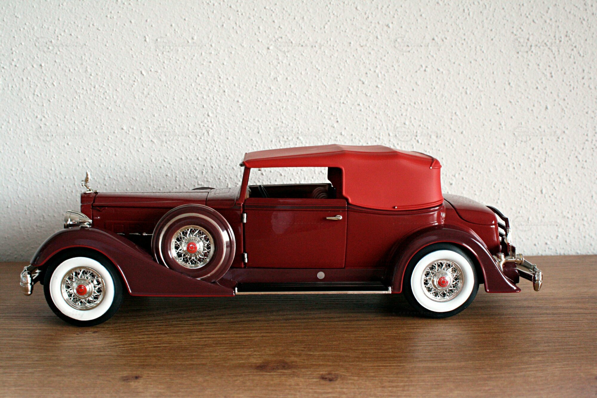 Die historische Bedeutung des Packard V12 Victoria und seine zeitlose Eleganz machen ihn zu einem begehrten Objekt, nicht nur für Autofans sondern auch für Freunde klassischer Technik und Handwerkskunst. Seine technische Raffinesse und der einmalige Stil machen ihn zu einer Ikone, die in keiner Sammlung fehlen sollte. Der Stil und die Klasse des Originals spiegeln sich perfekt in diesem detaillierten Modell wider, das sich durch Präzision und originalgetreue Nachbildung auszeichnet.