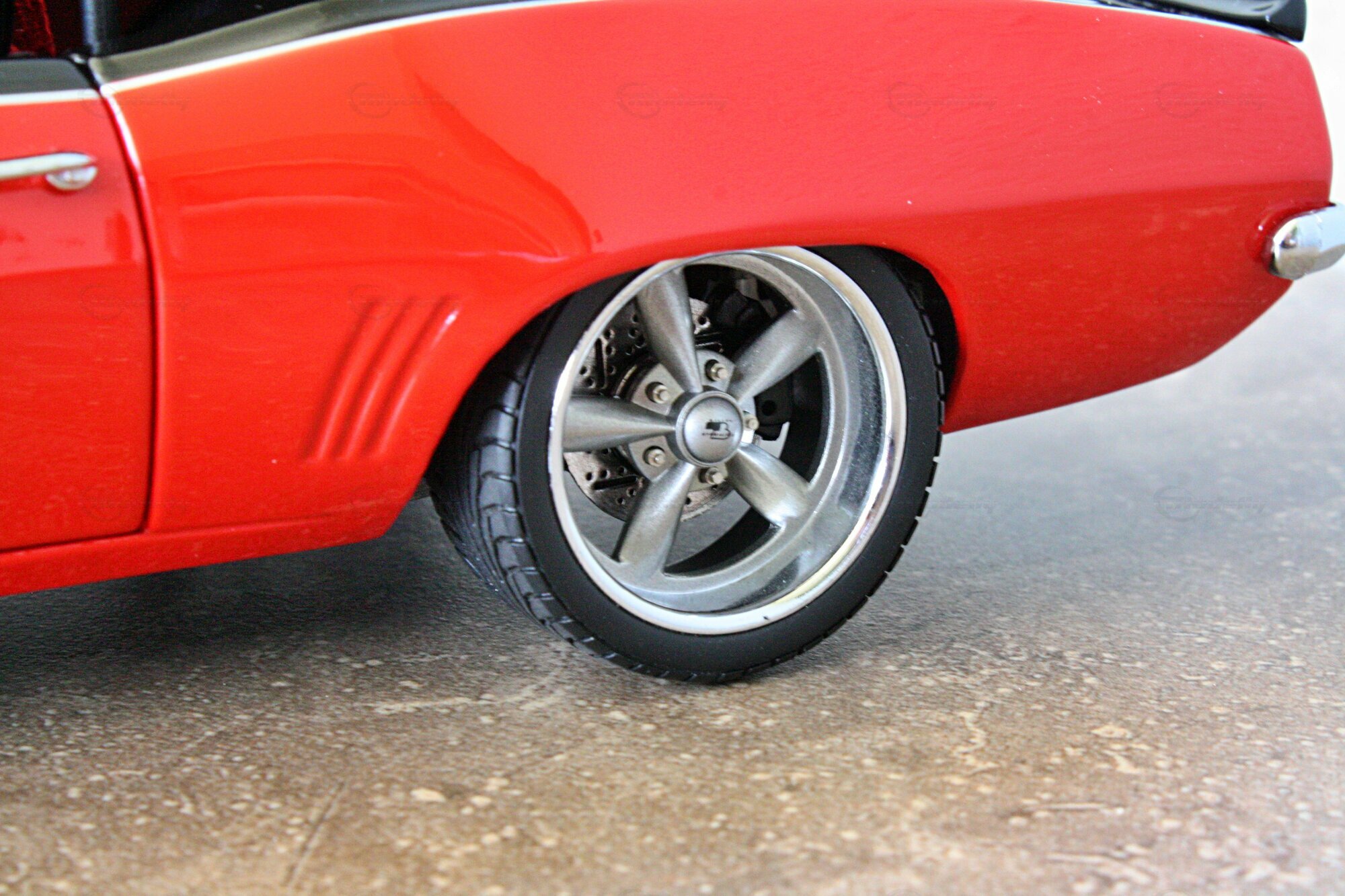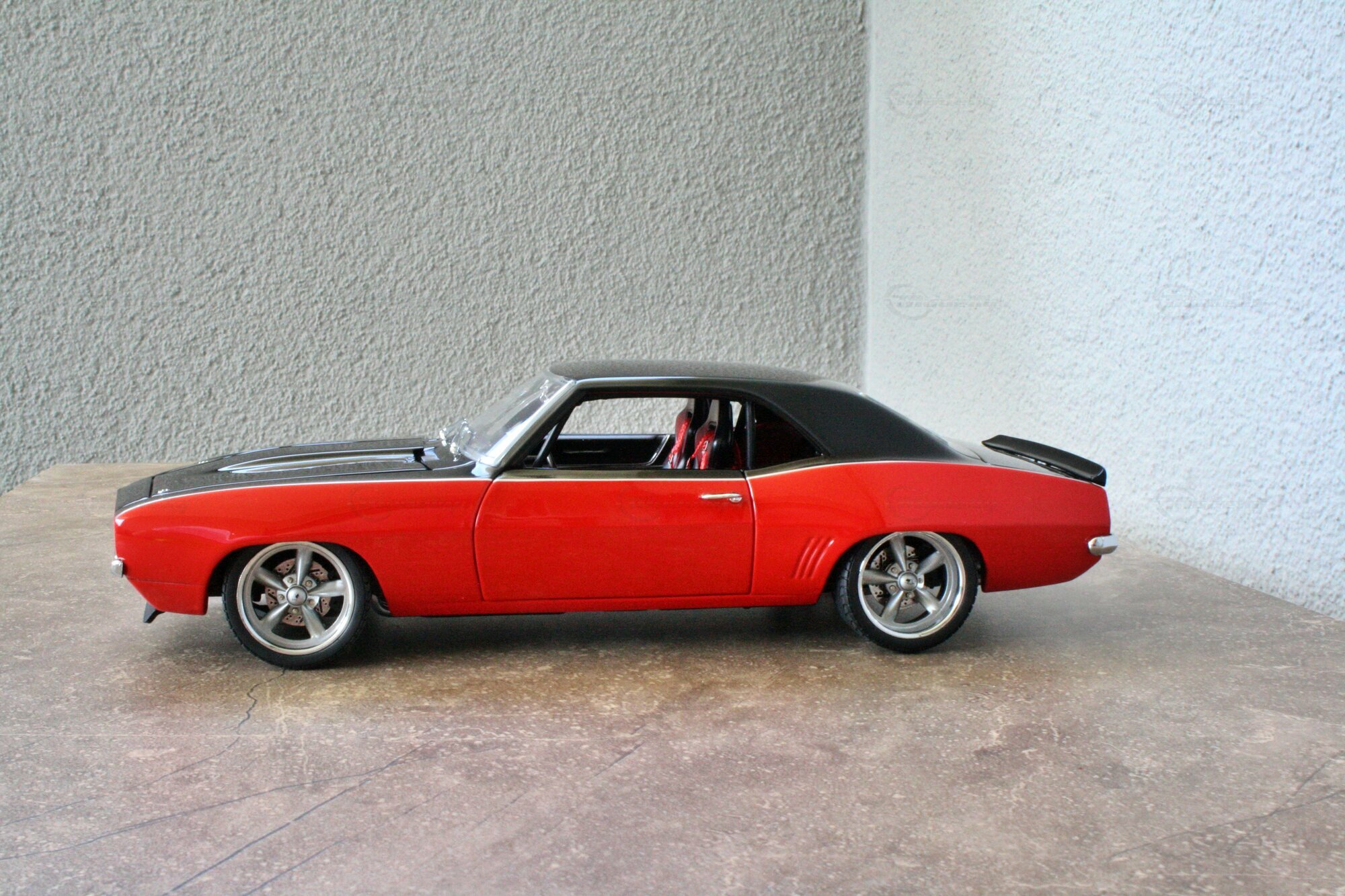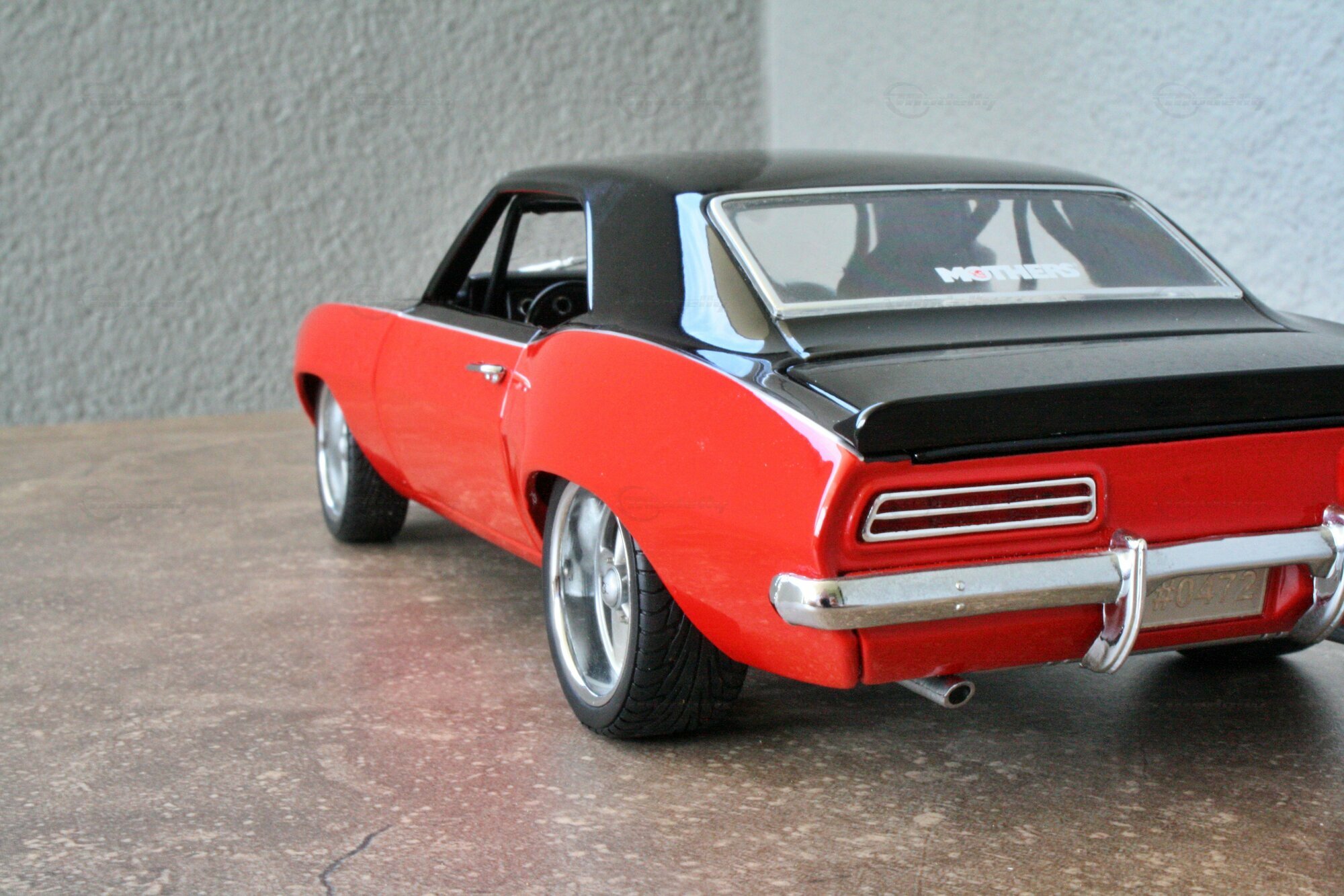 Das hier vorgestellte Modellauto, ein 1:18 Maßstab von GMP, ist ein Sammlerstück, das basierend auf dem Chevrolet Camaro Streetfighter Mothers gefertigt wurde. Dieses Detail verlieh dem Miniaturmodell, das aus Diecast-Material hergestellt wurde, eine beeindruckende Robustheit und eine authentische Erscheinung. Besonders erwähnenswert ist, dass dieses Miniaturmodell auf einer weltweiten Stückzahl von 996 Exemplaren limitiert ist, was den Sammlerwert erheblich steigert. In den Fotos, die vom Modelly-Mitglied „Play-X“ stammen, sind die Qualität und der Detailgrad des Modells erkennbar. Beispielsweise sind die Rennsitze mit roten Gurten und ein originalgetreues Cockpit gut erkennbar. Diese Aufwertungen tragen zur realistischen Darstellung des Straßenrennwagens bei. Werft man einen genaueren Blick auf die Räder, so sind dort speziell designte Felgen des Herstellers American Racing in einem klassischen Stil angebracht. Auch wenn genaue Modellinformationen der Felgen fehlen, sind sie dennoch ein markantes Merkmal dieser Modellnachbildung.