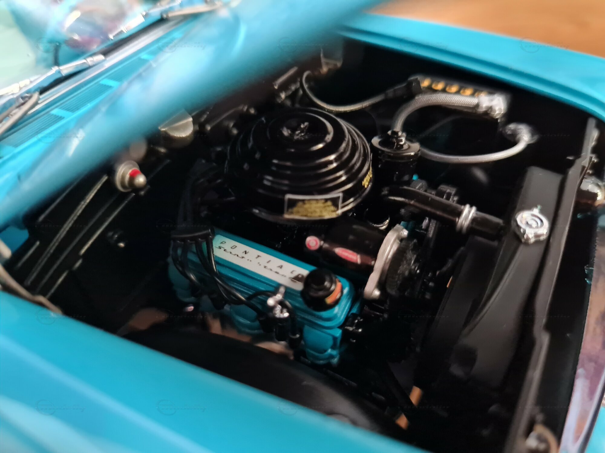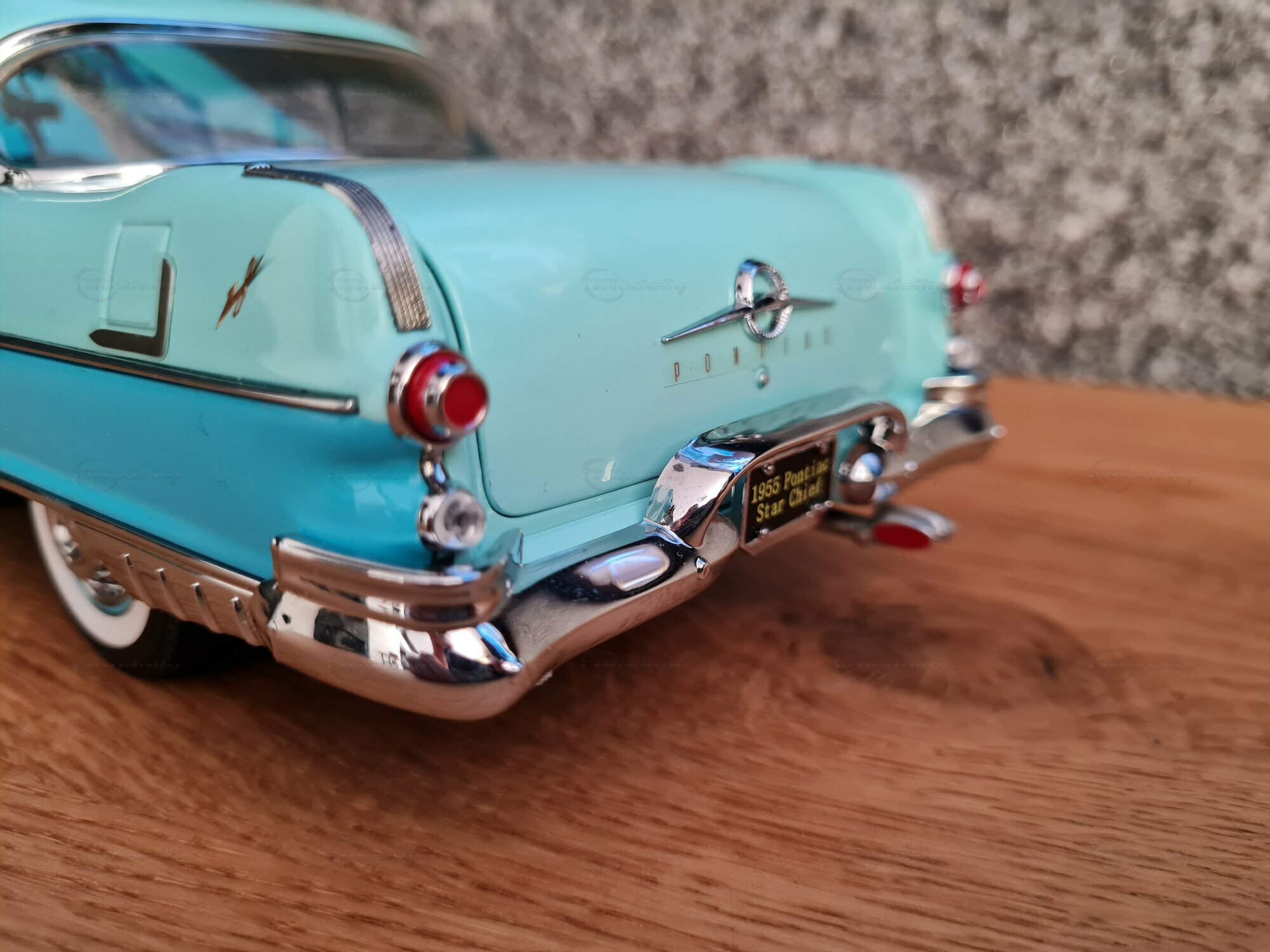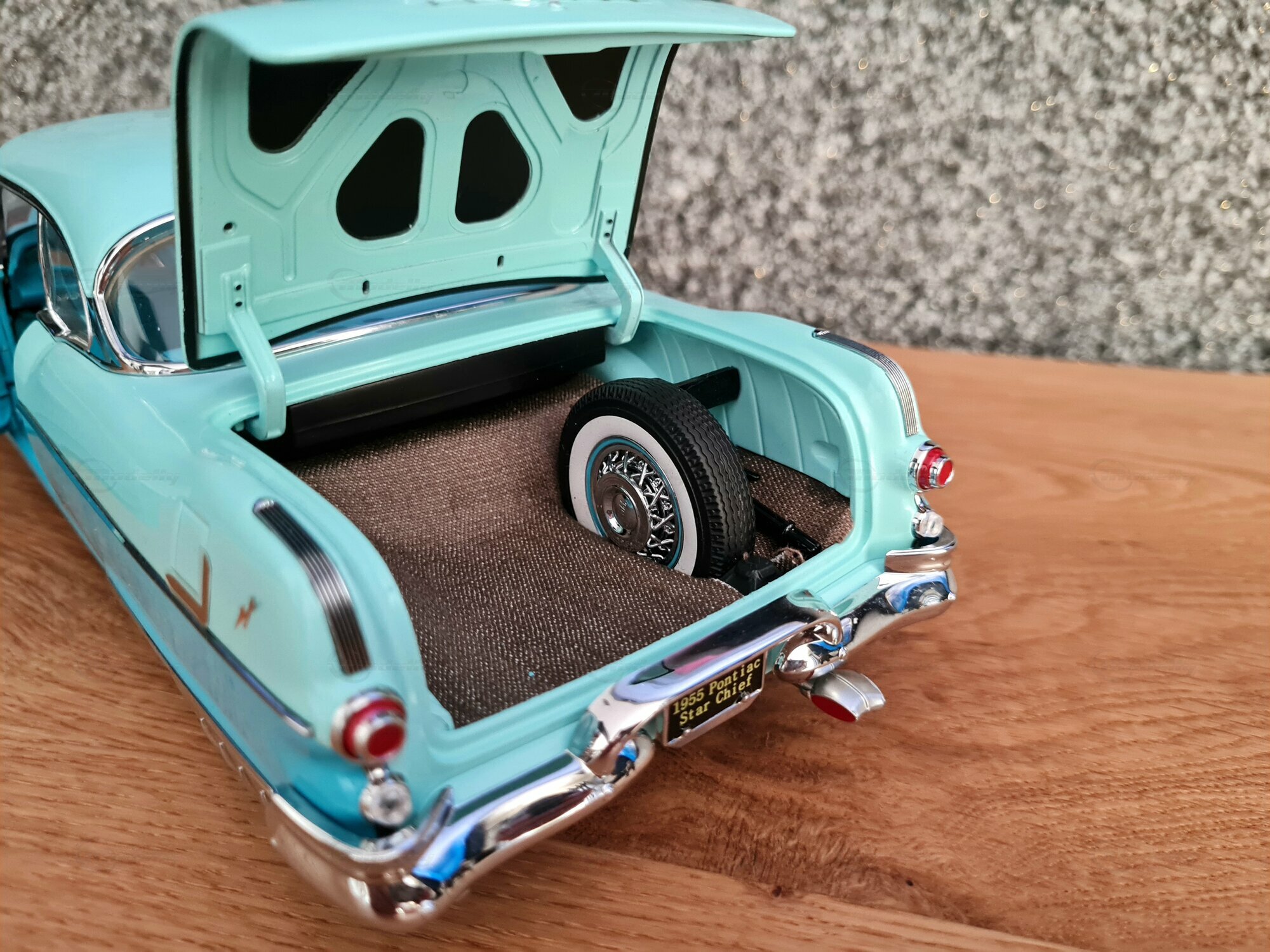 Das 1:18-Modell von Sun Star ist bei Sammlern weltweit sehr beliebt. Besonders beeindruckend ist die liebevolle Wiedergabe der Details, von den Scheinwerfern bis zu den Heckleuchten. So wurde auch das originale Interieur des Pontiac Star Chief nachgebildet, inklusive der Armaturenbrett-Details und der Sitze. Das Modell in der Sammlung von „Play-X“ zeigt das Fahrzeug in einem bestechend schönen Türkisblau, was es zu einem Hingucker in jeder Modellautosammlung macht. Weitere markante Details sind die fein gespritzten Embleme und die Anzahl der Zierleisten. Es sei angemerkt, dass solche sorgfältige Nachbildungen auch die Welt und die Zeit veranschaulichen, in der das original Fahrzeug produziert wurde: eine Ära des Umbruchs und der Innovation in der Automobilgeschichte.