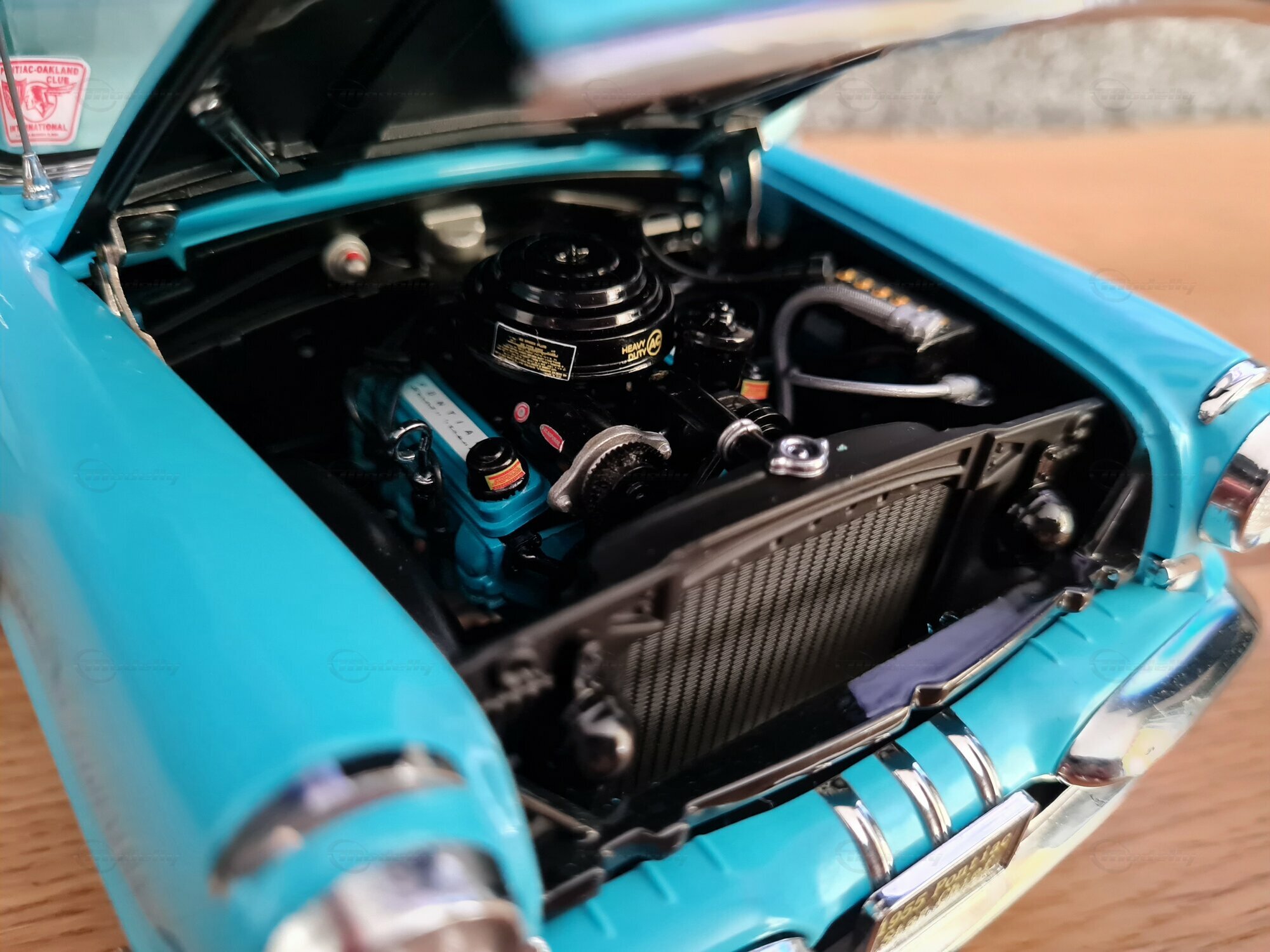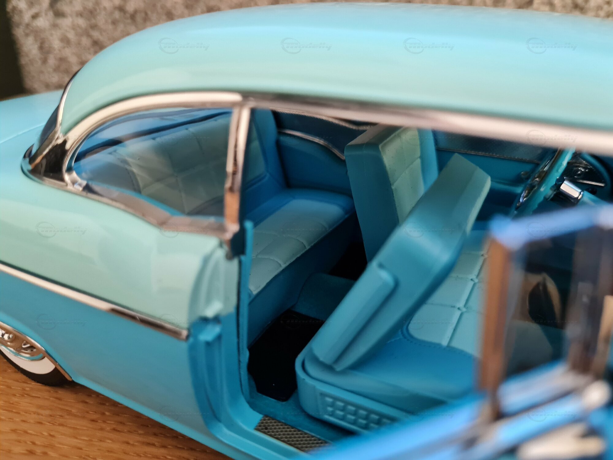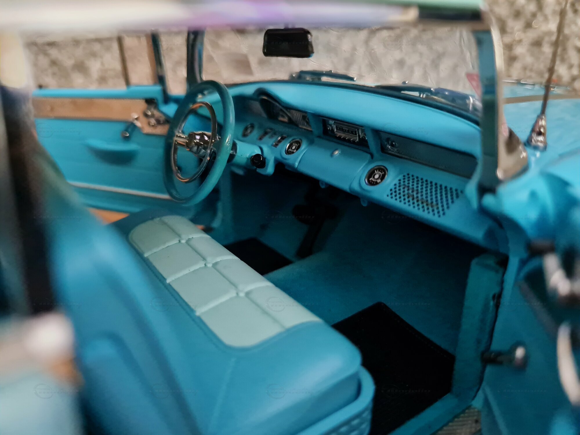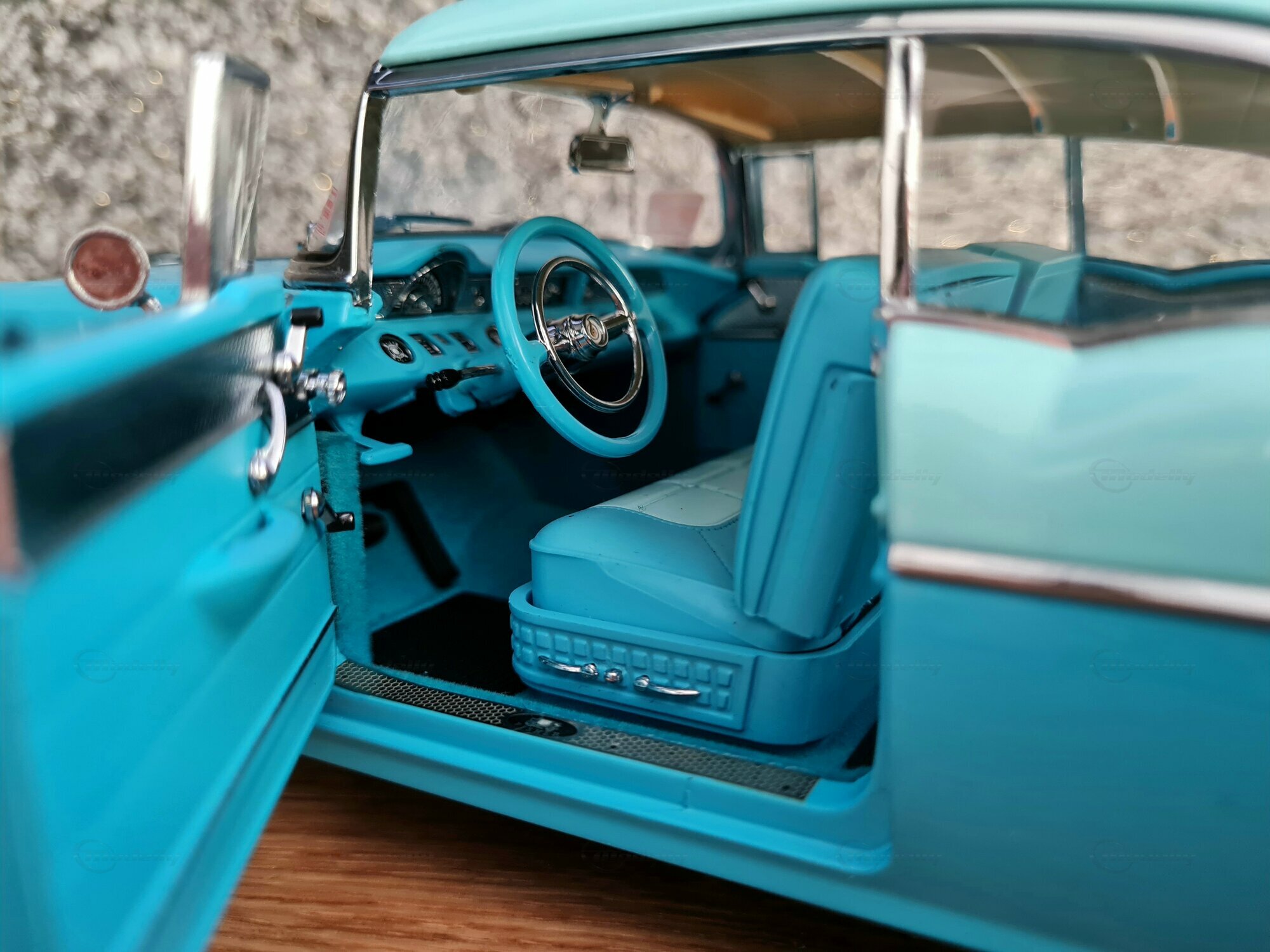 Das 1:18-Modell von Sun Star ist bei Sammlern weltweit sehr beliebt. Besonders beeindruckend ist die liebevolle Wiedergabe der Details, von den Scheinwerfern bis zu den Heckleuchten. So wurde auch das originale Interieur des Pontiac Star Chief nachgebildet, inklusive der Armaturenbrett-Details und der Sitze. Das Modell in der Sammlung von „Play-X“ zeigt das Fahrzeug in einem bestechend schönen Türkisblau, was es zu einem Hingucker in jeder Modellautosammlung macht. Weitere markante Details sind die fein gespritzten Embleme und die Anzahl der Zierleisten. Es sei angemerkt, dass solche sorgfältige Nachbildungen auch die Welt und die Zeit veranschaulichen, in der das original Fahrzeug produziert wurde: eine Ära des Umbruchs und der Innovation in der Automobilgeschichte.