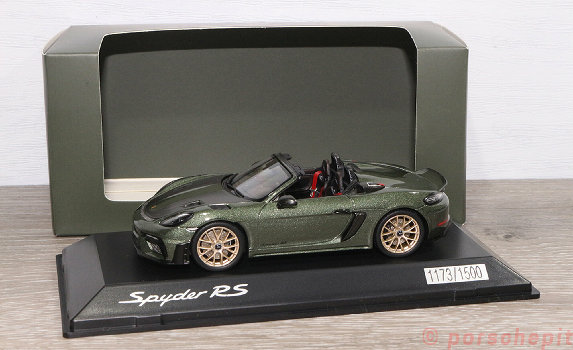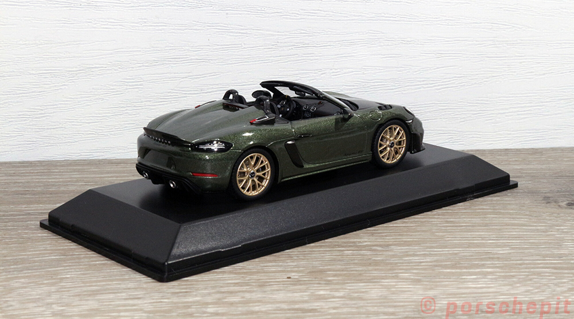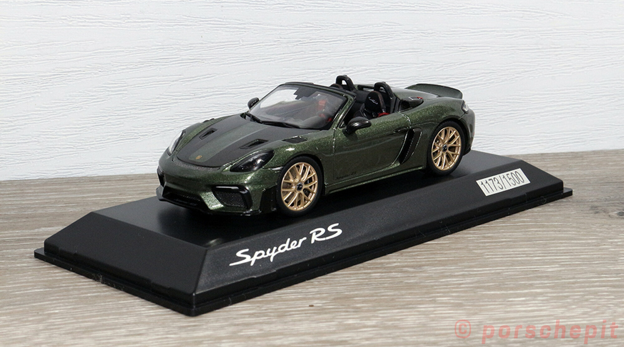 Das Modell des Porsche 718 Spyder RS von SPARK im Maßstab 1:43 besticht durch seine detaillierte Ausführung. Diese Miniatur, die aus Resin gefertigt ist, vermittelt die Eleganz und Dynamik des Originals. Resin ist ein Material, das für seine Fähigkeit zur Wiedergabe feiner Details bekannt ist, was dieses Modell zu einem wertvollen Sammlerstück macht. Die Lackierung in einem tiefen Grün mit klaren, glitzernden Akzenten lässt das Modell in einem speziellen Licht erstrahlen. Dazu kommen die präzise gestalteten Details wie die Zierleisten und der markante Porsche-Schriftzug. Dass dieses Modell eine limitierte Auflage von 1:1500 Stück weltweit ist, unterstreicht seine Exklusivität und den Sammlerwert.