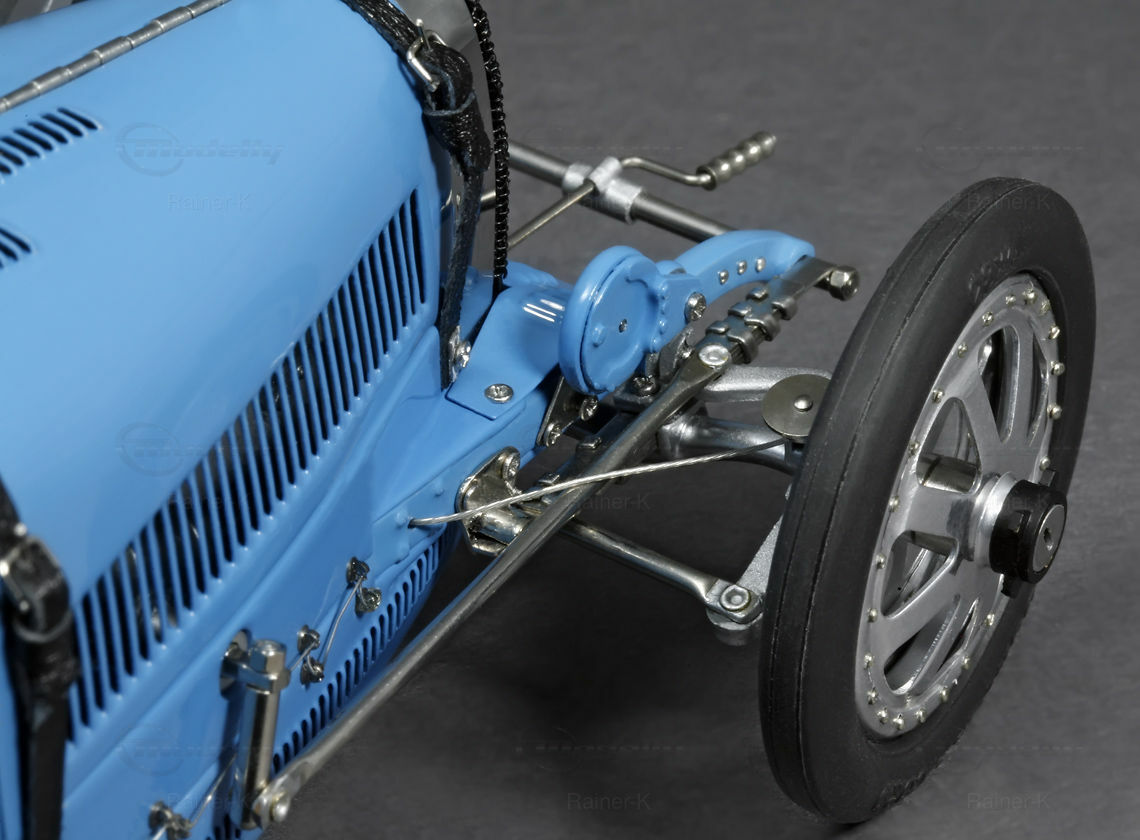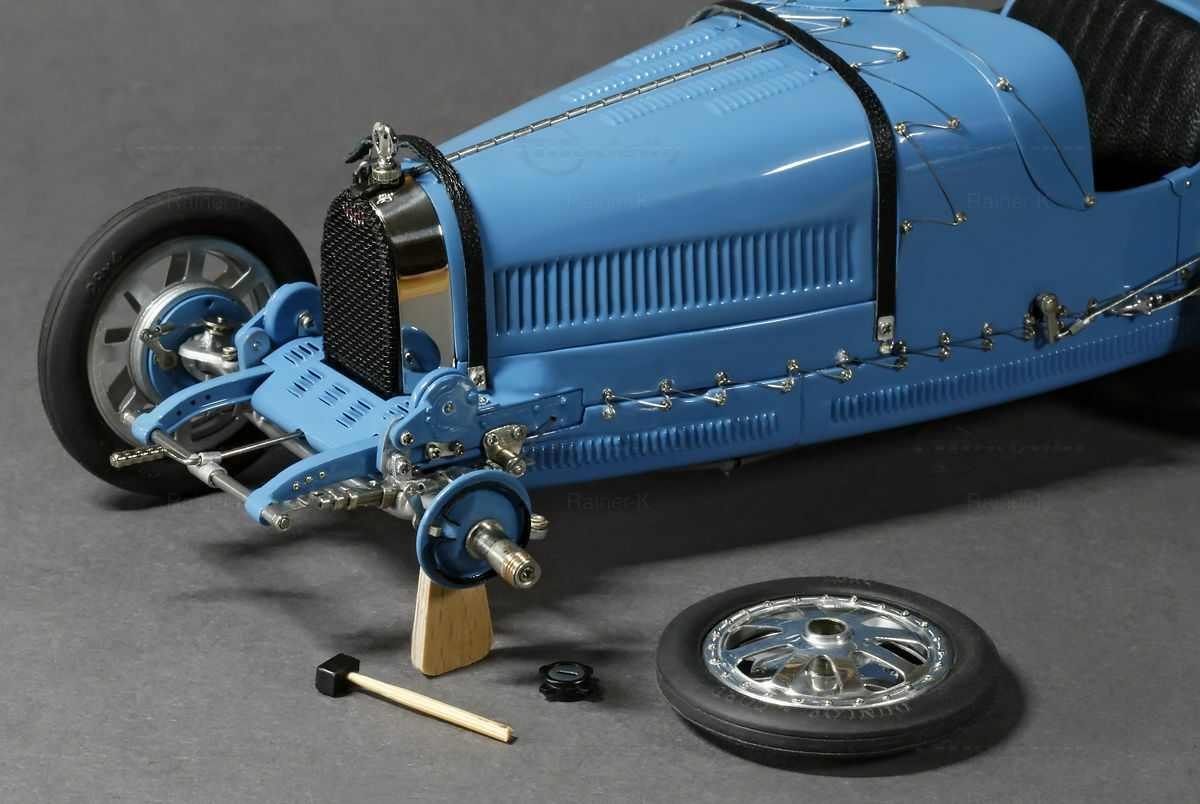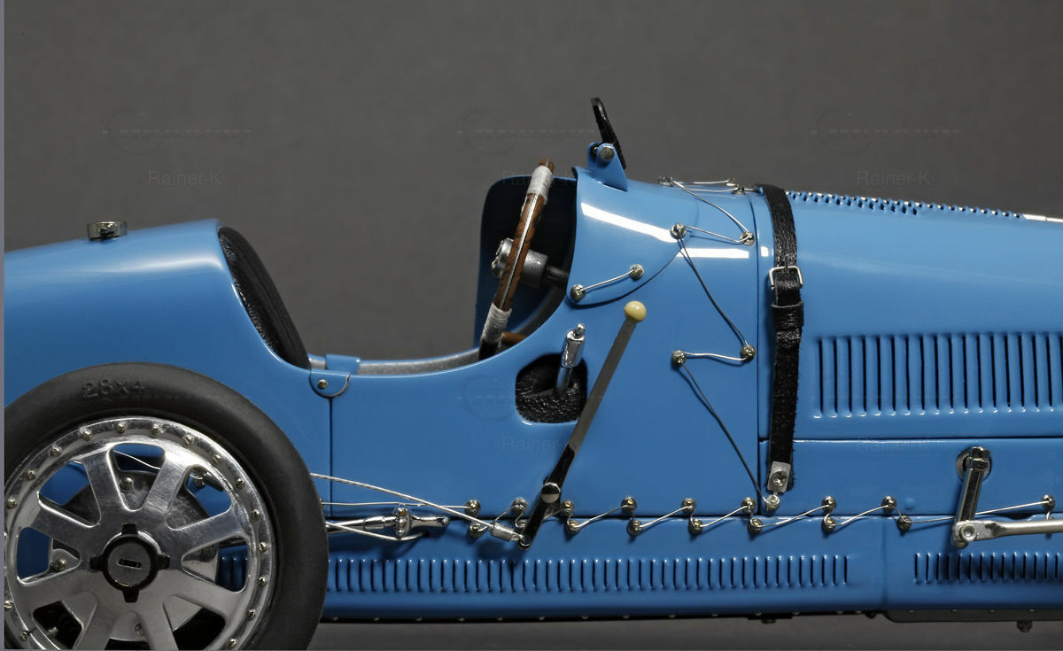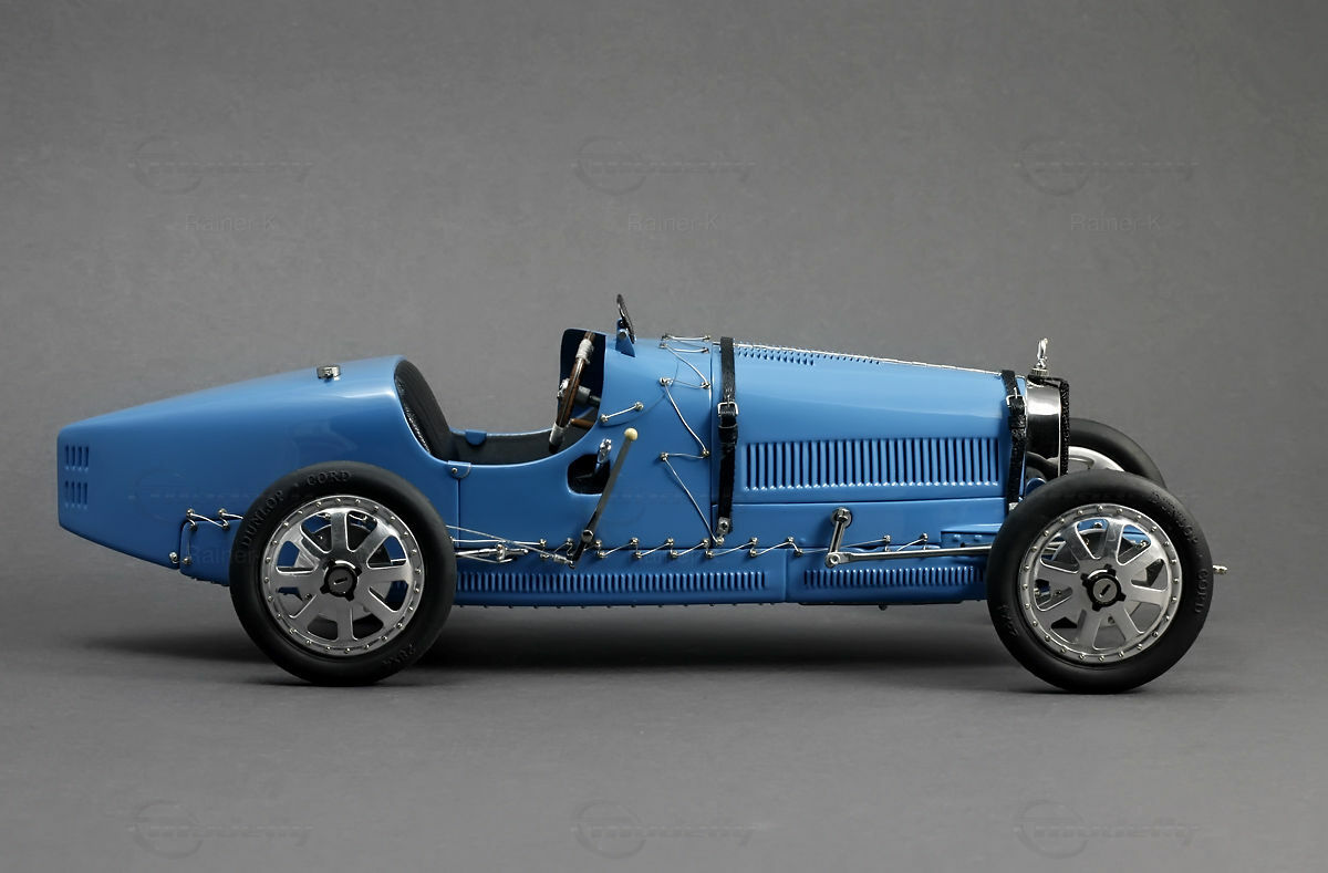 Das hier vorgestellte Modellauto ist ein detailgetreuer Nachbau des Bugatti Typ 35 im Maßstab 1:18, hergestellt von CMC. Dieses Modell wurde aus hochwertigem Diecast-Material gefertigt und überzeugt durch seine präzise Nachbildung der Originaldetails. Die Lackierung des Modells ist in einem klassischen, satten Blauton gehalten, der den historischen Rennwagen stilvoll in Szene setzt. Die Radkappen und die Speichenräder sind originalgetreu nachgebildet und verleihen dem Modell eine authentische Anmutung. Dieses mobile Modell, basierend auf dem Foto von dem Modelly-Mitglied "Rainer-K", zeigt eindrucksvoll die Form- und Farbgestaltung des Originals. Die markante Front mit dem Kühlergrill und die akkuraten Proportionen machen dieses Modell zu einem Highlight jeder Sammlersammlung.
