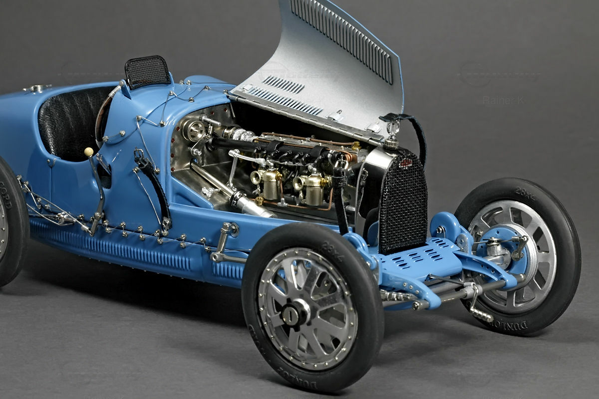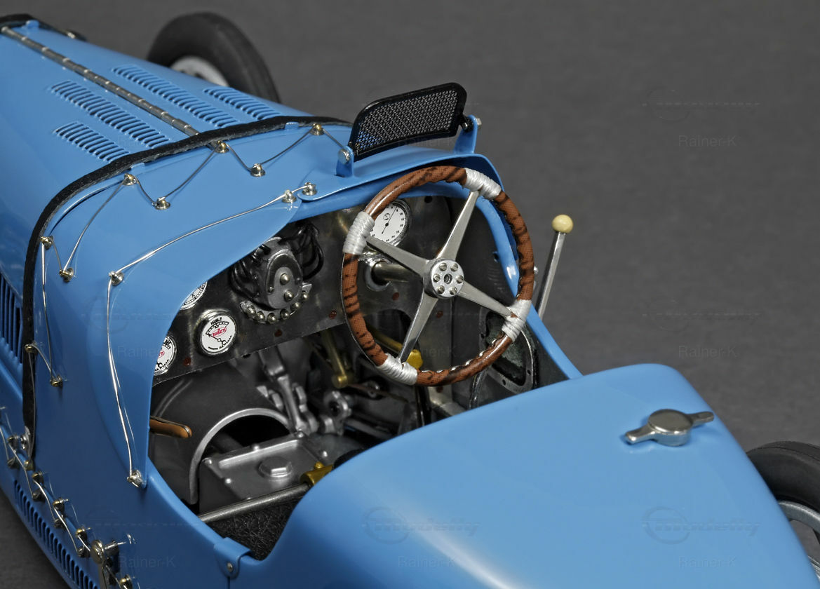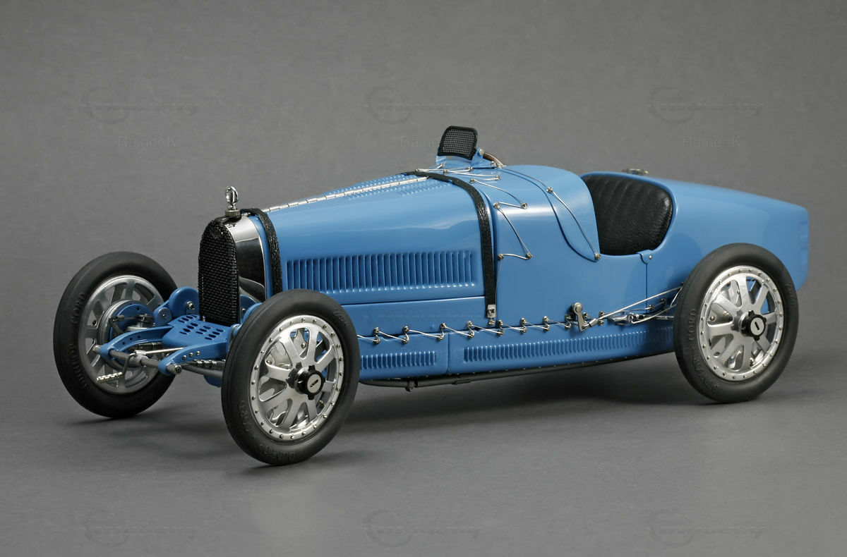 Das hier vorgestellte Modellauto ist ein detailgetreuer Nachbau des Bugatti Typ 35 im Maßstab 1:18, hergestellt von CMC. Dieses Modell wurde aus hochwertigem Diecast-Material gefertigt und überzeugt durch seine präzise Nachbildung der Originaldetails. Die Lackierung des Modells ist in einem klassischen, satten Blauton gehalten, der den historischen Rennwagen stilvoll in Szene setzt. Die Radkappen und die Speichenräder sind originalgetreu nachgebildet und verleihen dem Modell eine authentische Anmutung. Dieses mobile Modell, basierend auf dem Foto von dem Modelly-Mitglied "Rainer-K", zeigt eindrucksvoll die Form- und Farbgestaltung des Originals. Die markante Front mit dem Kühlergrill und die akkuraten Proportionen machen dieses Modell zu einem Highlight jeder Sammlersammlung.