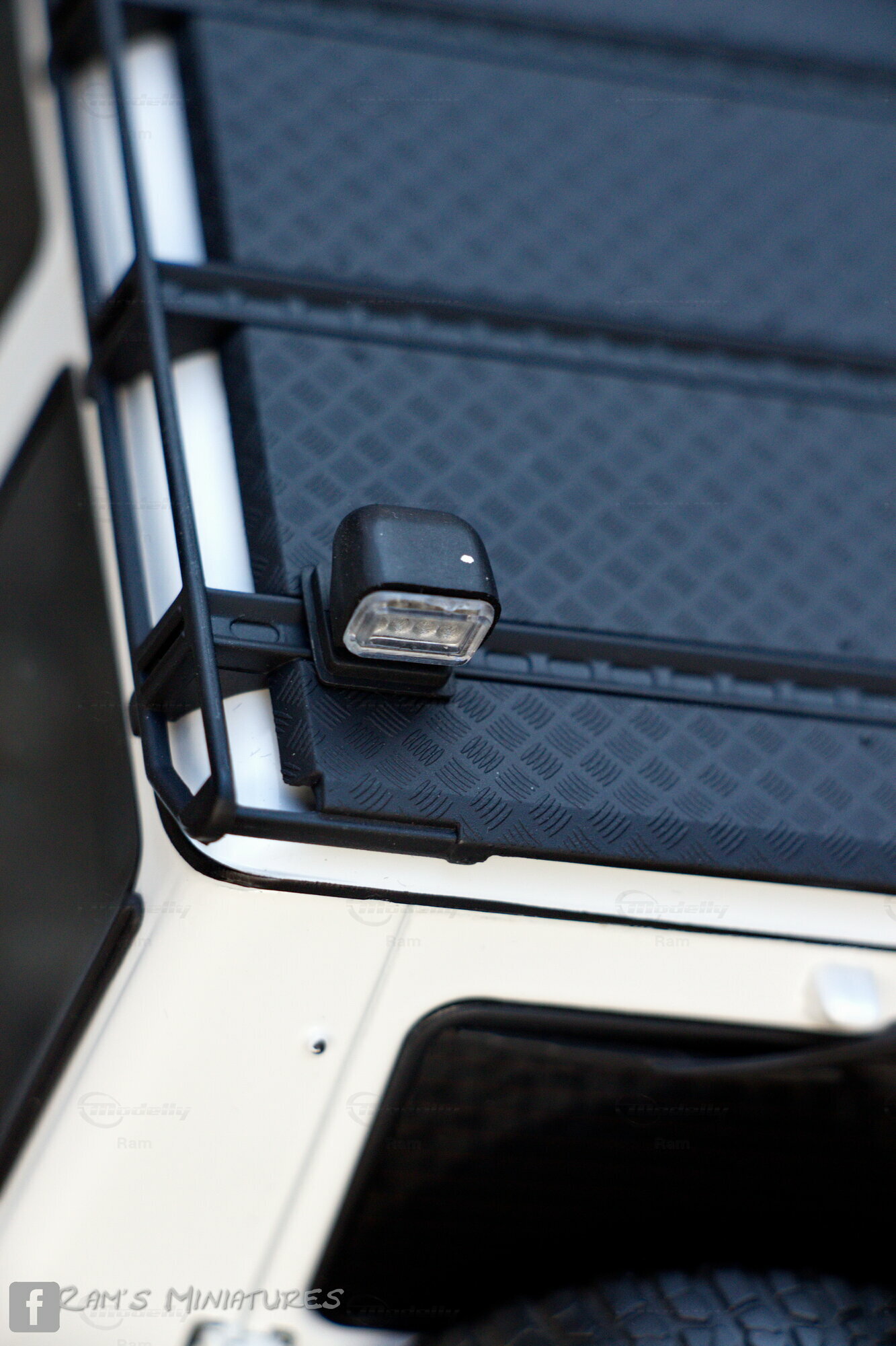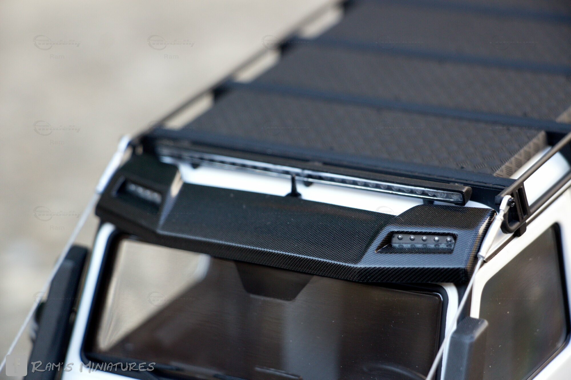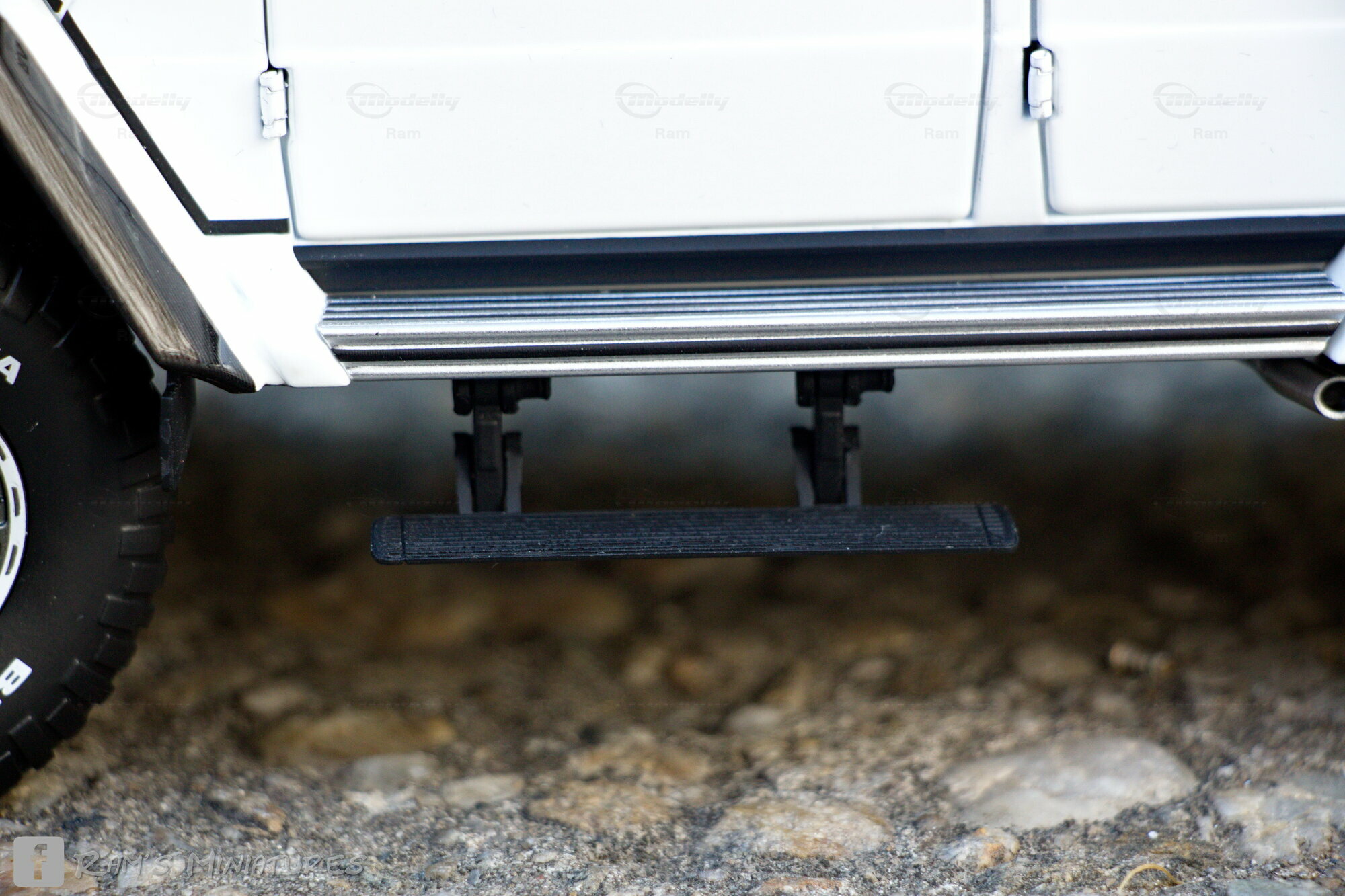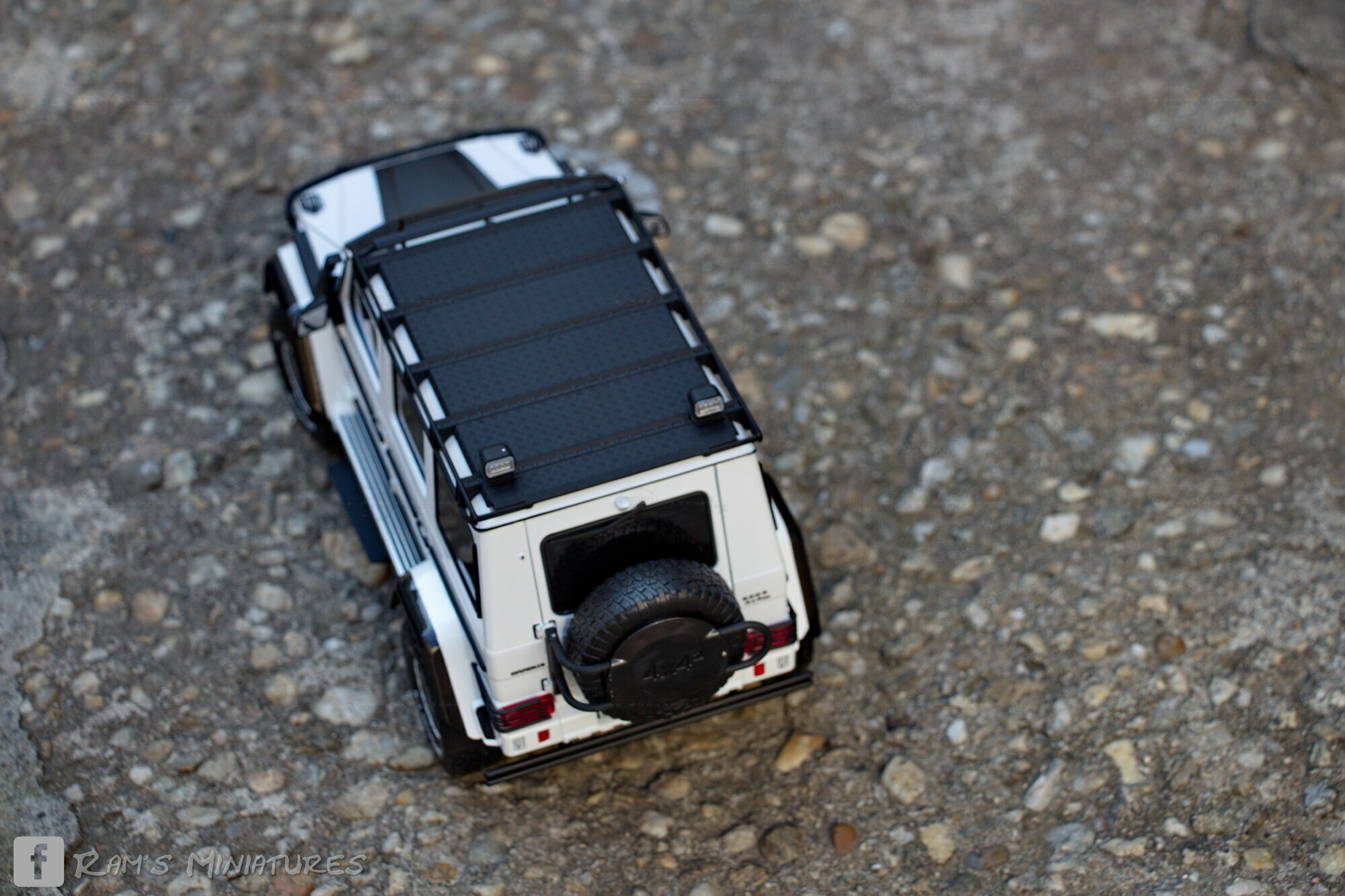 Das Modellauto, das hier in den 1:18 Maßstab von Almost Real umgesetzt wurde, ist ein exquisites Beispiel für Präzision und Detailtreue. Diese Miniatur ist aus hochwertigem Diecast-Material gefertigt, was ihr nicht nur ein realistisches Aussehen, sondern auch eine solide Haptik verleiht. Auffällig ist die perfekte Wiedergabe der mattschwarzen und weißen Farbgebung des Originals. Jedes kleinste Detail – von den Luftauslässen auf der Motorhaube bis hin zur Aussenverkabelung – wurde minutiös rekonstruiert. Auch der Frontschutzbügel inklusive Seilwinde sowie die Räder mit dem logo der Reifenmarke BF Goodrich Mud-Terrain T/A stechen hervor, die dem Modell seine robuste und abenteuerliche Erscheinung verleihen. Modellautosammler können sich an diesen Details erfreuen, die den Brabus 550 Adventure 4×4² in Miniaturform auszeichnen.