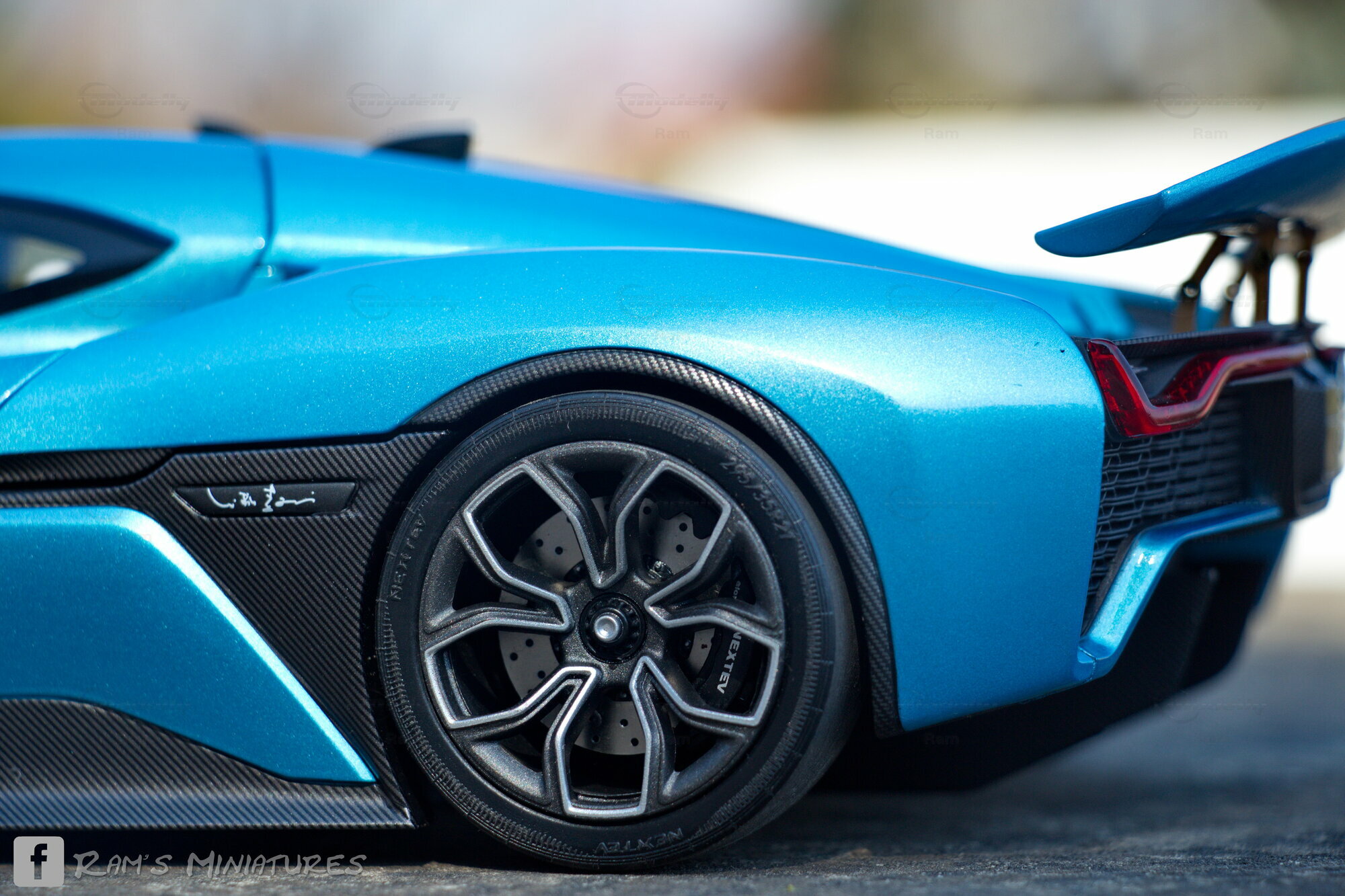 Diese detailgetreue Miniatur des NIO EP9 im Maßstab 1:18 von Almost Real ist ein Muss für jeden Modell- und Autoenthusiasten. Das Modellauto überzeugt durch eine akkurate Wiedergabe der zahlreichen Designelemente des Originals und besticht im Regal durch seine strahlend blaue Lackierung. Dieser Miniaturwagen ist Teil der Sammlung von Modelly-Mitglied "Ram" und vervollständigt jede hochqualitative Miniaturensammlung. Vom perfekten Abbild der Lufteinlässe bis hin zur markanten Linienführung – dieses Modell steht seinem großen Vorbild in kaum etwas nach. Sammler auf der ganzen Welt schätzen die akribische Verarbeitung und die Liebe zum Detail, die Almost Real in dieses Modell eingebracht hat. Wer ein Herz für Supersportwagen und Miniaturen hat, findet in dieser 1:18 Skala-Diecast-Version des NIO EP9 ein Meisterstück der Modellbaukunst.