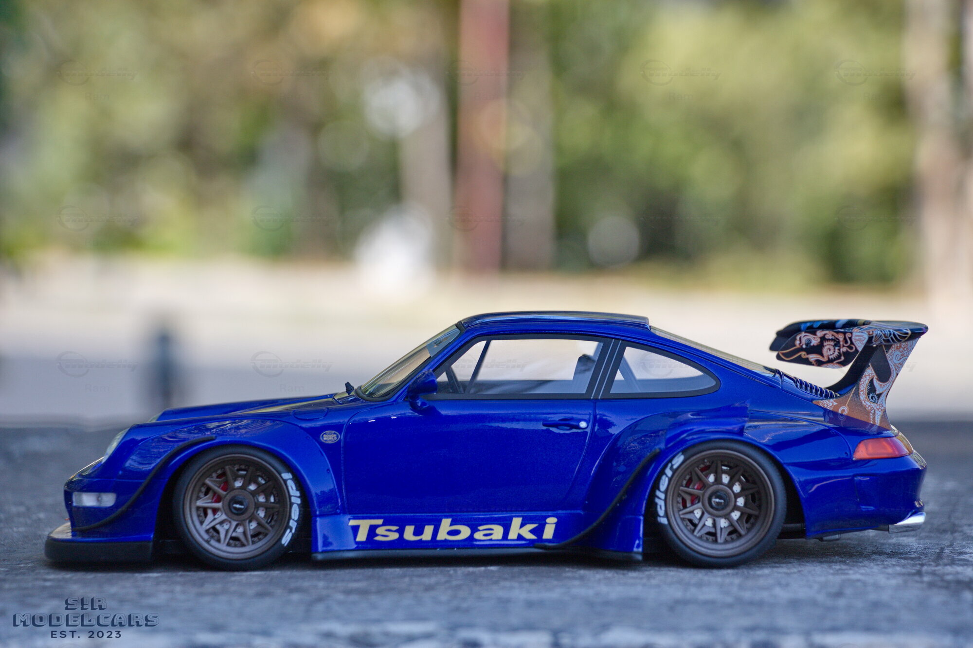 Das Modellauto, das auf den Bildern zu sehen ist, ist eine präzise Nachbildung des Porsche 911 964 RWB Tsubaki im 1:18 Maßstab, hergestellt von GT Spirit. Dieses Modell ist aus hochwertigem Diecast-Material gefertigt, was eine exakte und langlebige Nachbildung des Originals ermöglicht. Die dargestellte Minatur ist eine auf 1400 Stück weltweit limitierte Edition, was sie zu einem begehrten Sammlerstück macht. Der GT Spirit legt großen Wert auf Detailgenauigkeit, was sich in den feinen Unterschieden und den präzise reproduzierten Karosseriedetails zeigt. Für Sammler wie Ram, ein Mitglied der Modelly-Community, sind solche Modelle wertvolle Ergänzungen ihrer Sammlung.
