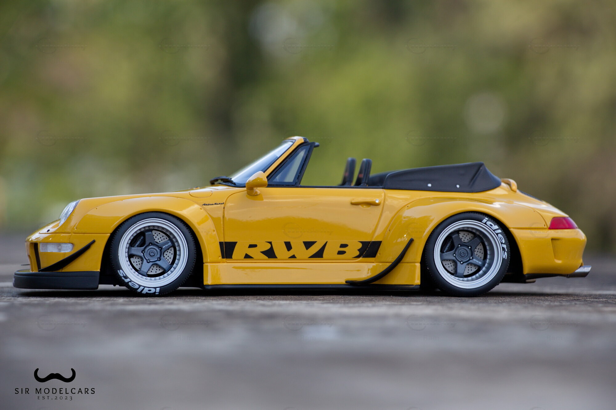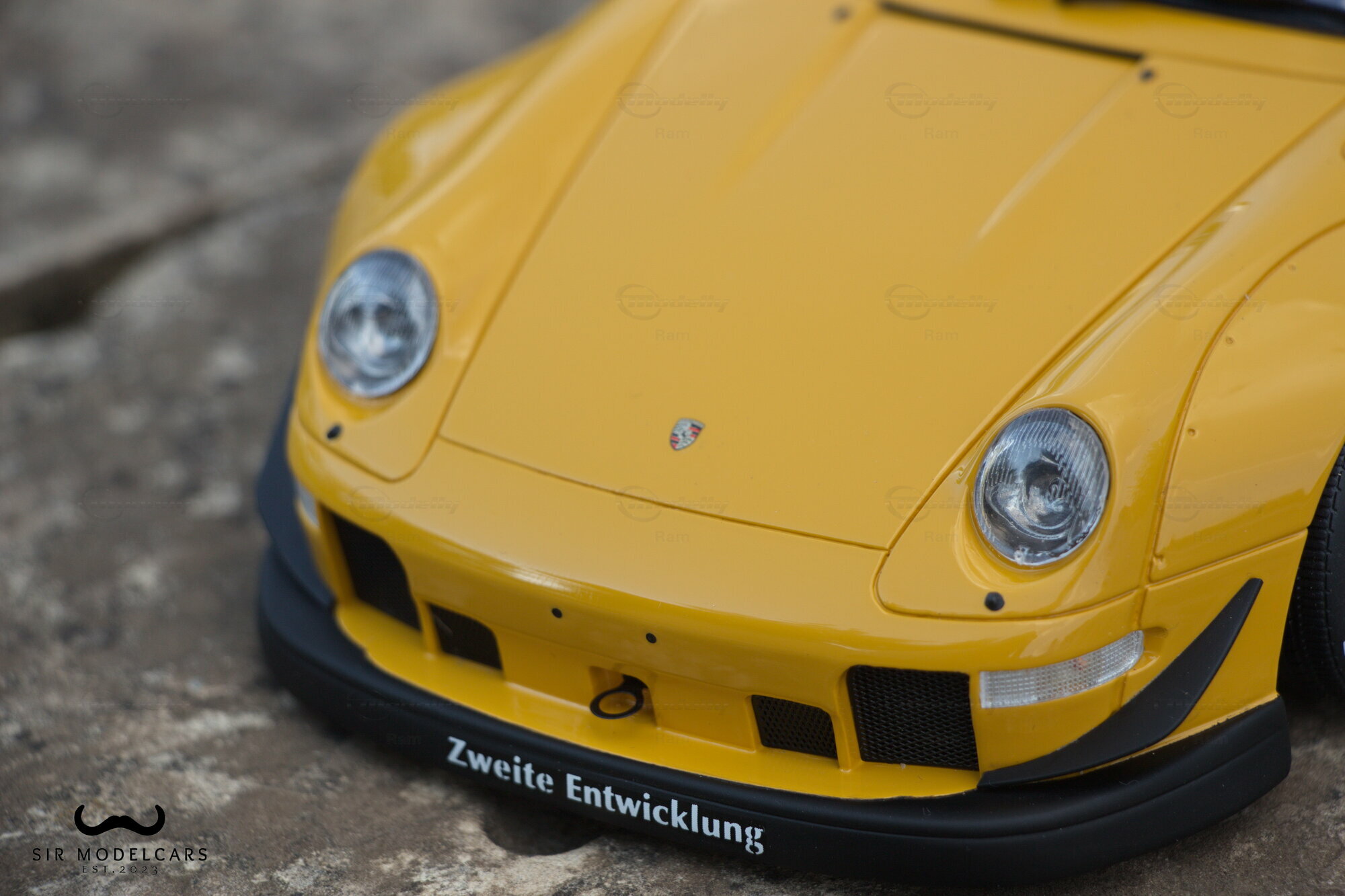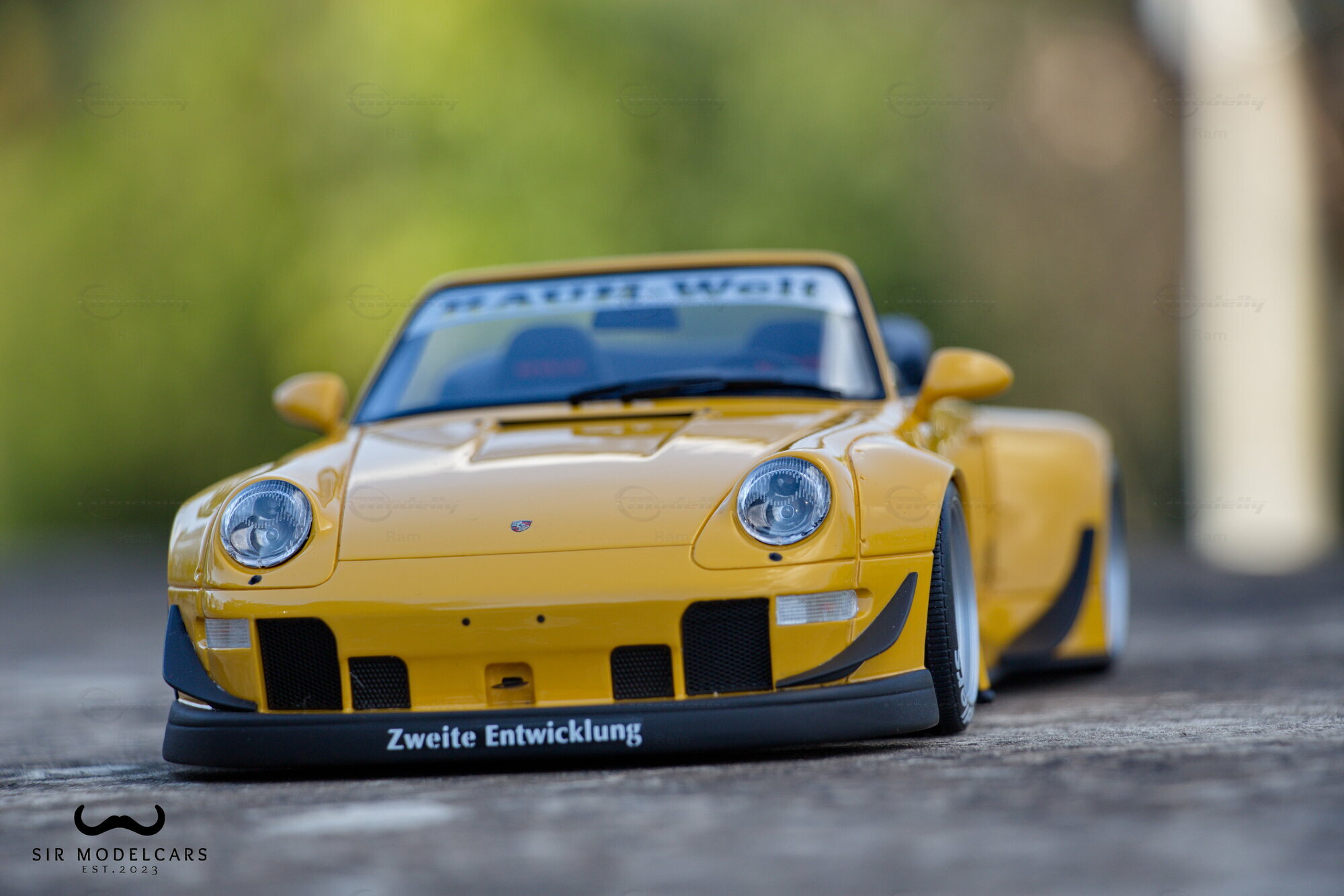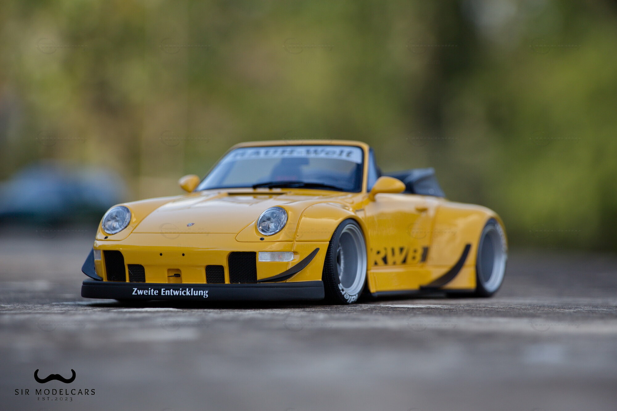 Das abgebildete Modell ist ein 1:18 Maßstab Replika, hergestellt von GT Spirit und es handelt sich dabei um eine präzise Nachbildung des Porsche 911 (993) RWB Nohra. Besondere Aufmerksamkeit verdient die Tatsache, dass dieses Modell aus Resin gefertigt ist, was die feine Detaillierung des Miniaturautos ermöglicht. Bei dem Modell handelt es sich um ein limitiertes Sammlerstück, das nur in einer begrenzten Auflage von 1500 Stück weltweit erhältlich ist. Dieses präzise gefertigte Modell wurde von dem Modelly-Mitglied "Ram" gesammelt und zeigt einige bemerkenswerte Details, die selbst erfahrene Sammler beeindrucken könnten.