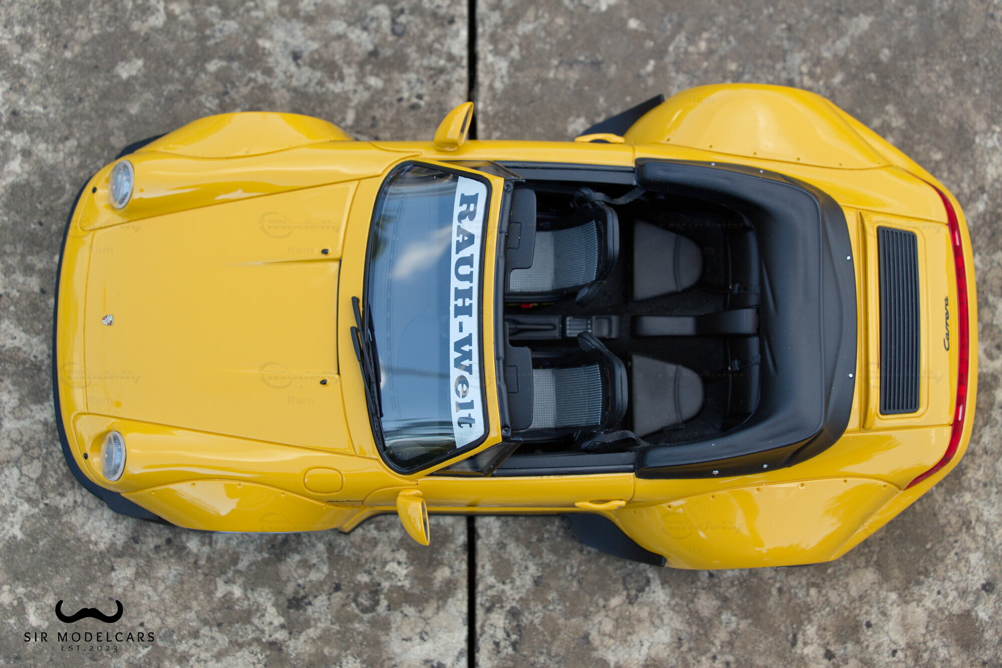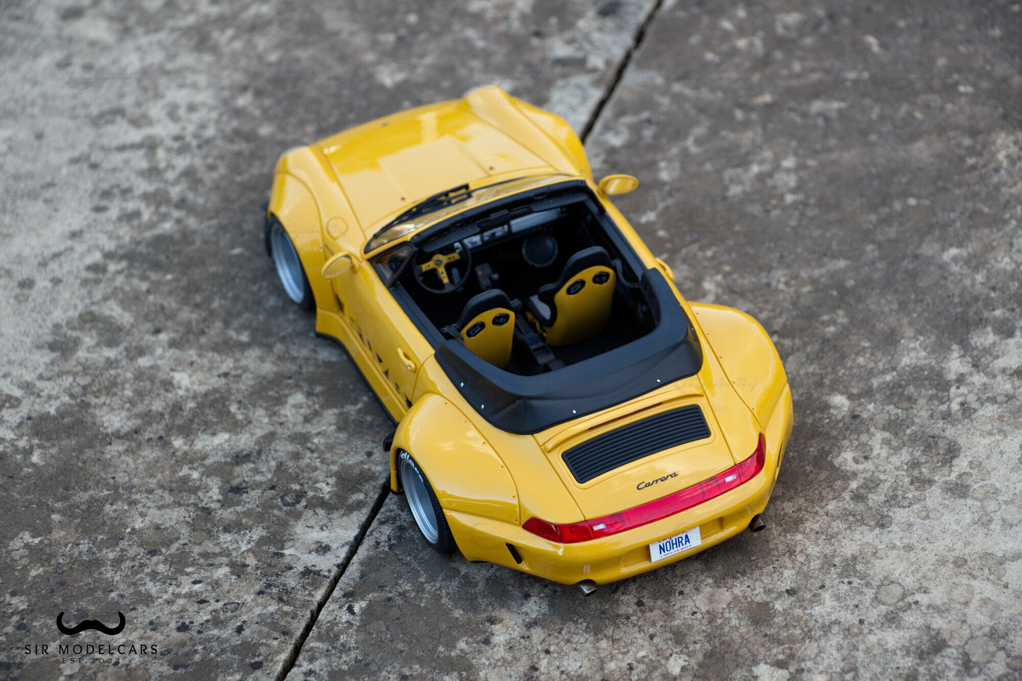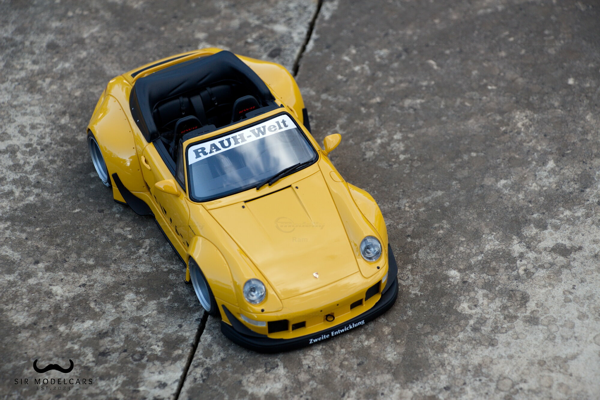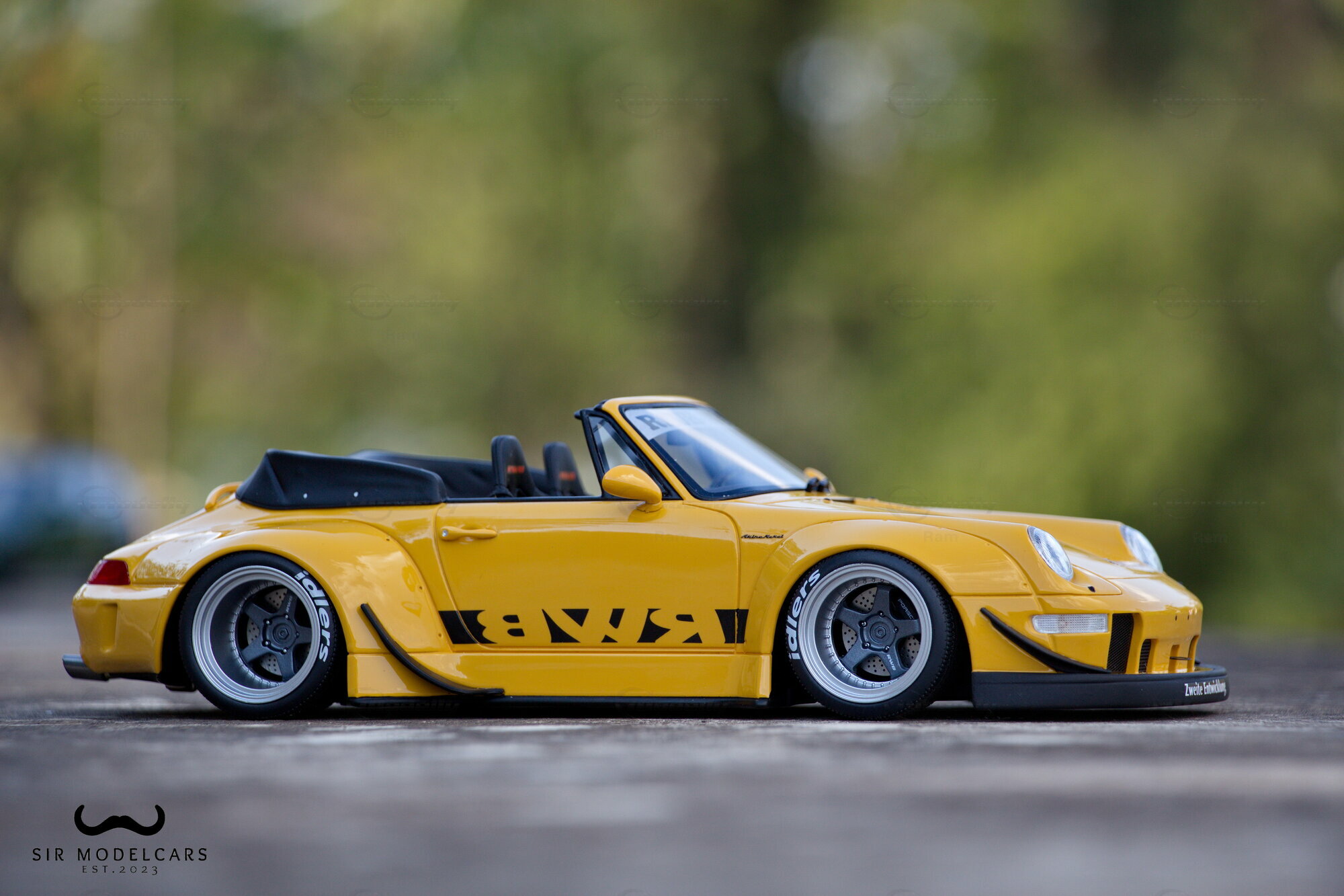 Das abgebildete Modell ist ein 1:18 Maßstab Replika, hergestellt von GT Spirit und es handelt sich dabei um eine präzise Nachbildung des Porsche 911 (993) RWB Nohra. Besondere Aufmerksamkeit verdient die Tatsache, dass dieses Modell aus Resin gefertigt ist, was die feine Detaillierung des Miniaturautos ermöglicht. Bei dem Modell handelt es sich um ein limitiertes Sammlerstück, das nur in einer begrenzten Auflage von 1500 Stück weltweit erhältlich ist. Dieses präzise gefertigte Modell wurde von dem Modelly-Mitglied "Ram" gesammelt und zeigt einige bemerkenswerte Details, die selbst erfahrene Sammler beeindrucken könnten.
