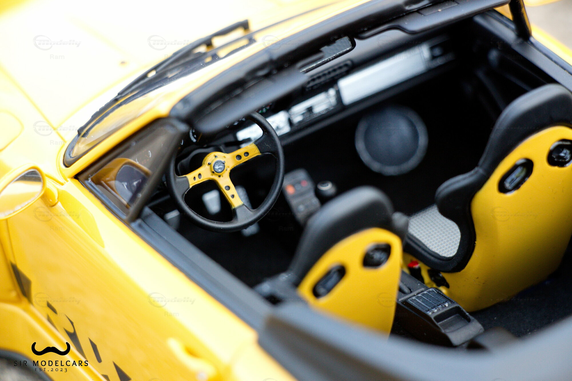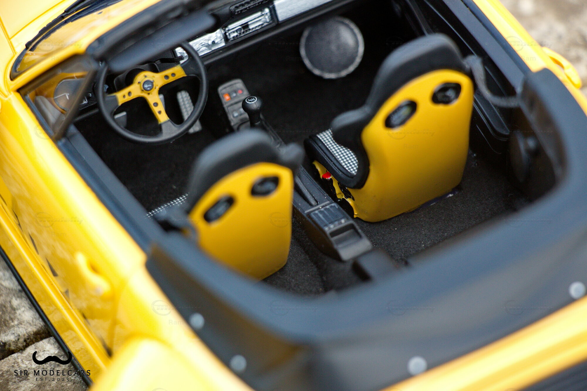 Dieser 1:18 Maßstab Modellauto von GT Spirit beeindruckt durch seine detaillierte Lackierung in einem auffälligen Gelbton, der perfekt in jedem Sammlerregal zur Geltung kommt. Der Innenraum ist präzise nachgebildet und zeigt feinste Details des Originals, einschließlich der Sitze und Armaturen. Die Modellfarben, Original Badges und klaren Formenelemente machen diese Miniatur zu einem Highlight jeder Sammlung. Die Scheinwerfer und Rückleuchten vermitteln realistische Proportionen und geben dem Modellauto Authentizität. Limitiert auf 1500 Stück weltweit, bleibt dieses Sammlermodell eine wertvolle Ergänzung für alle Liebhaber hochwertiger Modellautos.