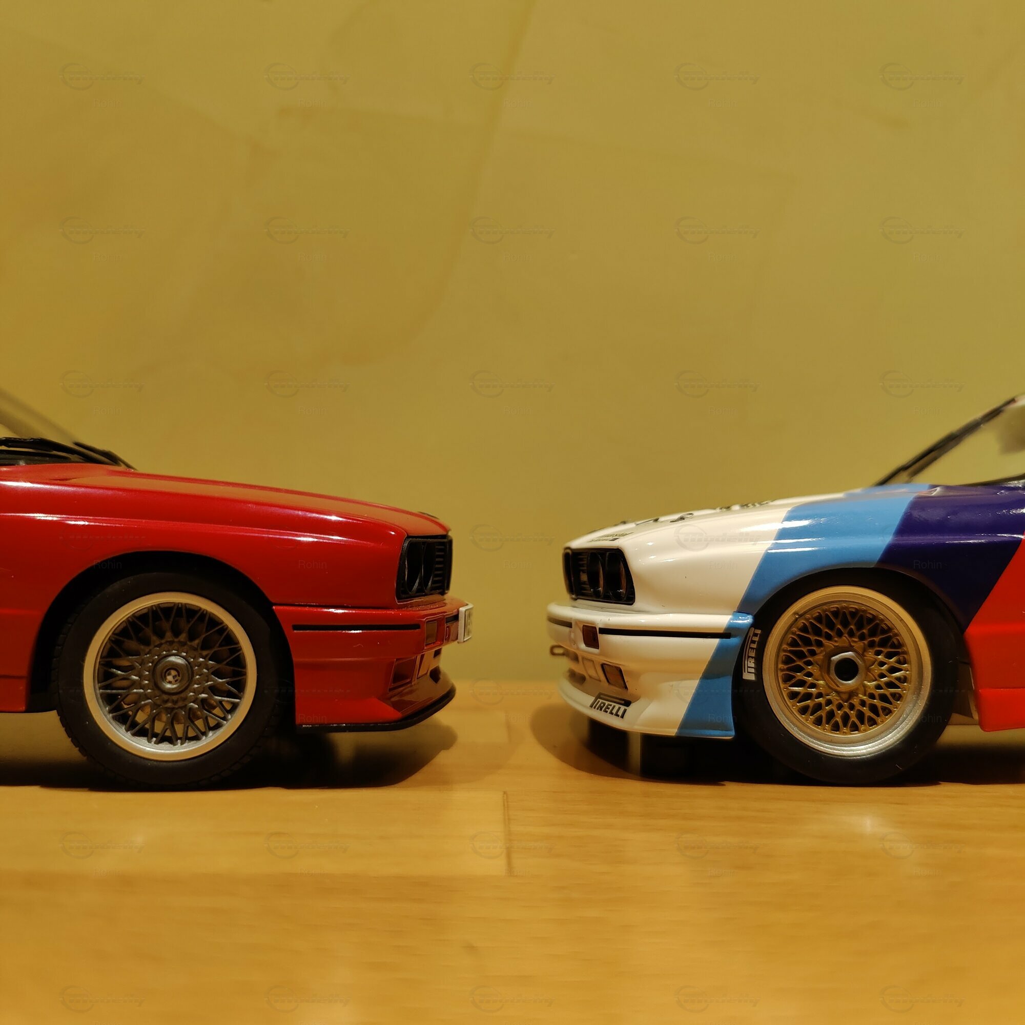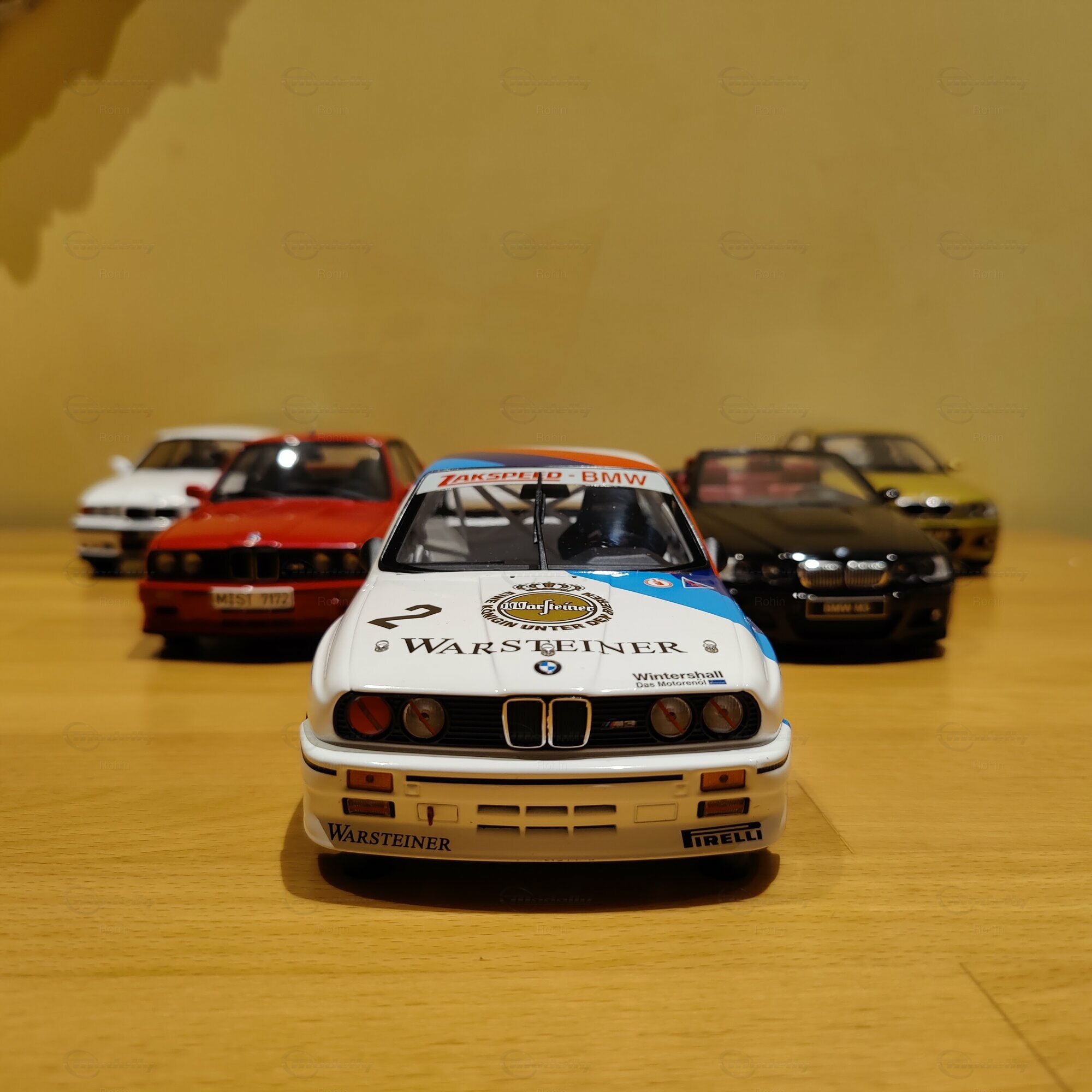 Die Miniatur des BMW E30 M3 im Maßstab 1:18 von Minichamps, aus der Sammlung des Modelly-Mitglieds Rohin, ist ein hervorragend detailliertes Modell, das die Fans und Sammler begeistert. Hergestellt aus hochwertigem Resin-Material, zeigt das Modell exakt die charakteristischen Merkmale des Originals. Die Lackierung in den Farben Weiß und M-Power Rennstreifen (Blau, Rot und Hellblau) sowie die markanten Sponsorenlogos von Warsteiner, Wintershall und anderen sind präzise nachgebildet. Alle Details vom Spoiler bis zu den Rädern sind sorgfältig herausgearbeitet und fügen sich zu einem authentischen Gesamtbild zusammen.
