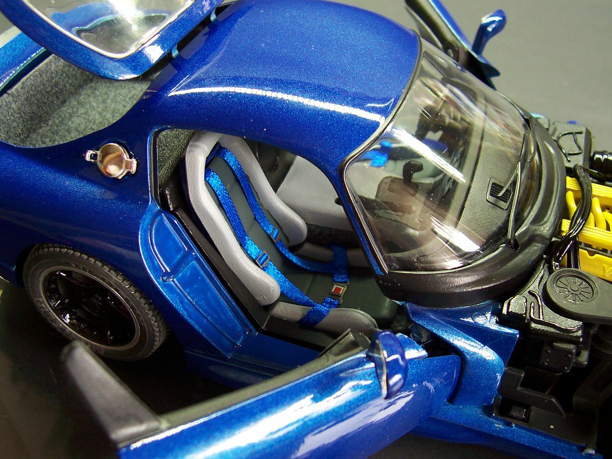Das in 1:18 Maßstab gefertigte Modellauto von Bburago ist ein Detailgetreuer Nachbau der Dodge Viper GTS. Besonders hervorzuheben ist, dass das Modell-Schauobjekt aus Diecast gefertigt ist, ein Material das für seine Stabilität und Widerstandsfähigkeit bekannt ist. Die detaillierte Lackierung in Metallic-Blau und die filigranen Details wie die Lufteinlässe und die Frontscheinwerfer spiegeln das aggressive Design des Originals wider. Zu beachten ist, dass dieses Modell aus der Sammlung von "Schraubaer61" stammt und modifiziert wurde. Es stellt nicht das serienmäßige Originalprodukt von Bburago dar. Das Fahrzeug in den Fotos hat eine individuelle Note mit getunten Elementen, die dem Sammlerstück eine einzigartige Persönlichkeit verleihen.