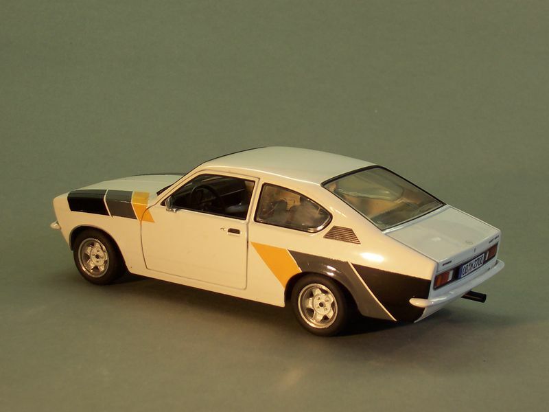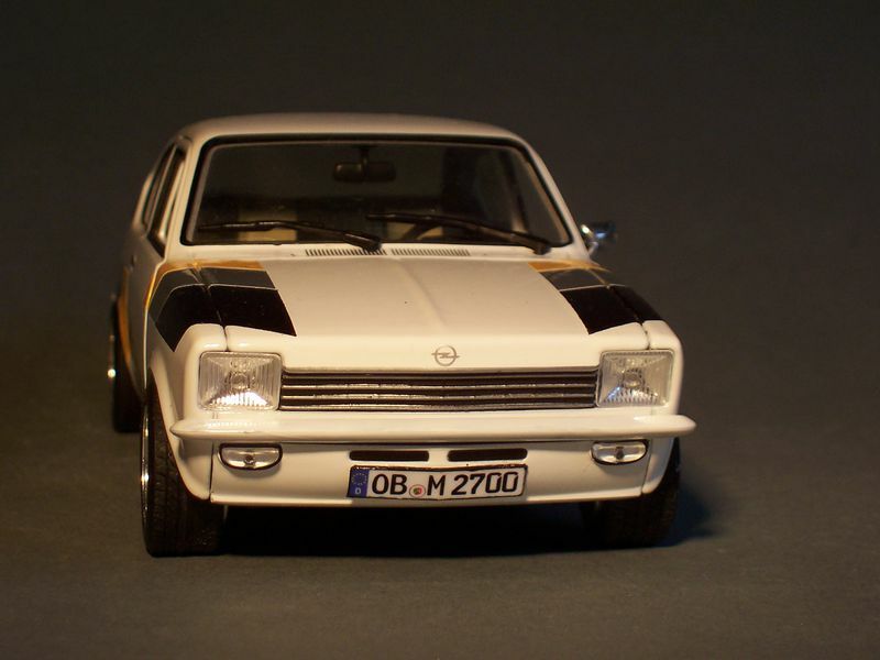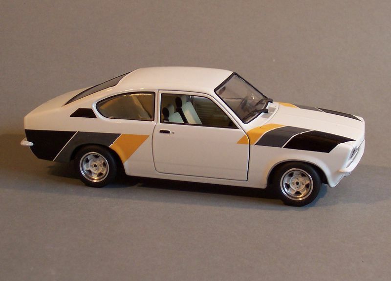 Der Kadett bekam ein Motorsportdesign und ATS 13" Felgen von Scaleproduction. Die Stoßstangen wurden entchromt und weiss lackiert, das Fahrzeug tiefergelegt.