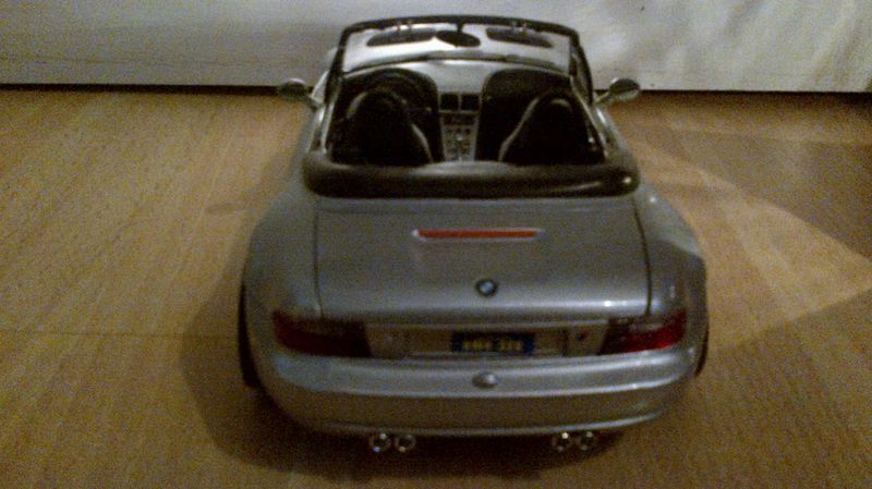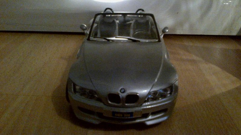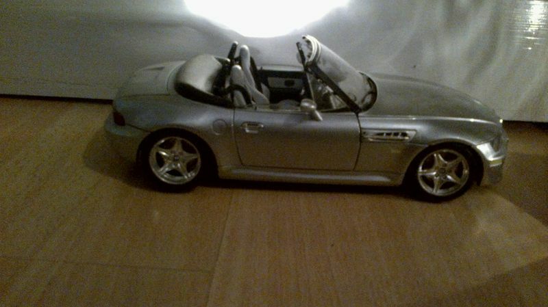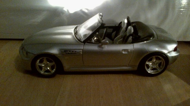 Das hier gezeigte Modellauto im Maßstab 1:18 wurde vom renommierten Hersteller Bburago gefertigt und spiegelt das Design des BMW Z3 detailgetreu wider. Es gehört zur Sammlung des passionierten Sammlers "Shelby1967" auf Modelly. Auffällig ist der silberfarbene Lack des Modells, der den originellen Metallic-Look des Roadsters nachahmt. Auf der Miniatur sind charakteristische Elemente wie die Kiemen an den Seiten, die Doppelauspuffanlage und die typischen 5-Speichen-Felgen zu erkennen. Der Innenraum des Modells zeigt sichtbare Details des Cockpits, Armaturen und individuelle Sitze und gibt Sammlern einen Eindruck davon, wie der Fahrgastraum des Originals gestaltet war. Der Hersteller Bburago zeigt hier erneut sein Können in der Fertigung authentischer Replikate.