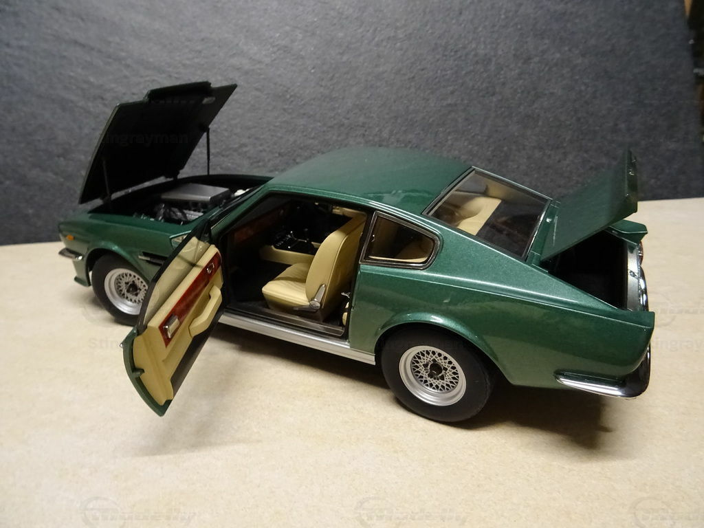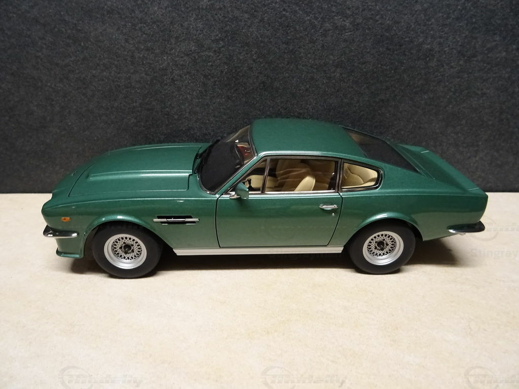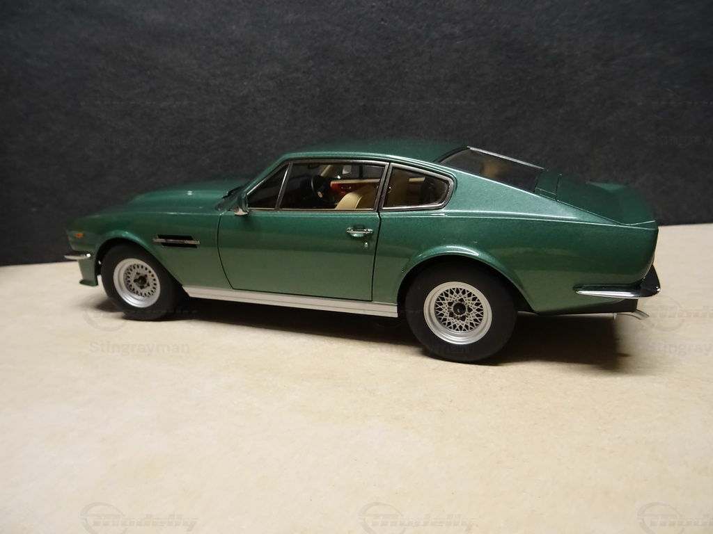 Dieses Modell des Aston Martin V8 Vantage im Maßstab 1:18 wird von AUTOart Millennium hergestellt und gehört zur Sammlung des Modelly-Mitglieds "Stingrayman". Das Modell besticht durch eine akkurate Reproduktion des Originals aus Diecast-Material und bietet viele Details, die für Sammler faszinierend sind. Es handelt sich um ein Modellauto im Maßstab 1:18, das eine bemerkenswerte Treue zum Original aufweist. Auffällig sind die präzise gestalteten Scheinwerfer und der charakteristische Frontgrill, die das markante Design des Aston Martin V8 Vantage aus den 1970er Jahren widerspiegeln. Die Lackierung in einem klassischen, metallischen Grün verleiht dem Modell eine elegante Erscheinung. Besonders hervorzuheben sind die Felgen, die dem Original stilgetreu nachempfunden wurden.