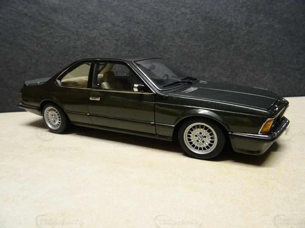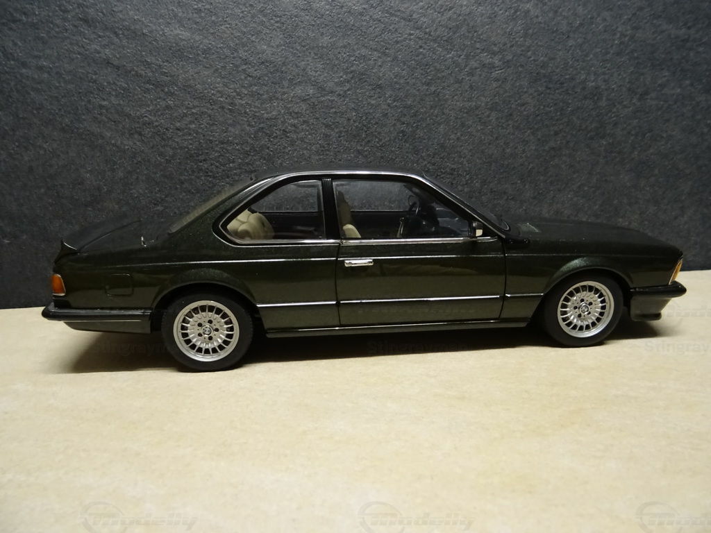 Für Sammler ist das Modellauto des BMW 635 CSi im Maßstab 1:18 von AUTOart Millennium ein besonders wertvolles Exemplar, das durch seine hohe Detailtreue besticht. Das Modell ist aus Diecast-Material gefertigt, was für seine Langlebigkeit und Stabilität sorgt. In der Sammlung von Modelly-Mitglied "Stingrayman" nimmt dieses Miniaturfahrzeug einen besonderen Platz ein. Auffällig sind die akkurate Nachbildung der Karosseriestruktur und die filigranen Details wie die originalgetreuen Scheinwerfer, die markante Nierenform des Kühlergrills und die exakten Nachbildungen der Außenspiegel. Die Lackierung des Modells ist ein tiefes Metallic-Dunkelgrün, das den eleganten Charakter des Originalfahrzeugs widerspiegelt. Besondere Akzente setzen die silbernen Rahmungen an Fenstern und Karosserie. Die Räder des Modells sind mit detailgetreuen Felgen versehen, welche auf den Fotos gut zu erkennen sind und die Eleganz des Originals nochmals unterstreichen.