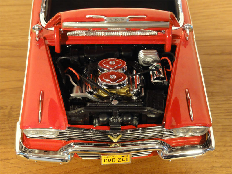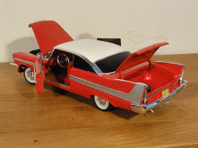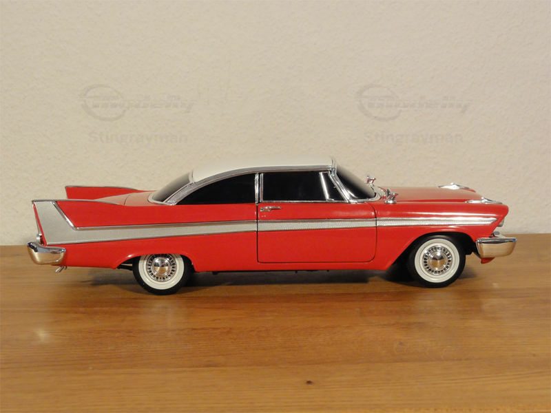 Das Miniaturmodell des Plymouth Fury in 1:18 Maßstab, hergestellt von AutoWorld, ist eine präzise und detaillierte Nachbildung des Originals. Dieses Modell in der Sammlung von Modelly Mitglied Stingrayman zeichnet sich durch seine Verwendung von Diecast-Material aus, was für robuste und langlebige Miniaturen bekannt ist. Die Lackierung in rot und silber ist genau wie beim Original, mit detaillierten chromfarbenen Zierleisten und weißen Wandreifen, die den Retro-Look perfekt einfangen. Die Scheinwerfer und Rückleuchten sind ebenfalls sehr detailliert gestaltet, wodurch das Modell eine erhöhte Authentizität erhält. Auf der Motorhaube ist das typische 'V'-Emblem zu finden, das ebenfalls korrekt nachgebildet wurde. Kein Detail wurde übersehen, selbst der Innenraum ist akkurat gestaltet und wiedergibt die luxuriöse Ausstattung des Originals.
